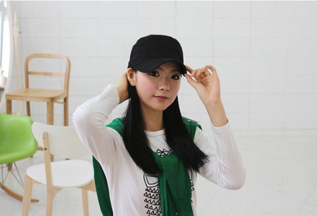 Nozhi Meng Simple Baseball Cap Flat Top Fashionable Men and Women Casual Solid Color Peaked Cap Wearable in All Seasons NM332 Bare Black One Size Adjustable