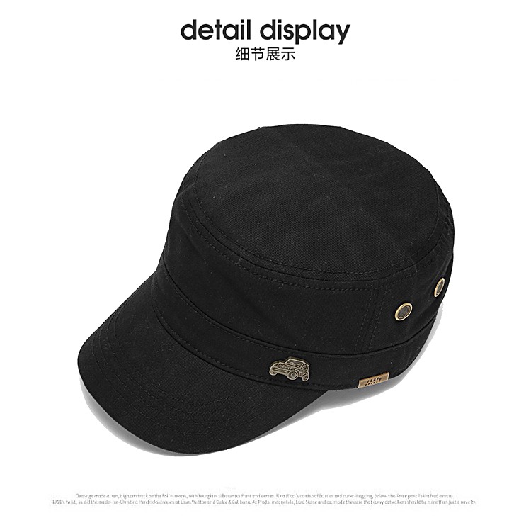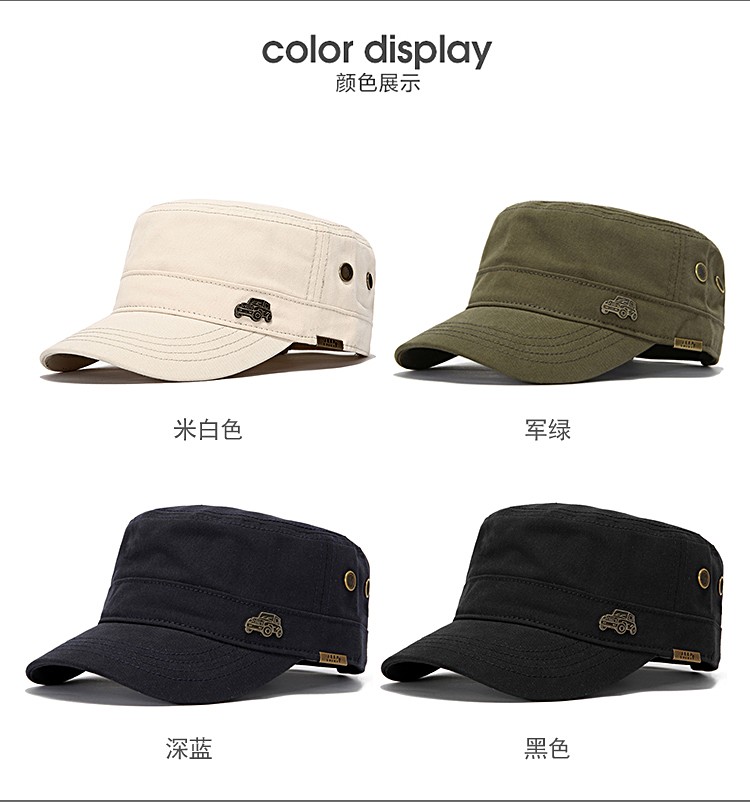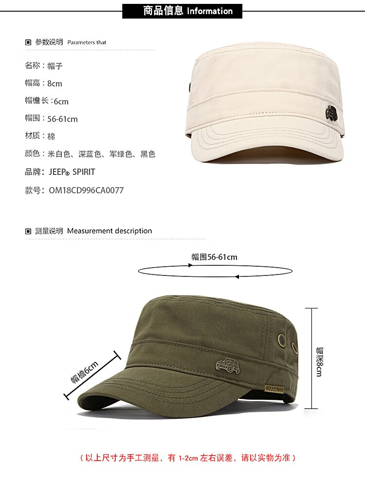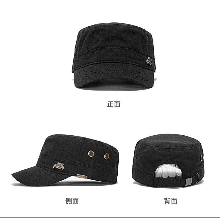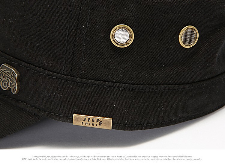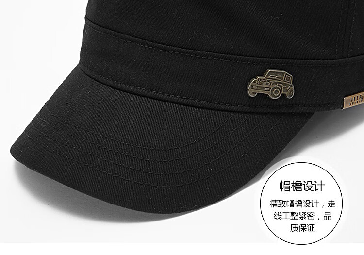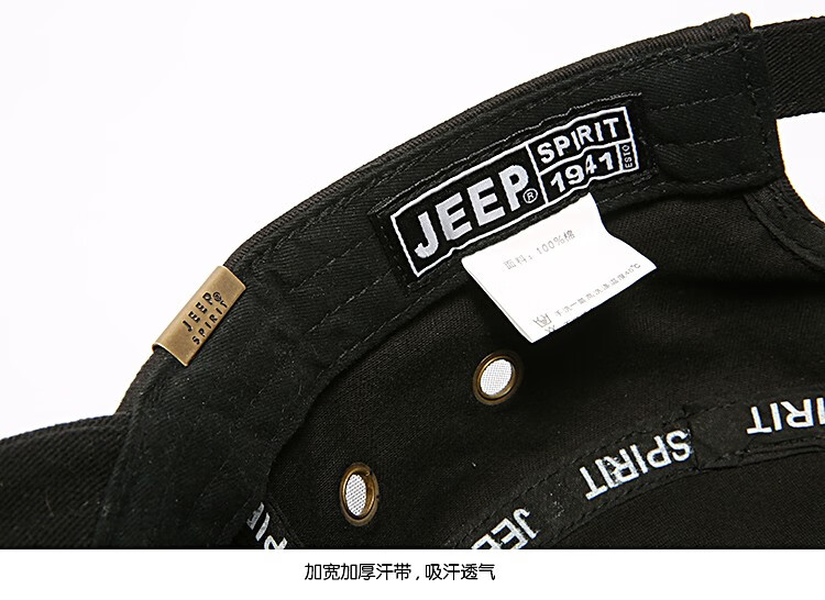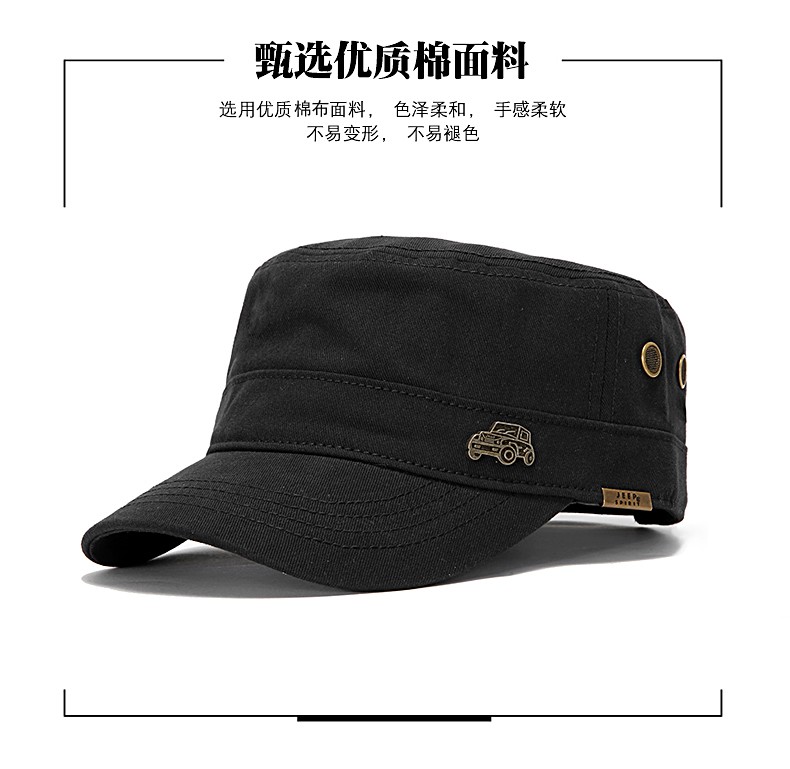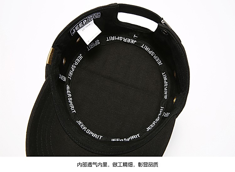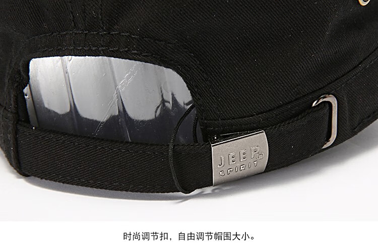 JEEP pure cotton flat-top hat for men, outdoor sports baseball cap, four-season casual peaked cap for women, fashionable and versatile sun hat, one size fits all, adjustable, black, one size fits all, 56-61cm