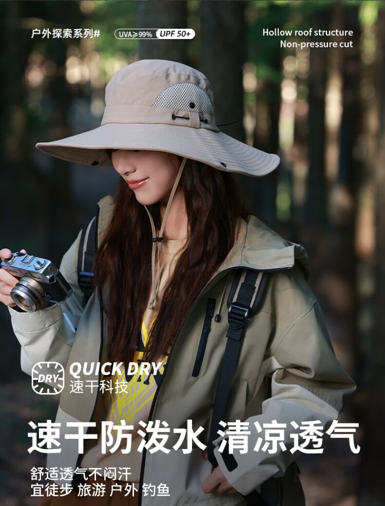 Memaru Western Cowboy Hat Fisherman Hat Mountaineering Desert Sunscreen Hat Women's Outdoor Men's Big-Ear Sunshade Mountaineering Hat Hiking Travel