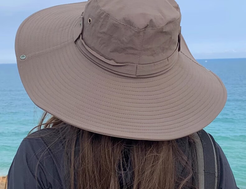 Memaru mountaineering sun hat for men and women, western denim sun hat, fisherman hat, anti-UV sun hat, outdoor fishing hat, khaki 12cm large brim, waterproof and quick-drying, hat circumference (54cm-62cm)