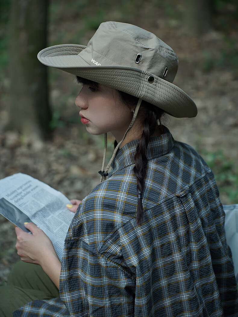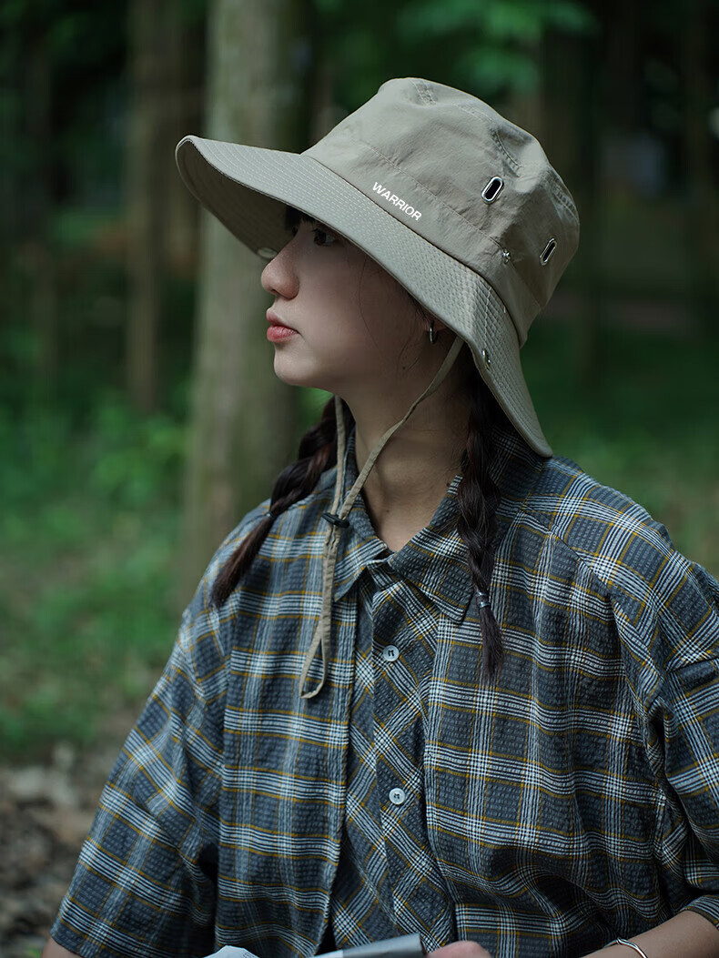 Warrior large brim sun hat summer women's outdoor mountaineering sun protection fisherman hat men's anti-UV fishing camping western cowboy hat khaki