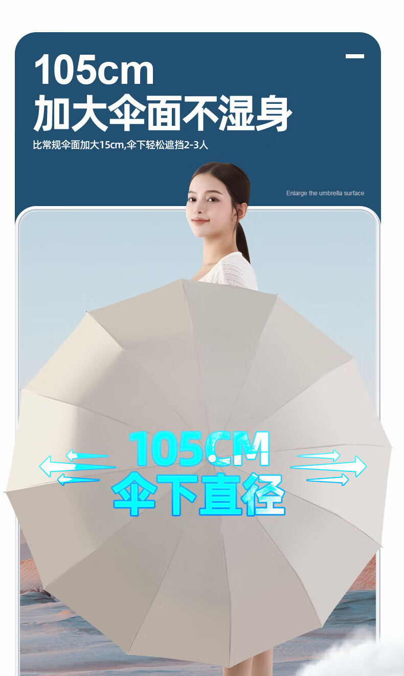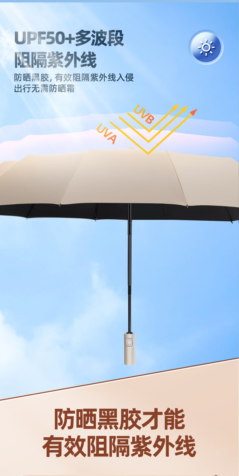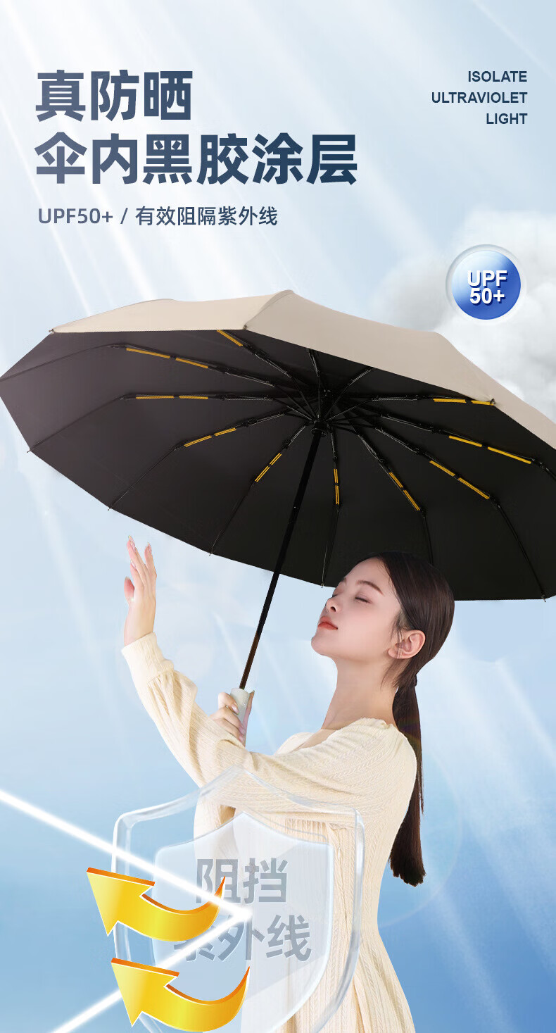 Fully automatic double large umbrella folding rain or shine umbrella black sun umbrella sun protection UV umbrella 8-bone manual model black