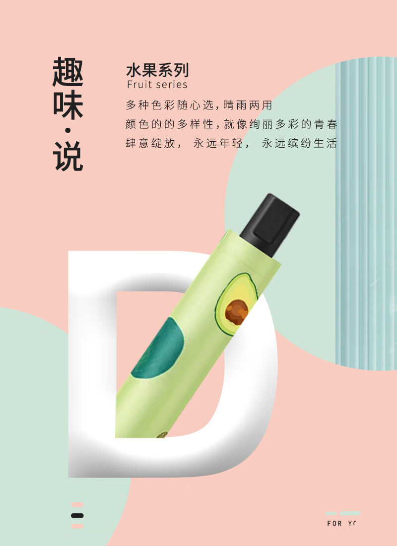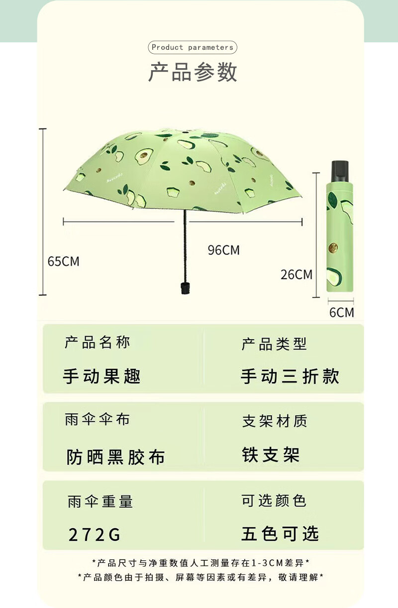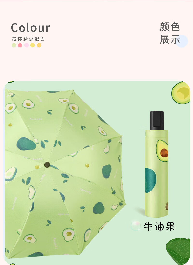 Fruit Sweetheart Umbrella Girly Heart Three-folding Sun Umbrella for Rain or Rain for Men and Women Sunscreen and Rainproof Fashionable Sunshade Manual Sunscreen 8-Bone Avocado