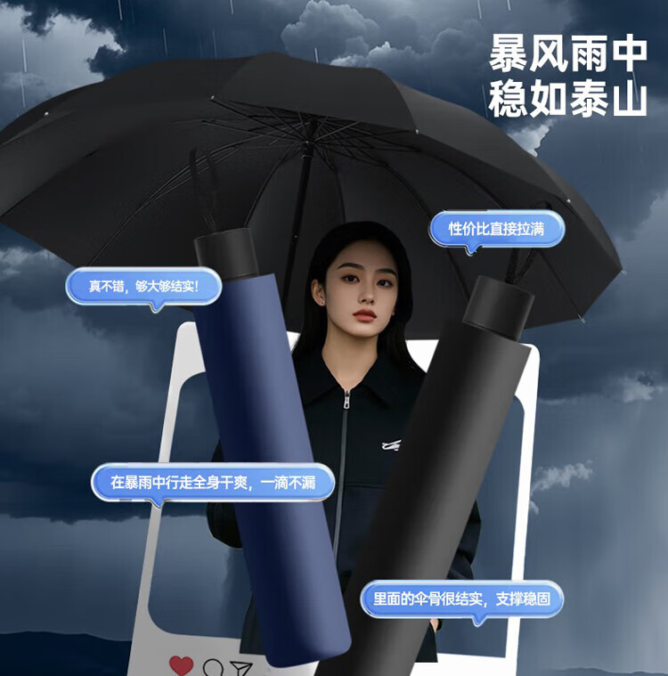 Umbrella large reinforced rainstorm strong wind-resistant business umbrella student men's and women's sun umbrella sun protection umbrella manual 8-bone black glue about 100cm beige