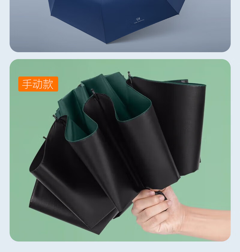 Hot-selling umbrella, manual UV folding vinyl, sun protection and external ray shading, sunny and rainy umbrella, automatic 8-bone black UV