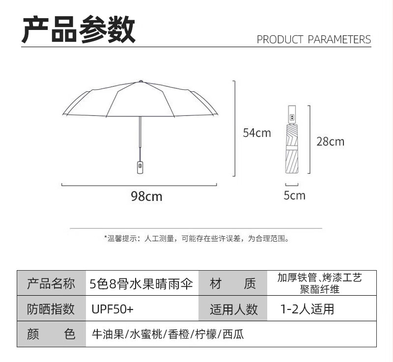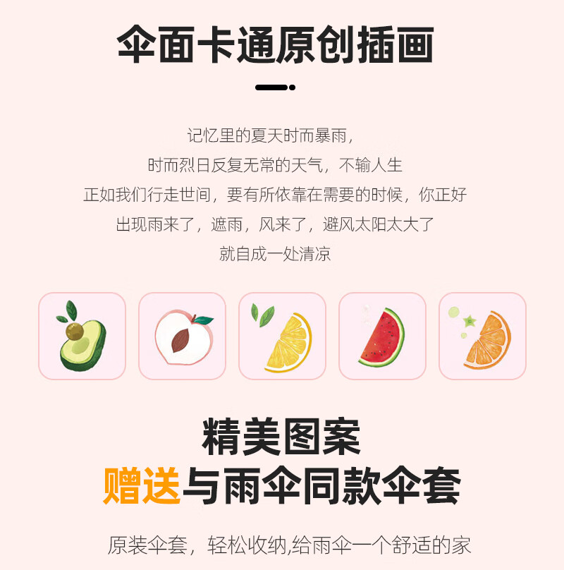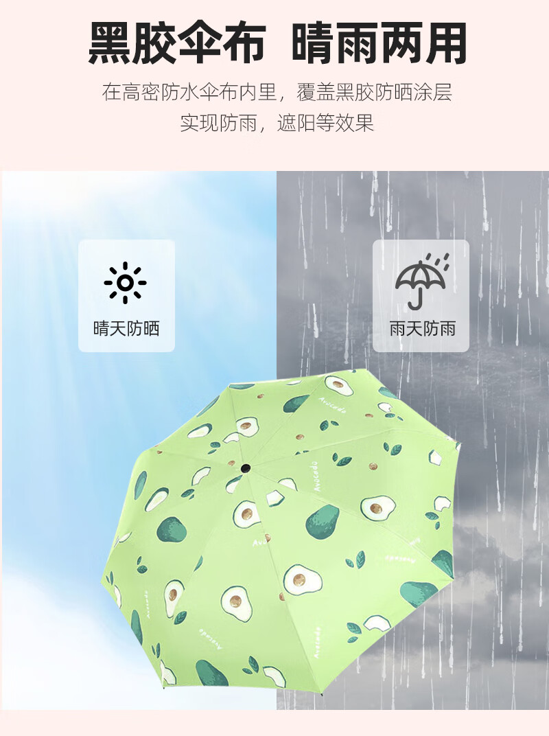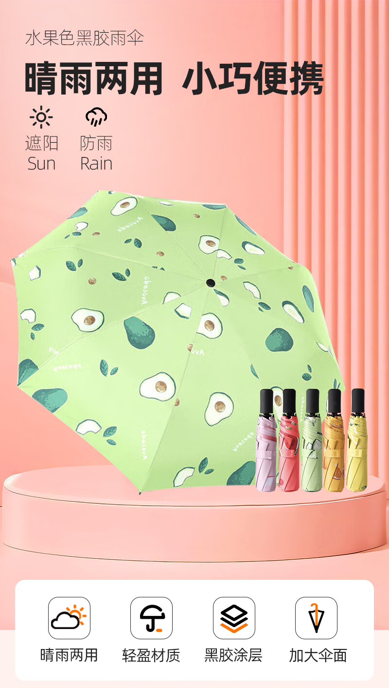 Popular Umbrella Fruit Series 8-Bone Folding Vinyl Sunscreen UV Shade Rain or Shine Umbrella Avocado Manual Manual Opening and Closing