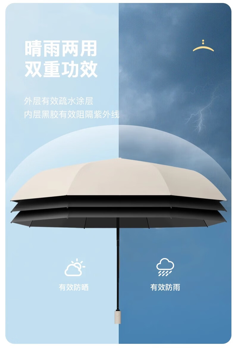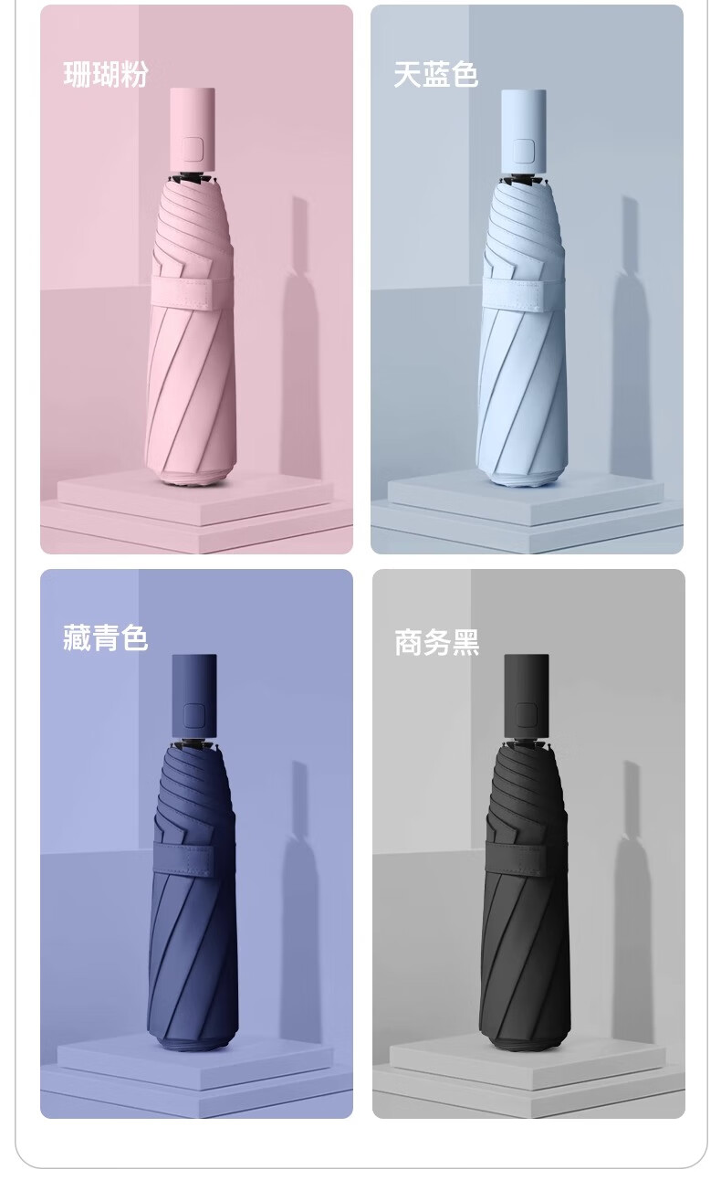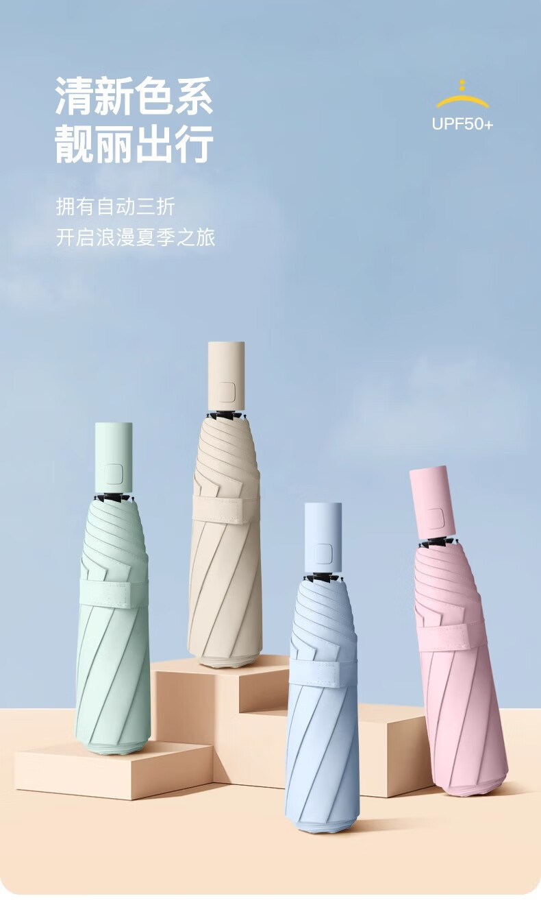 Umbrella Folding Fully Automatic Umbrella Solid Color Simple Business Umbrella Vinyl Sunscreen Umbrella UV Protection Reinforced Strong and Durable 16-Bone Lightweight Fully Automatic Wind-Resistant Reinforcement Vinyl Sunscreen Umbrella Sky Blue