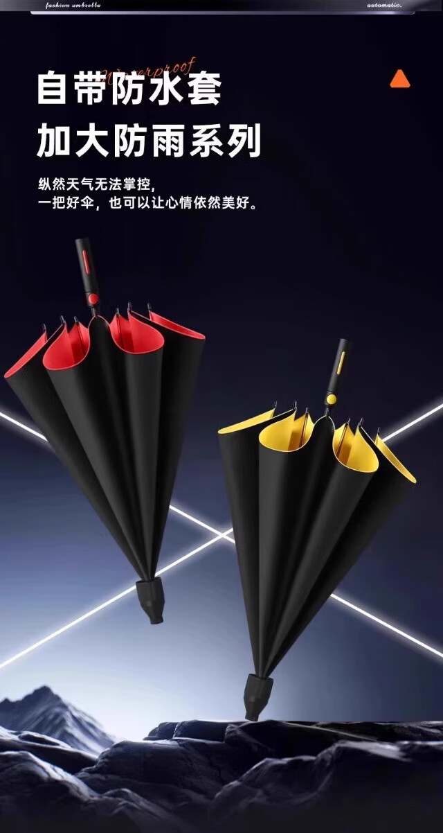 High-quality automatic fiber long-handled umbrella, reinforced, thickened, strong and storm-resistant, three pairs for men, oversized umbrella, diameter 125cm, with umbrella cover - yellow
