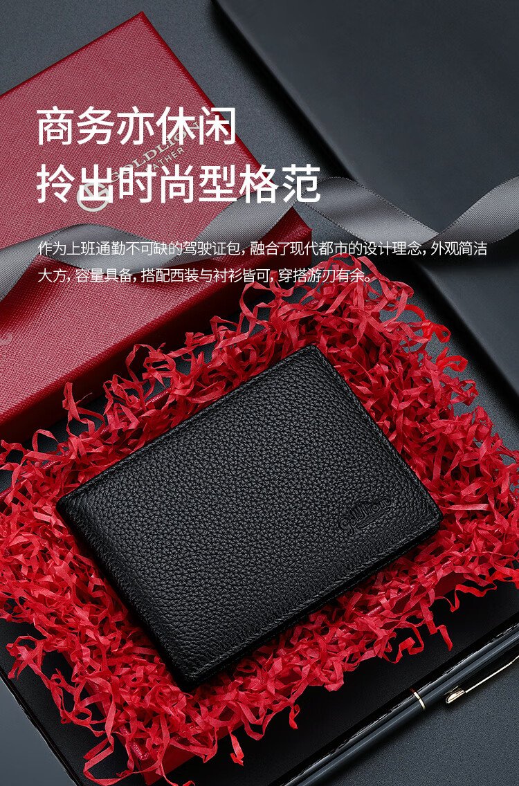Goldlion Document Pack Gift Box Driver's License Card Holder Leather Driver's License Cover Birthday Gift for Dad