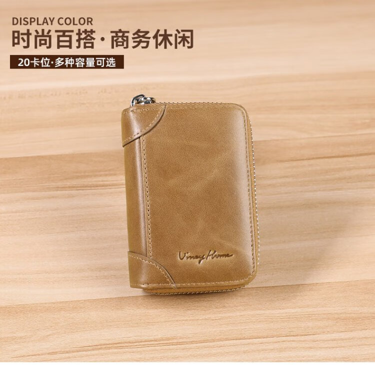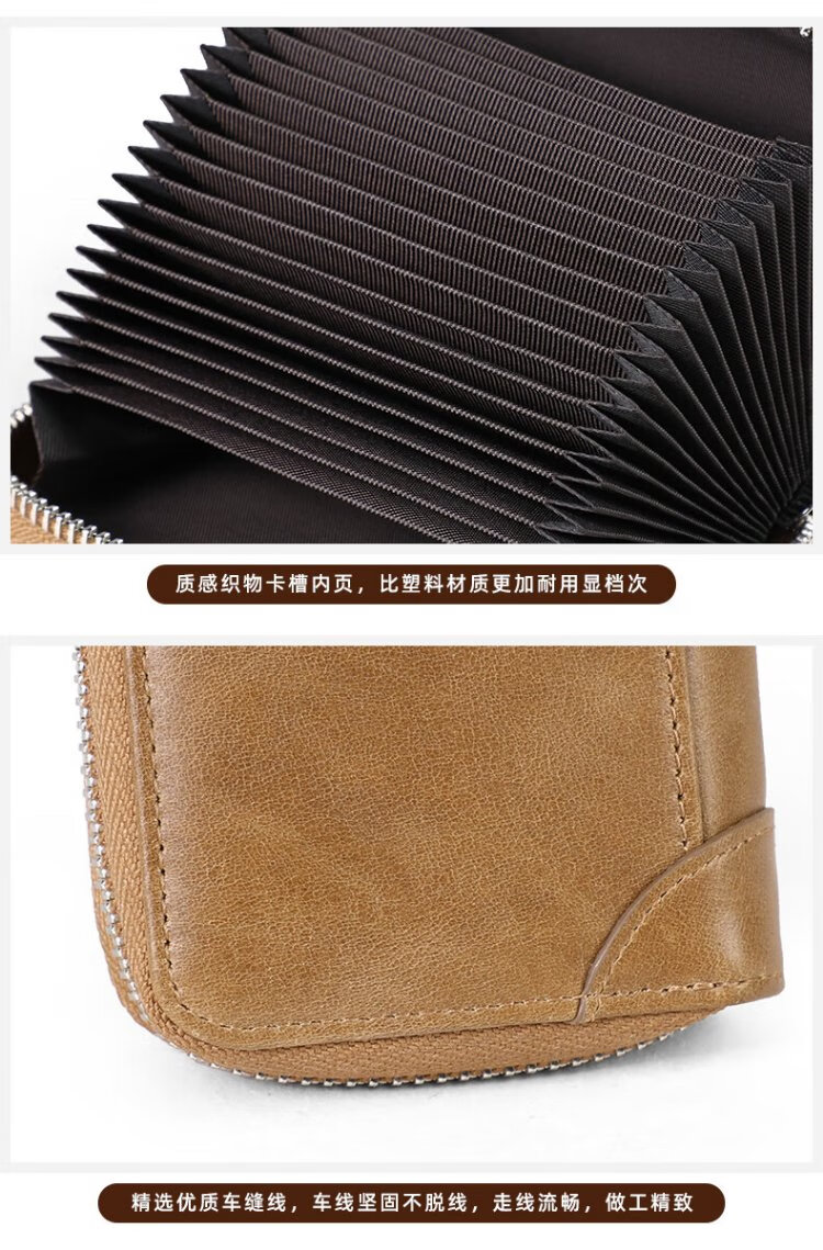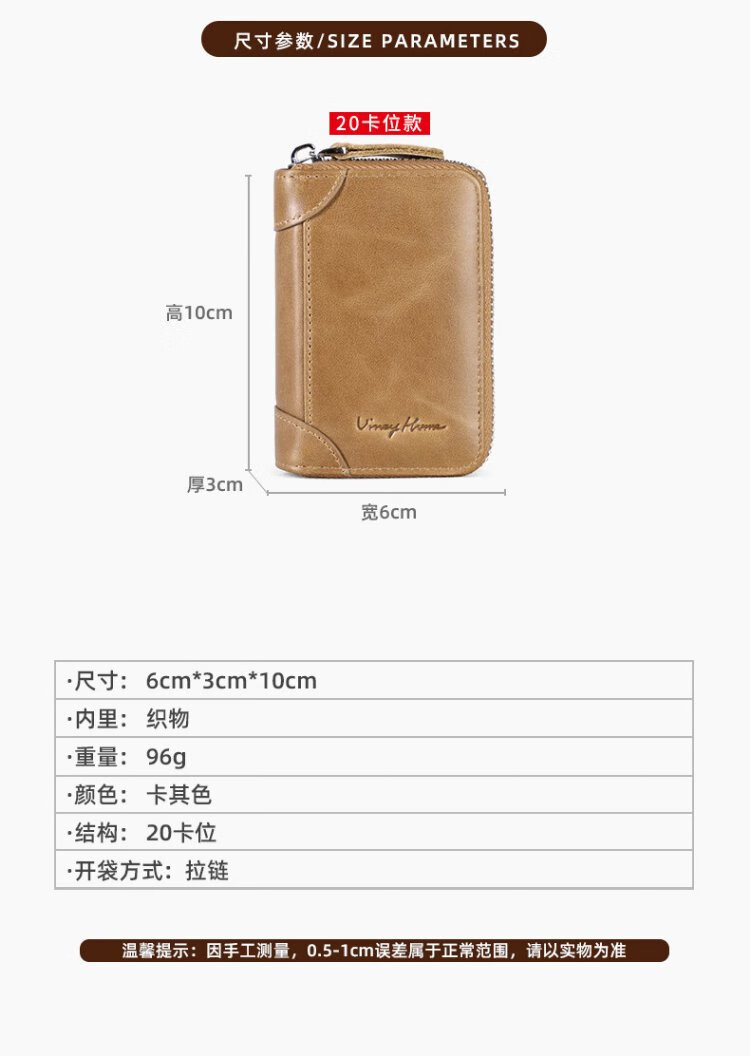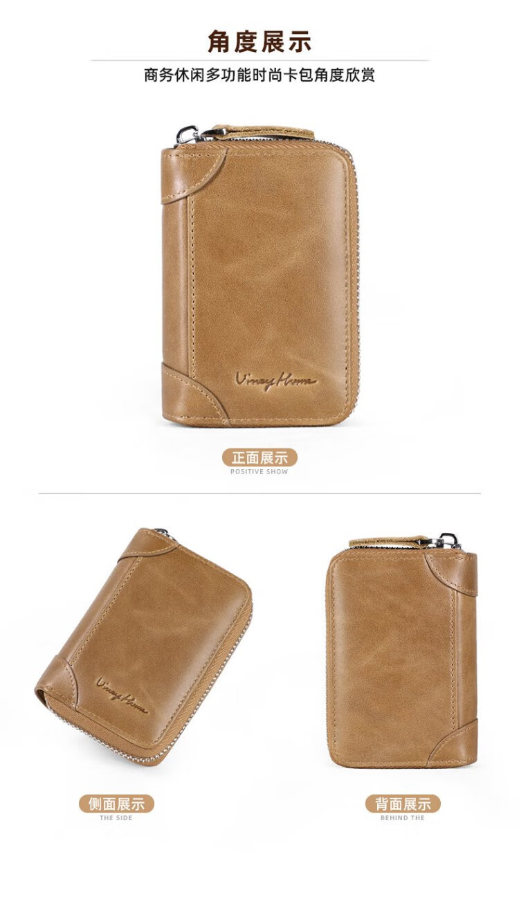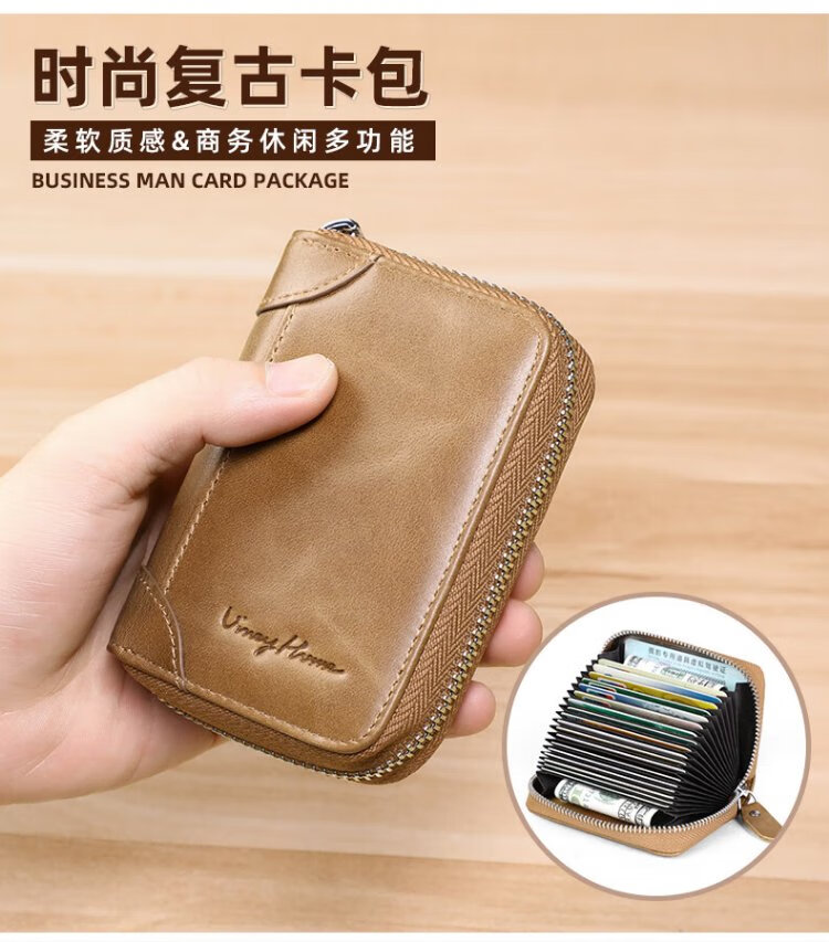 Viney card bag men's short genuine leather wallet large capacity anti-degaussing zipper bank card holder multi-card slot coin purse women's gift
