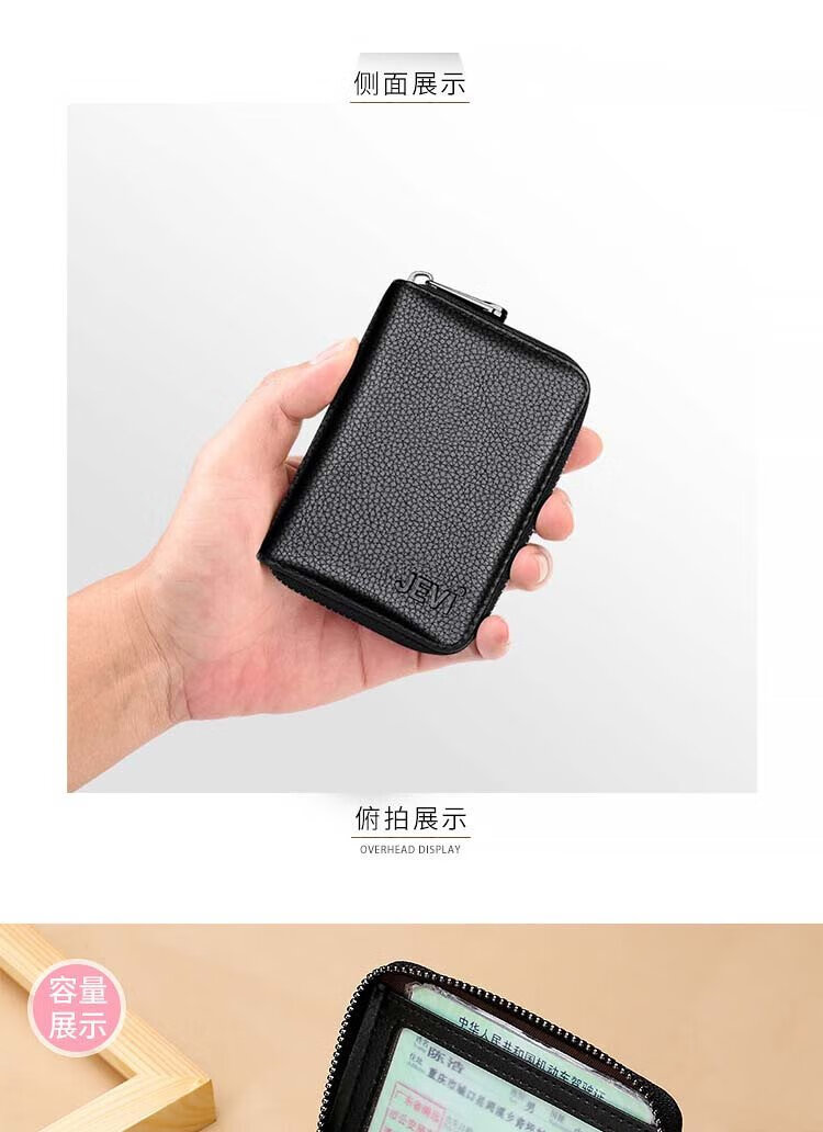 JEVI card holder for men and women, exquisite and fashionable, compact, multi-card slots, large capacity, ultra-thin ID slots, bank card holder, anti-degaussing