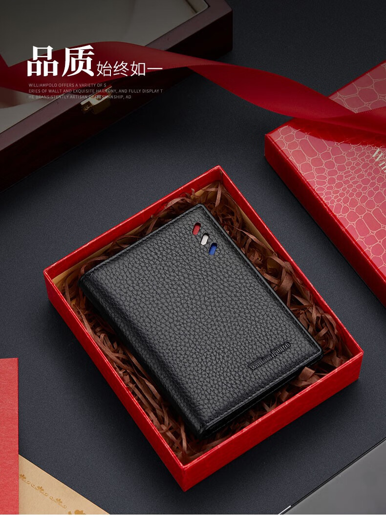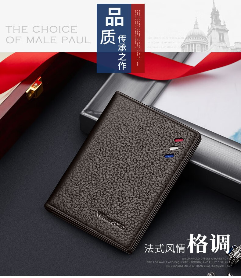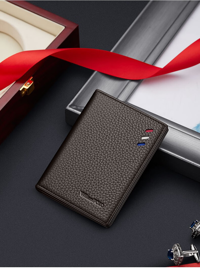 British Paul Mini Compact Card Holder Men's Genuine Leather ID Bag Ultra-Thin Driver's License Wallet Cover High-end Driver's License Card Holder Brown Lychee Pattern - 30% Off