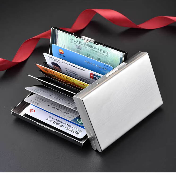 Jingjia stainless steel card holder anti-theft brushed metal card holder for men and women anti-degaussing card box driver's license small card holder anti-theft brushed silver brushed 6 card slots