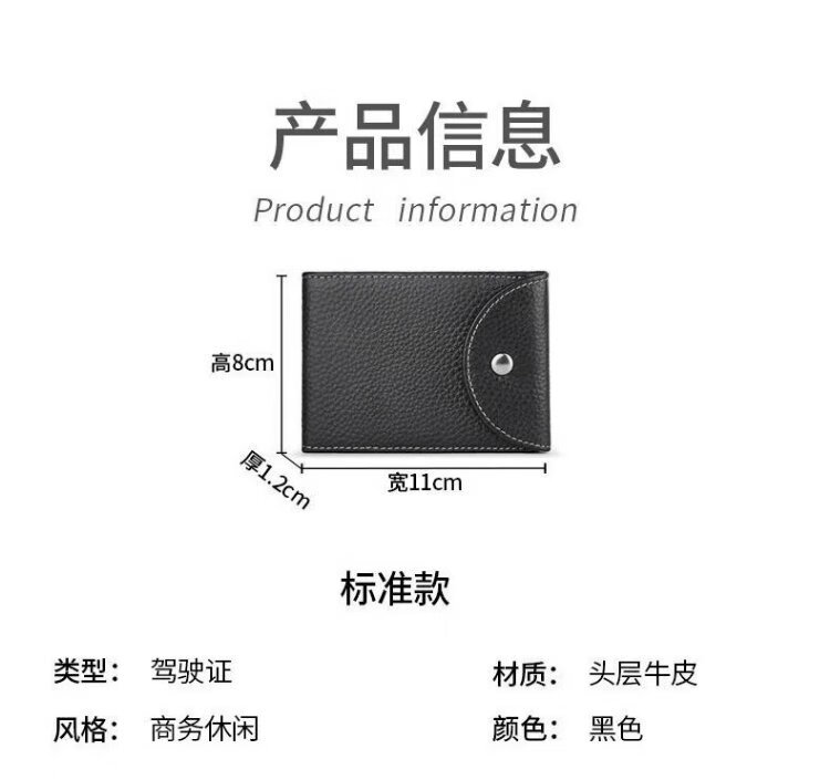 Racon first-layer cowhide driving license holder motor vehicle card holder driving license card holder for men and women genuine leather ultra-thin bank card holder black 4 ID slots 8 card slots