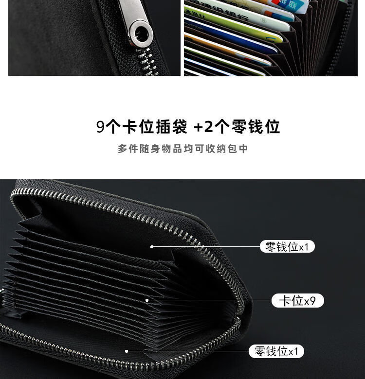 Junkiss card holder for men, multi-card slots, large capacity, anti-degaussing, multi-functional ID bag, wallet card holder, wallet zipper, 11 card slots, gray, anti-theft/anti-degaussing
