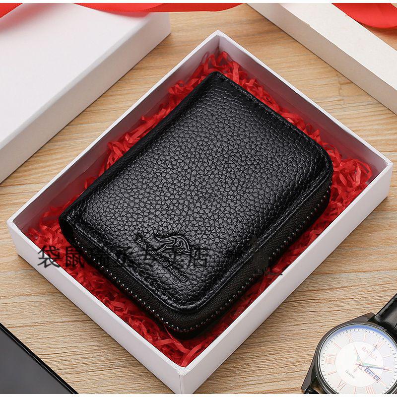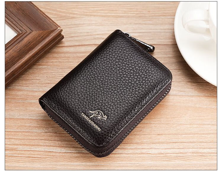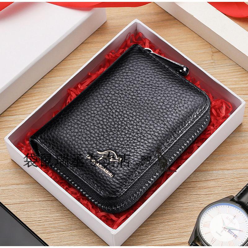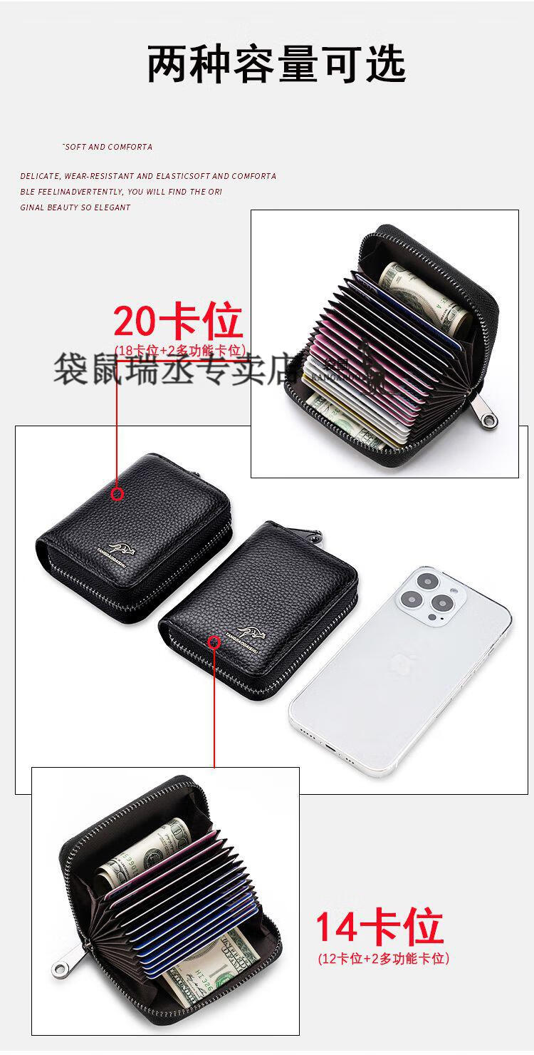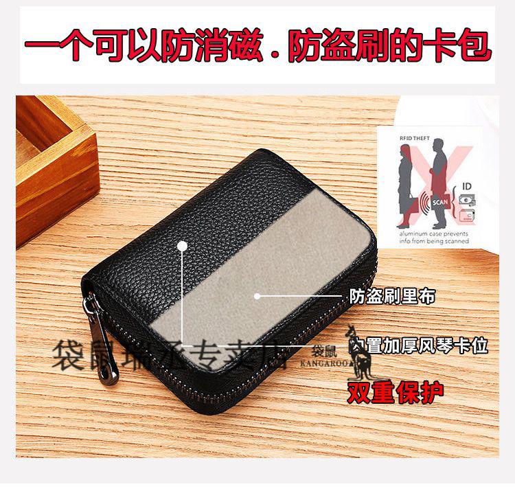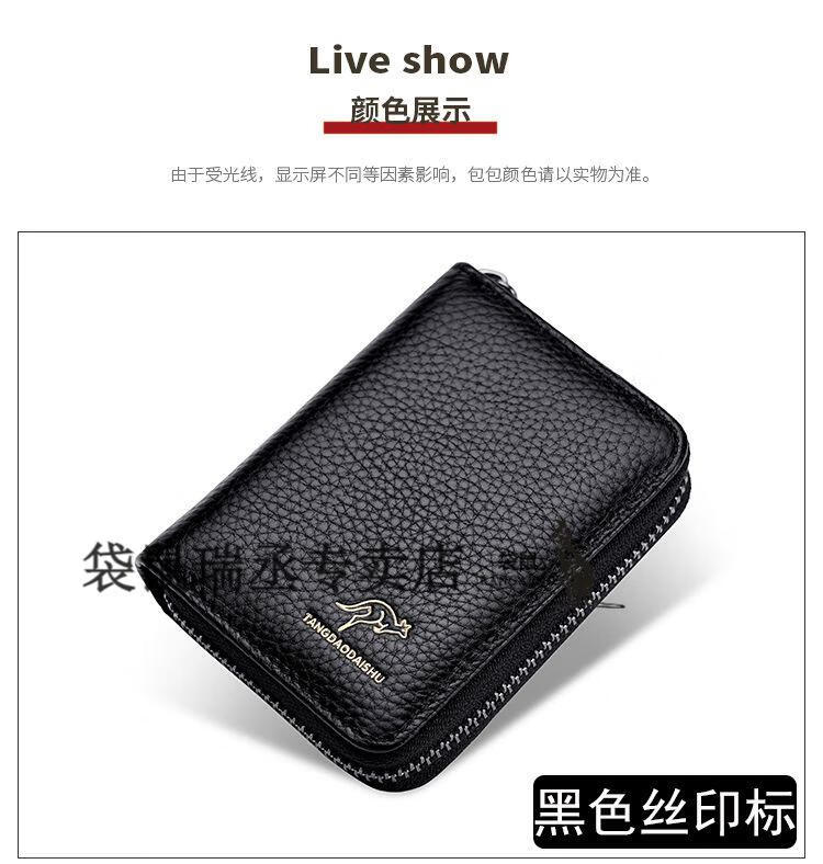 Kangaroo card holder genuine leather men's anti-degaussing document bag women's card holder driver's license holder anti-theft bank card holder cowhide black embossed label (14 card slots) jd