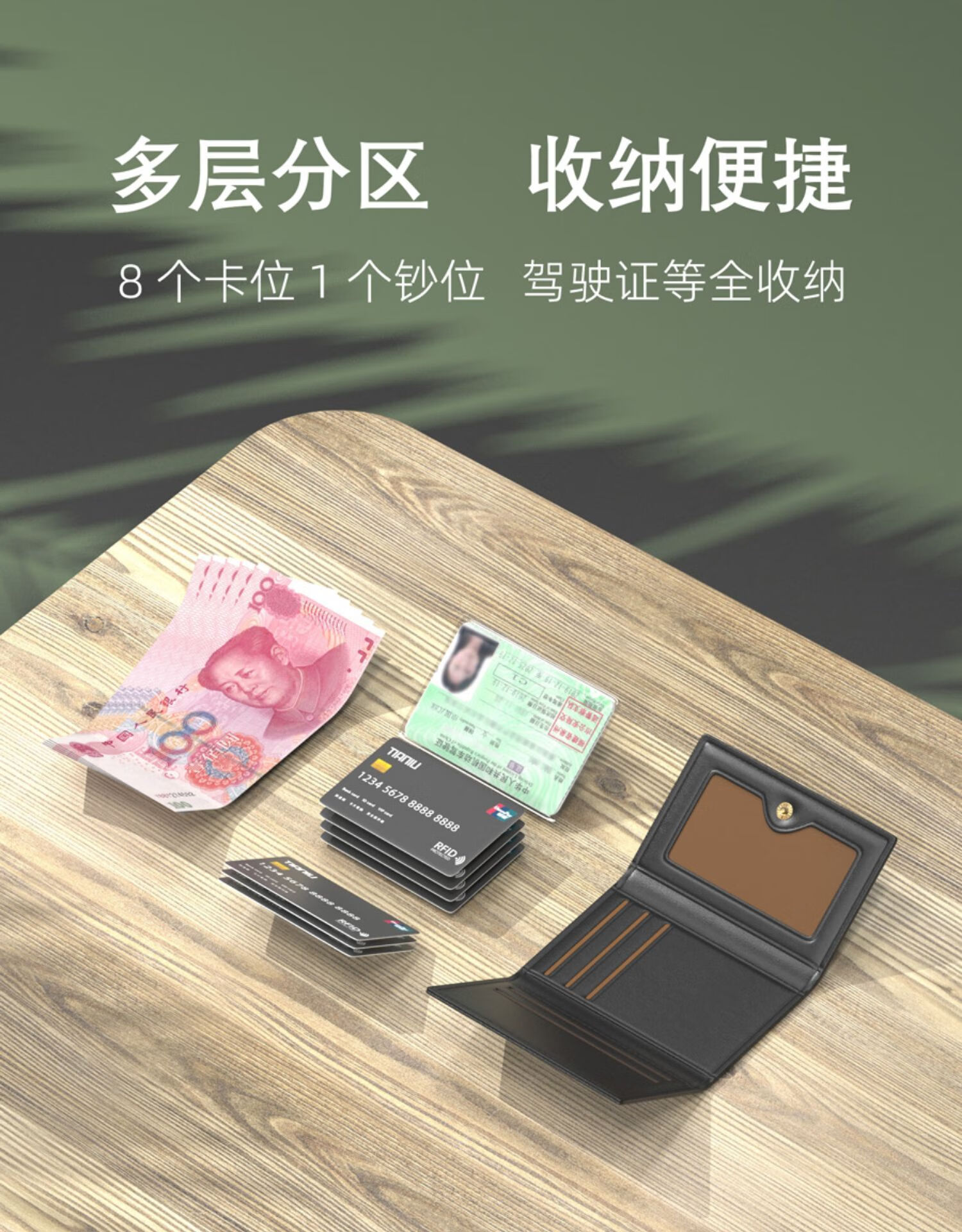 MZXM Card Holder Document Storage Bag Men's and Women's Tri-fold Wallet Integrated Anti-Degaussing Card Holder Driver's License Bag Two-in-One Black
