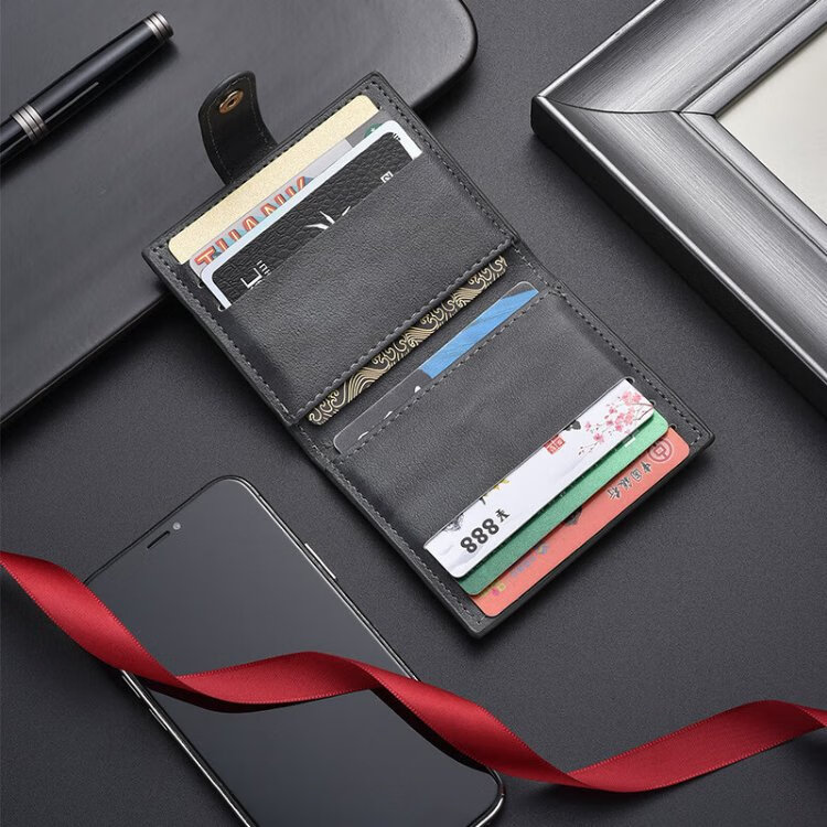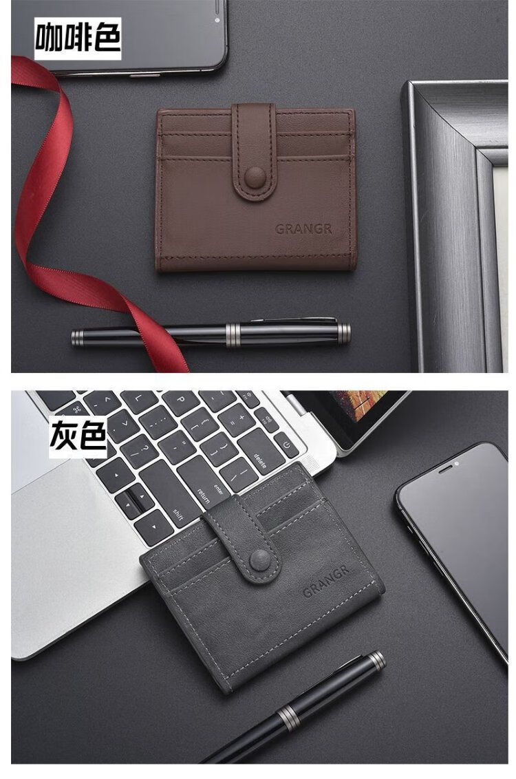 Tenggexiang Card Holder ID Bag Ultra-thin Card Holder Multiple Card Slots Versatile Soft Leather Compact Portable Ink Thin Card Holder ID Bag Gray Blue