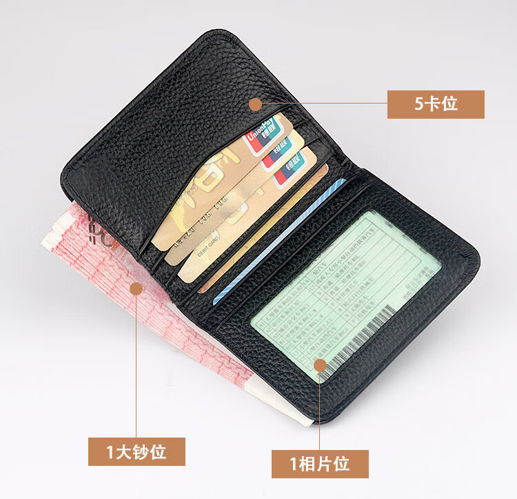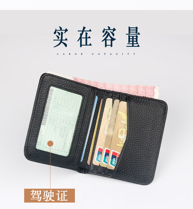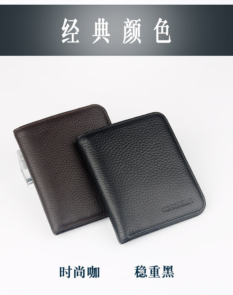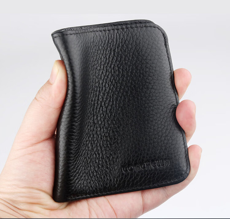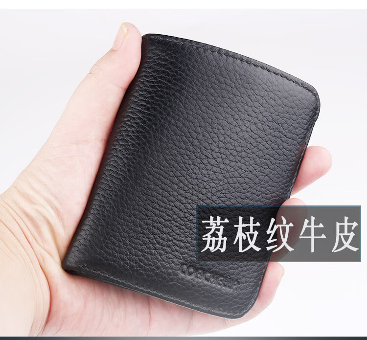 Goldlion Genuine Leather Wallet Men's Short Mini Simple Wallet Multifunctional Folding Soft Wallet Driver's License Card Holder Black