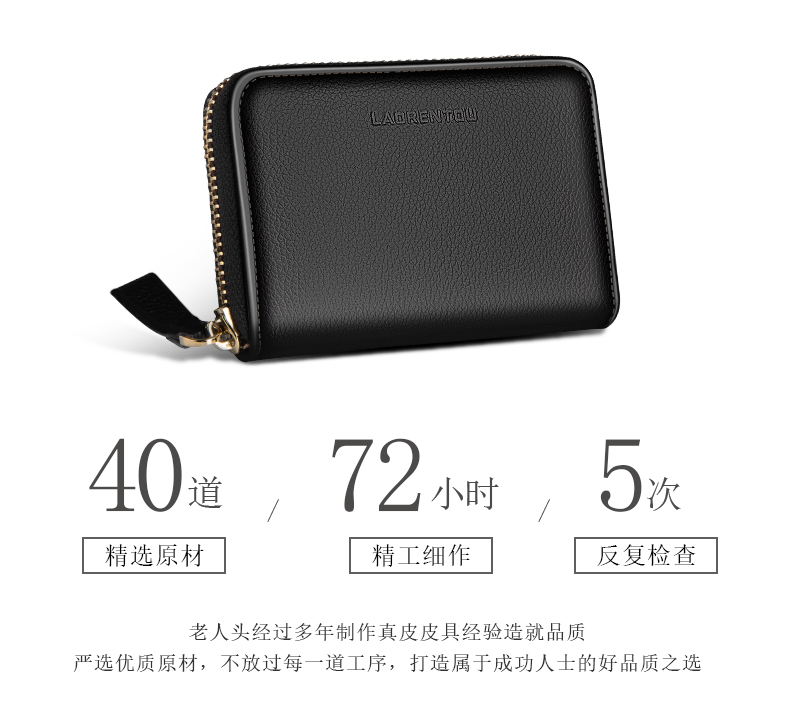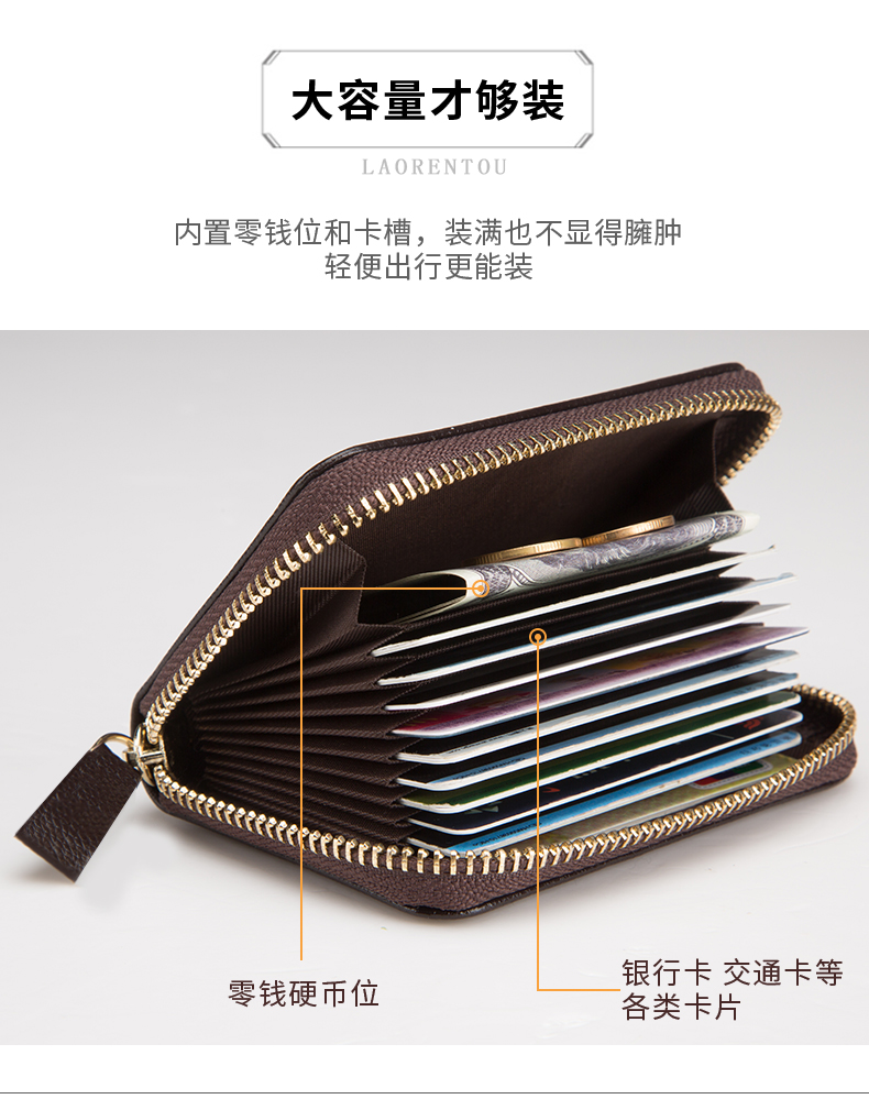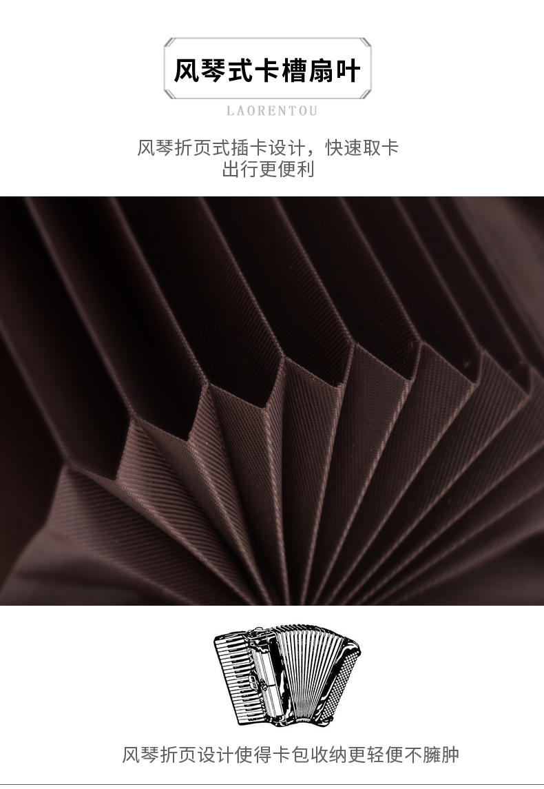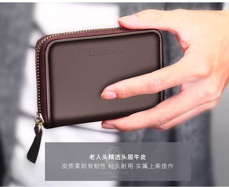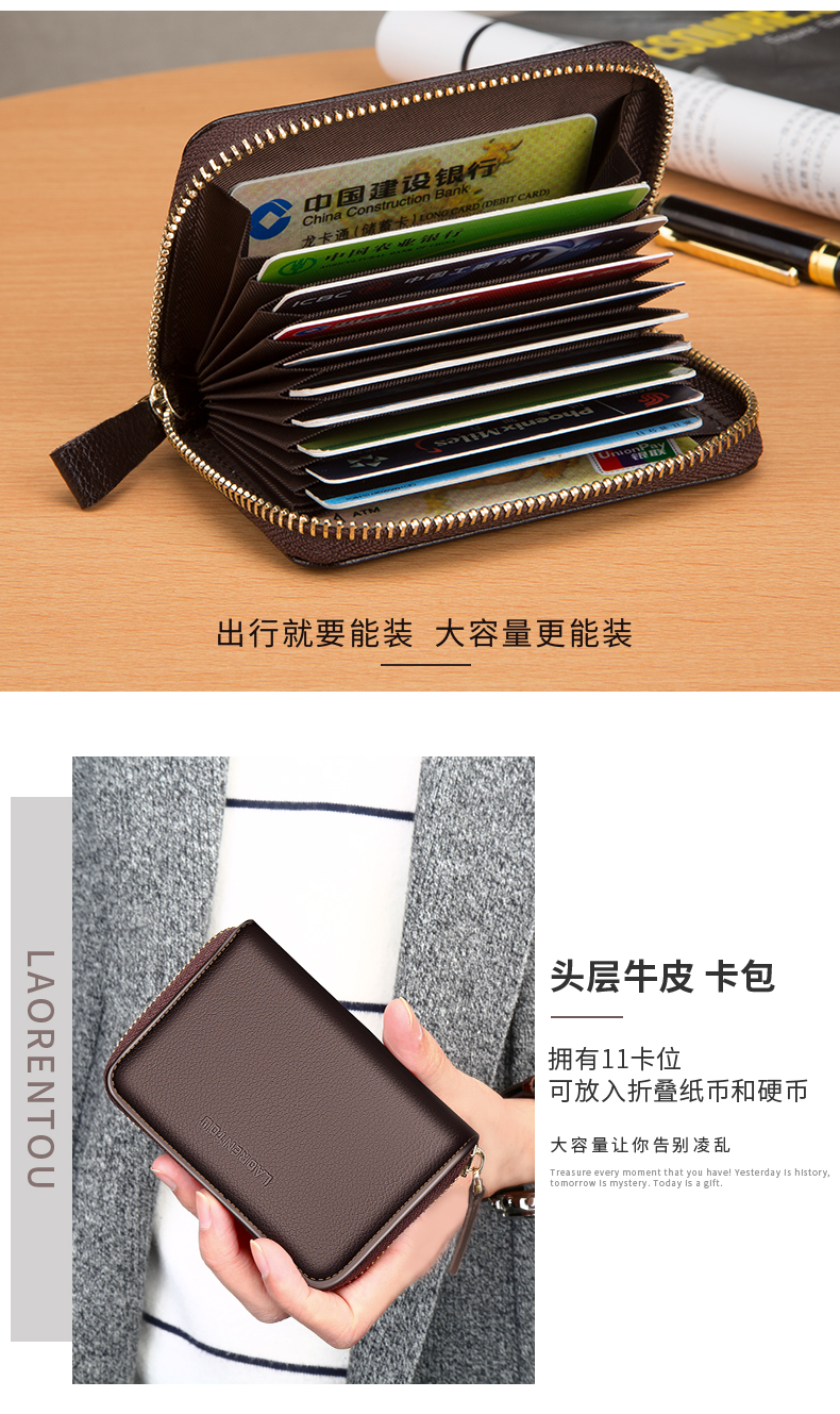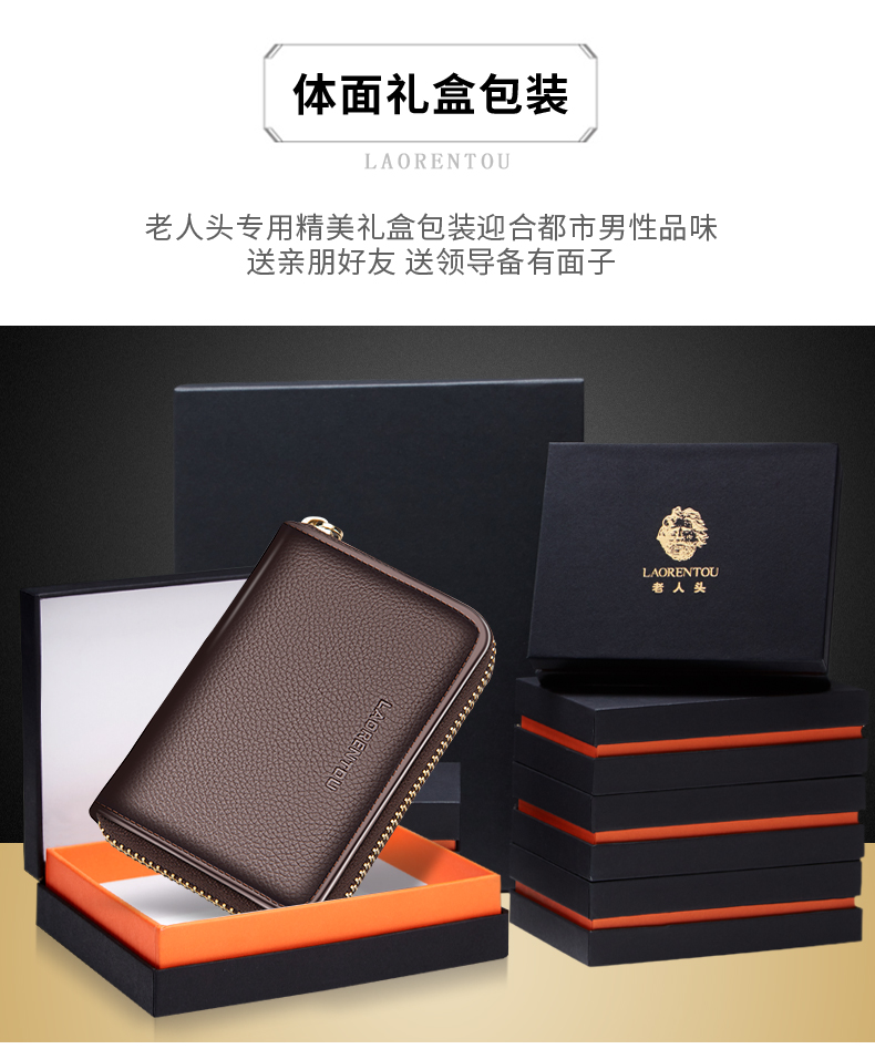 Old man's head men's card holder multifunctional genuine leather wallet first layer cowhide simple large capacity coin purse multiple card slots youth card holder 321J005L9A black