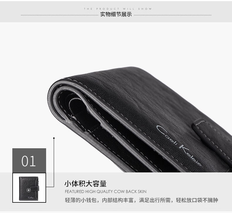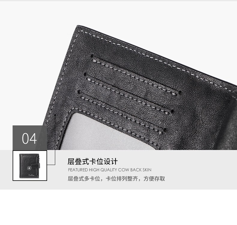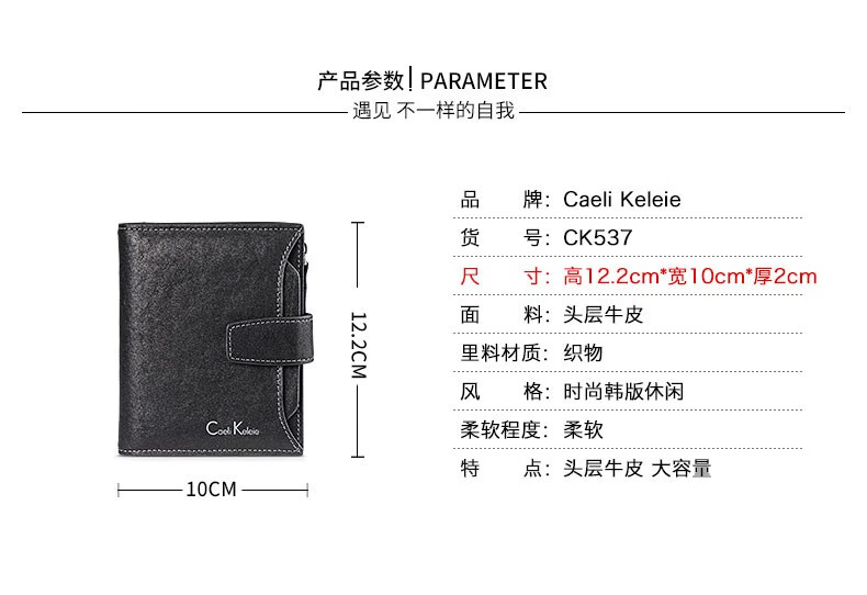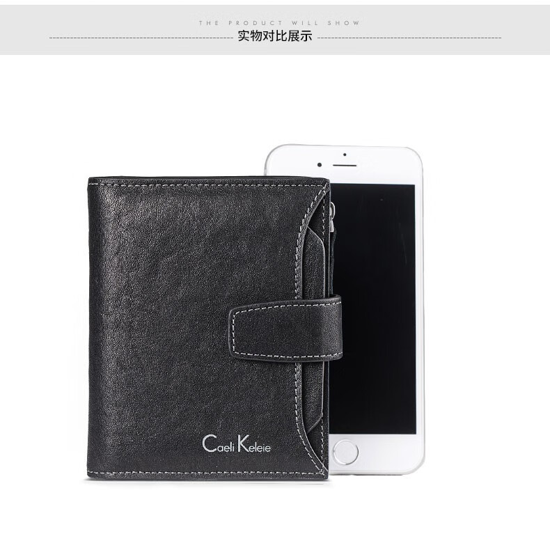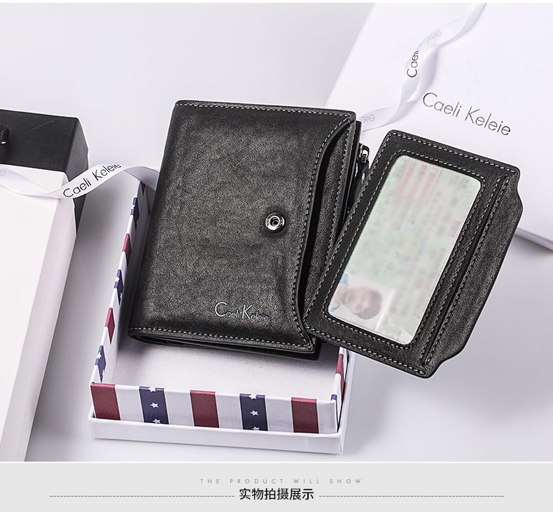 CAELI\x26KELEIE wallet men's genuine leather short soft pickup bag Korean version trendy multi-card slot first layer cowhide wallet men's gift box K537 black + 15 days no reason to return + 365 days warranty