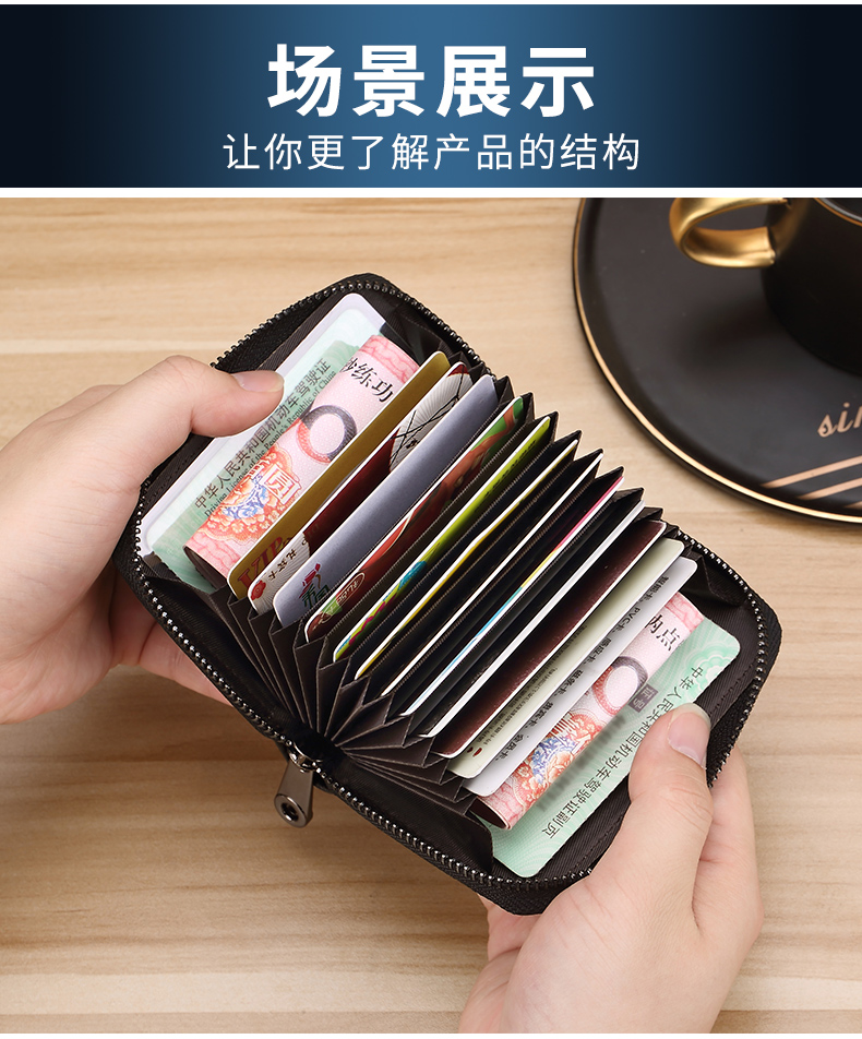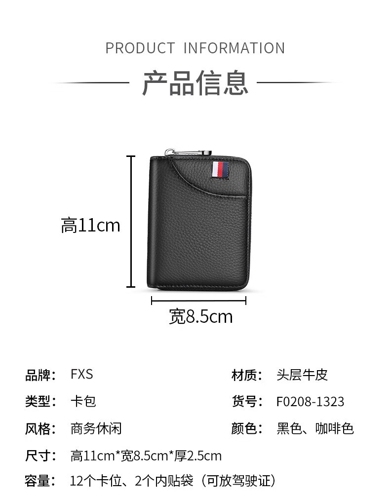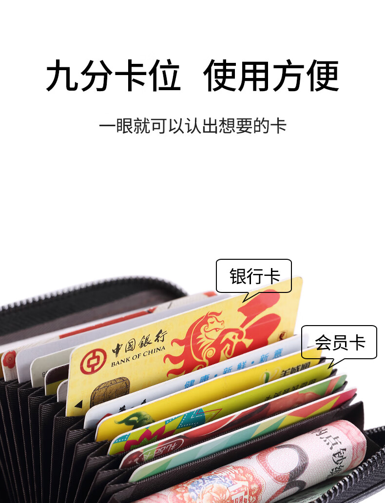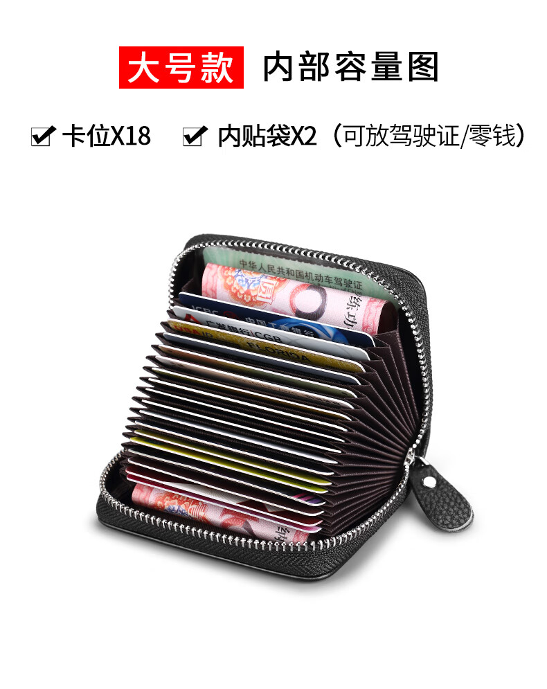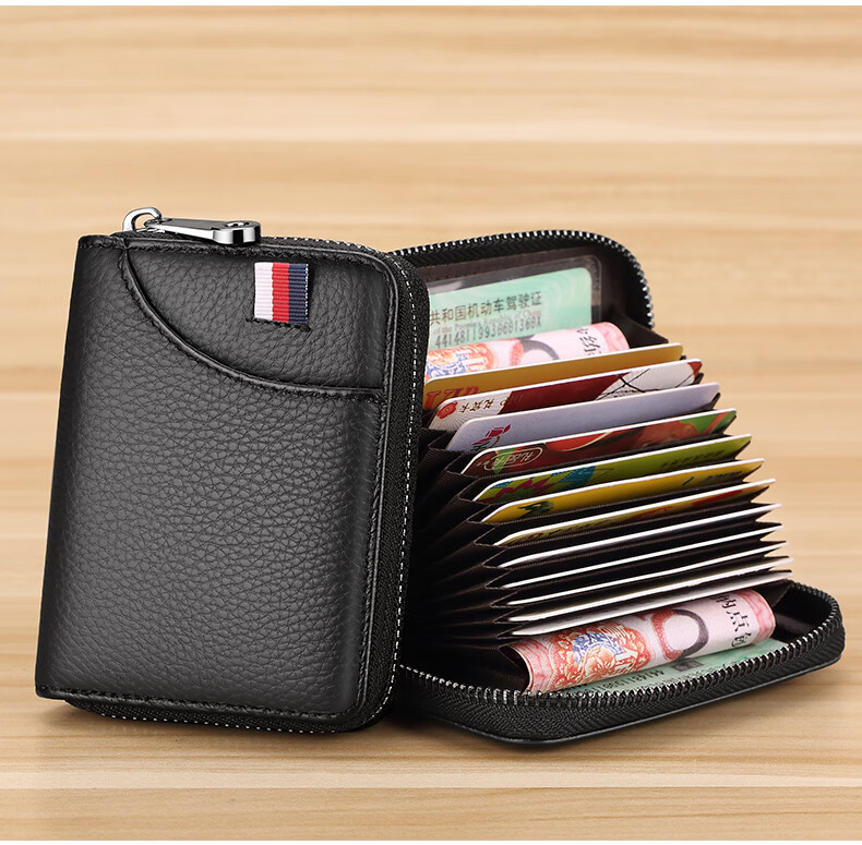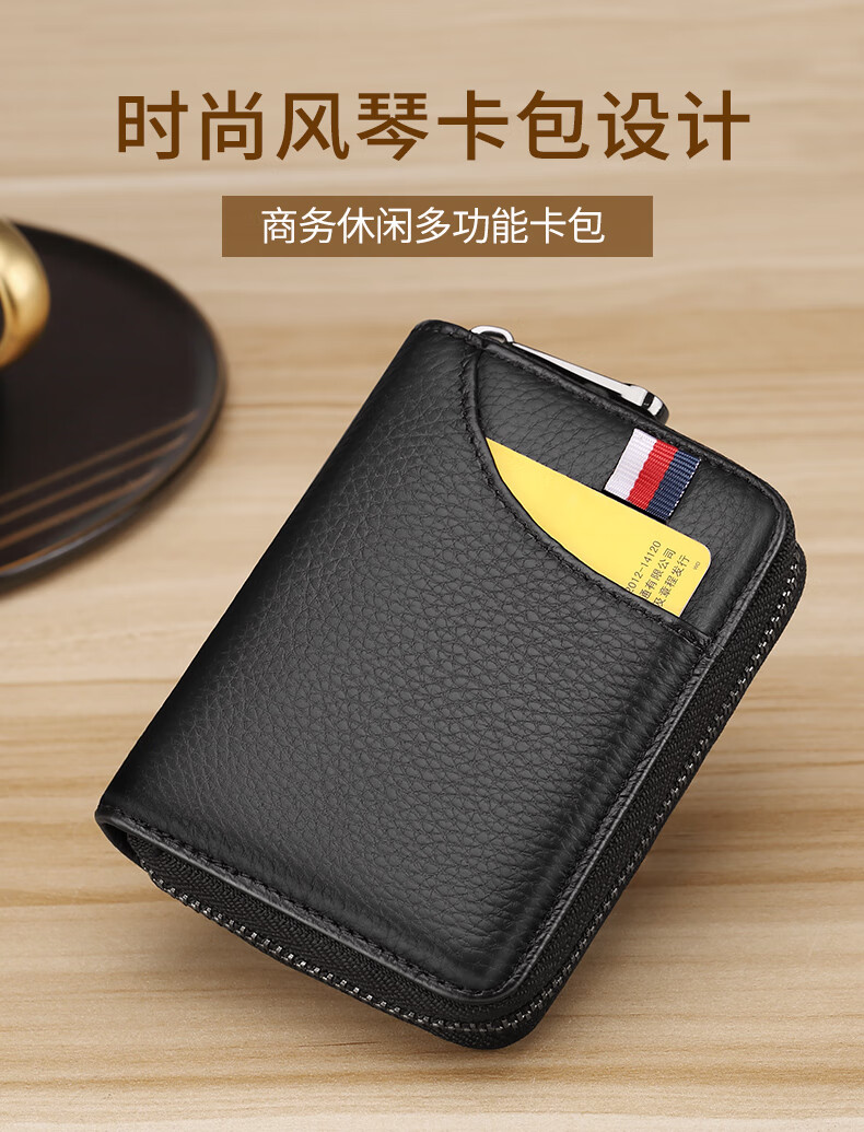 FXS genuine pickup bag for men, large capacity, multi-card slots, coin purse, holster, bank card holder, anti-magnetic, anti-theft, document holder, card holder, upgraded model A, black, 15 card slots