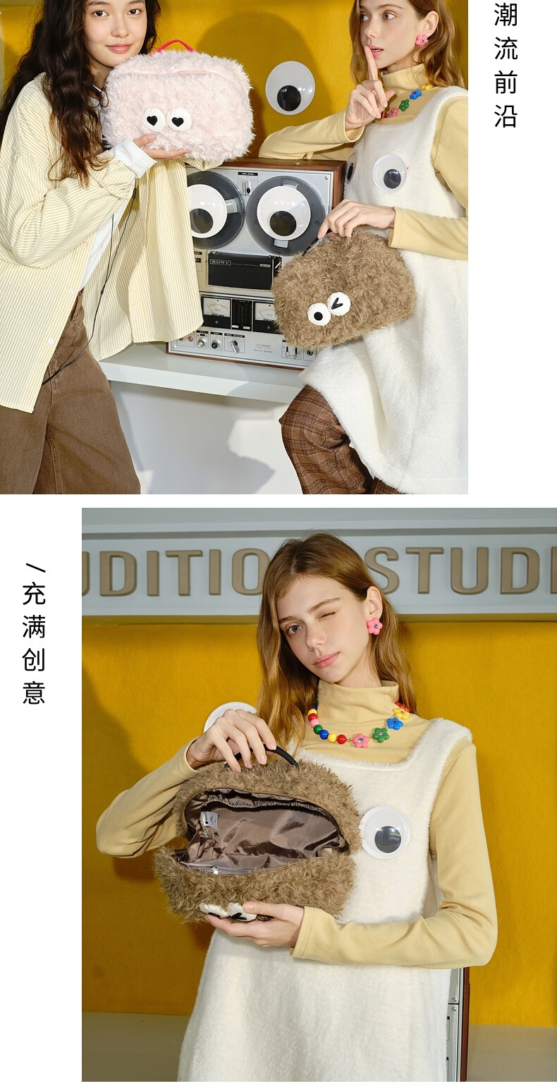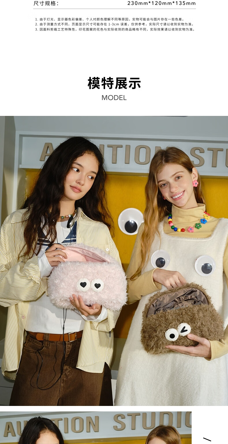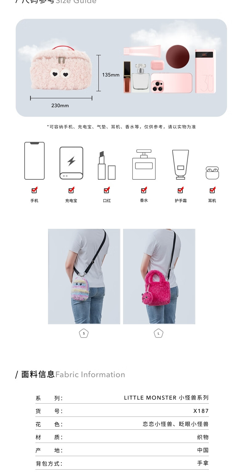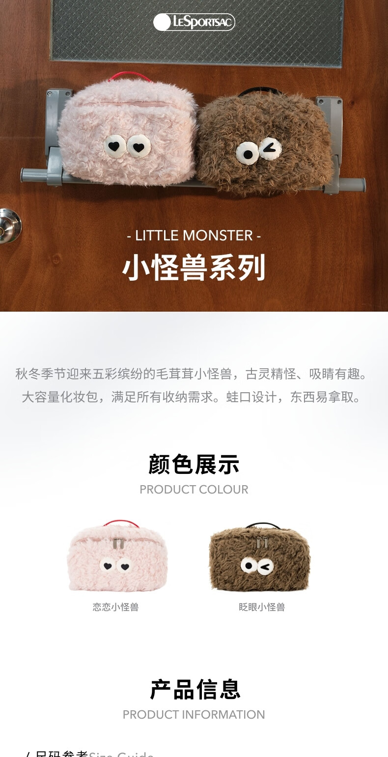 LeSportsac New Little Monster Series Cute Autumn and Winter Plush Cosmetic Bag Storage Clutch Love Little Monster