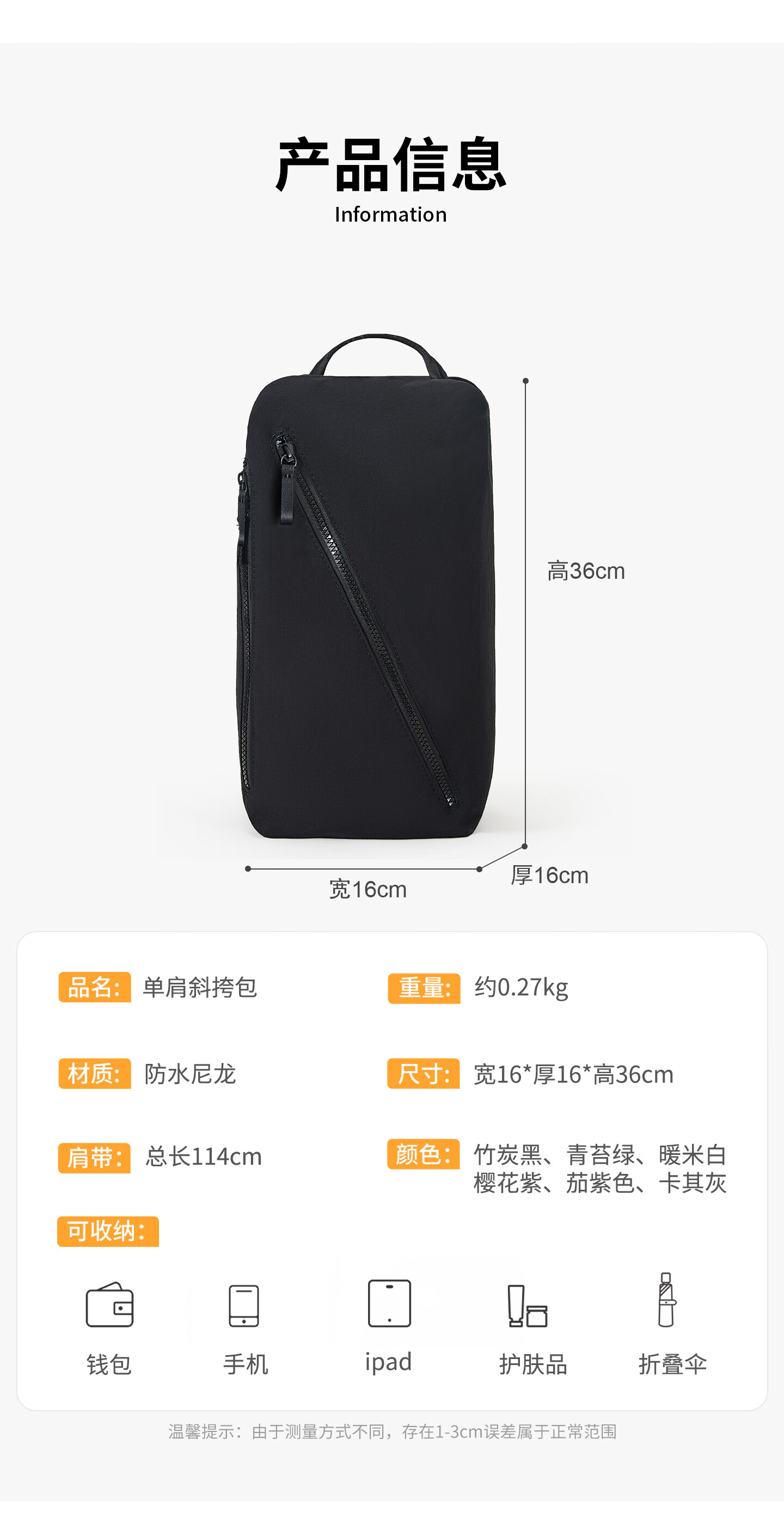 Miyo crossbody bag for women 2025 new daily commuting business trip shoulder bag large capacity waterproof lightweight travel clutch bag for men bamboo charcoal black