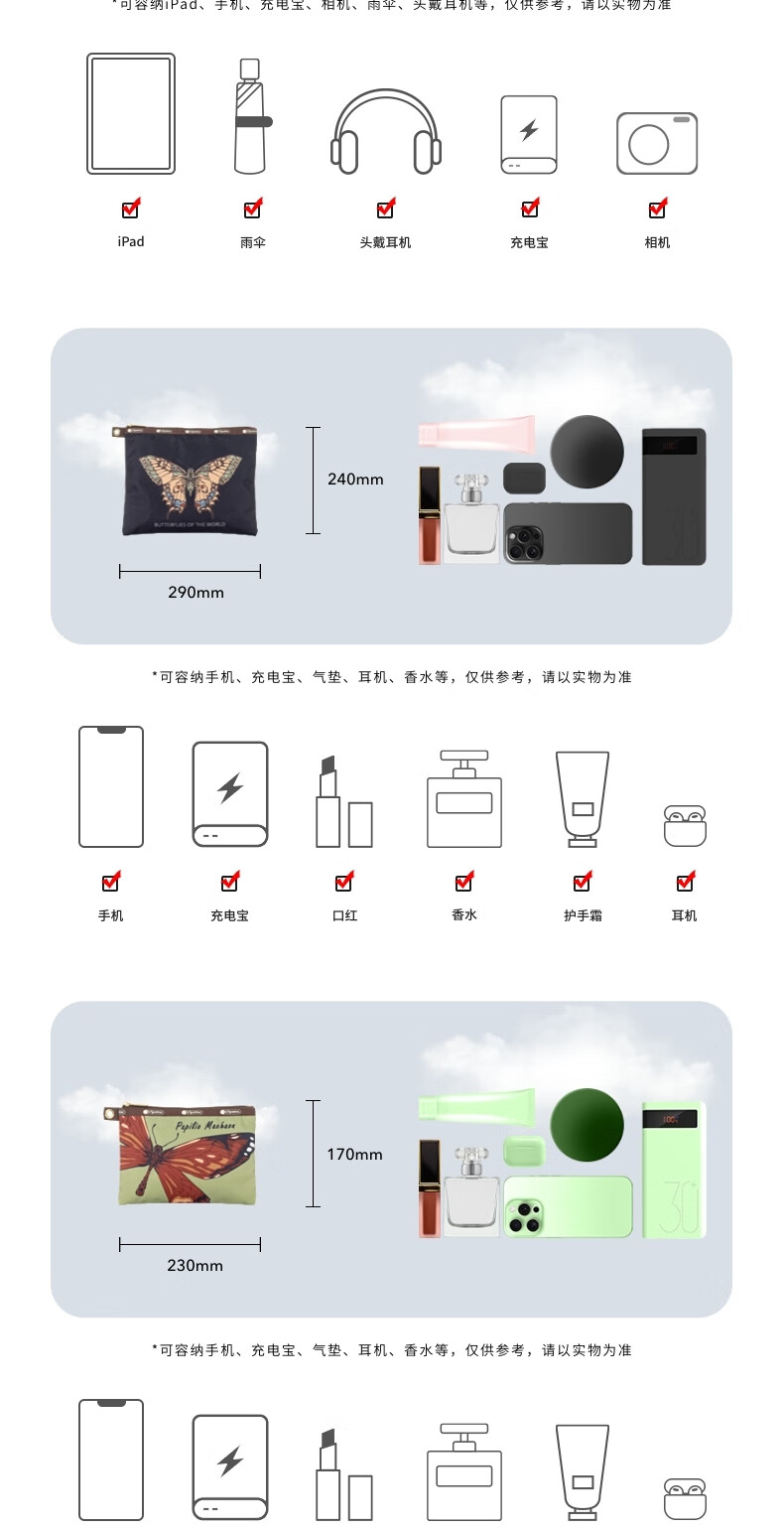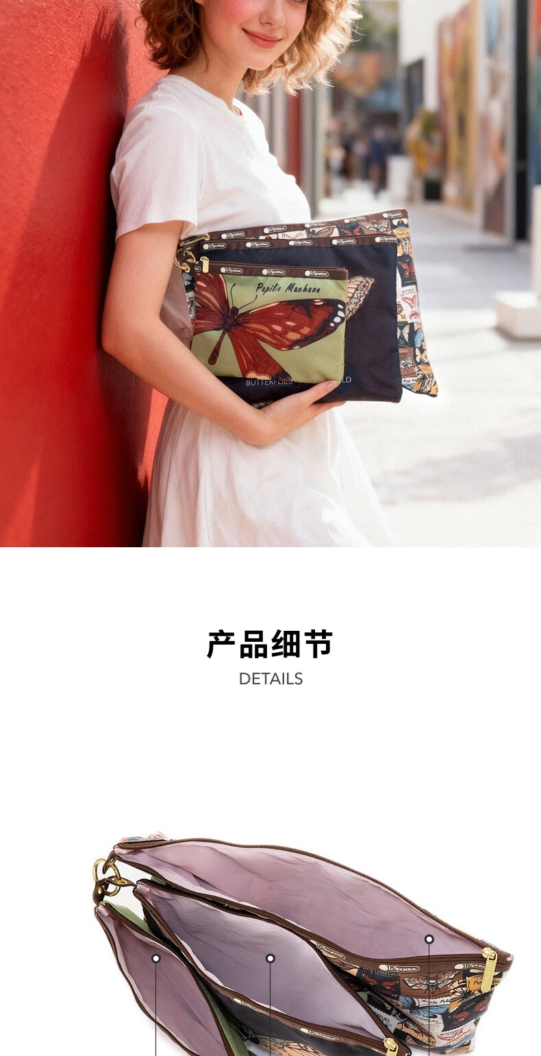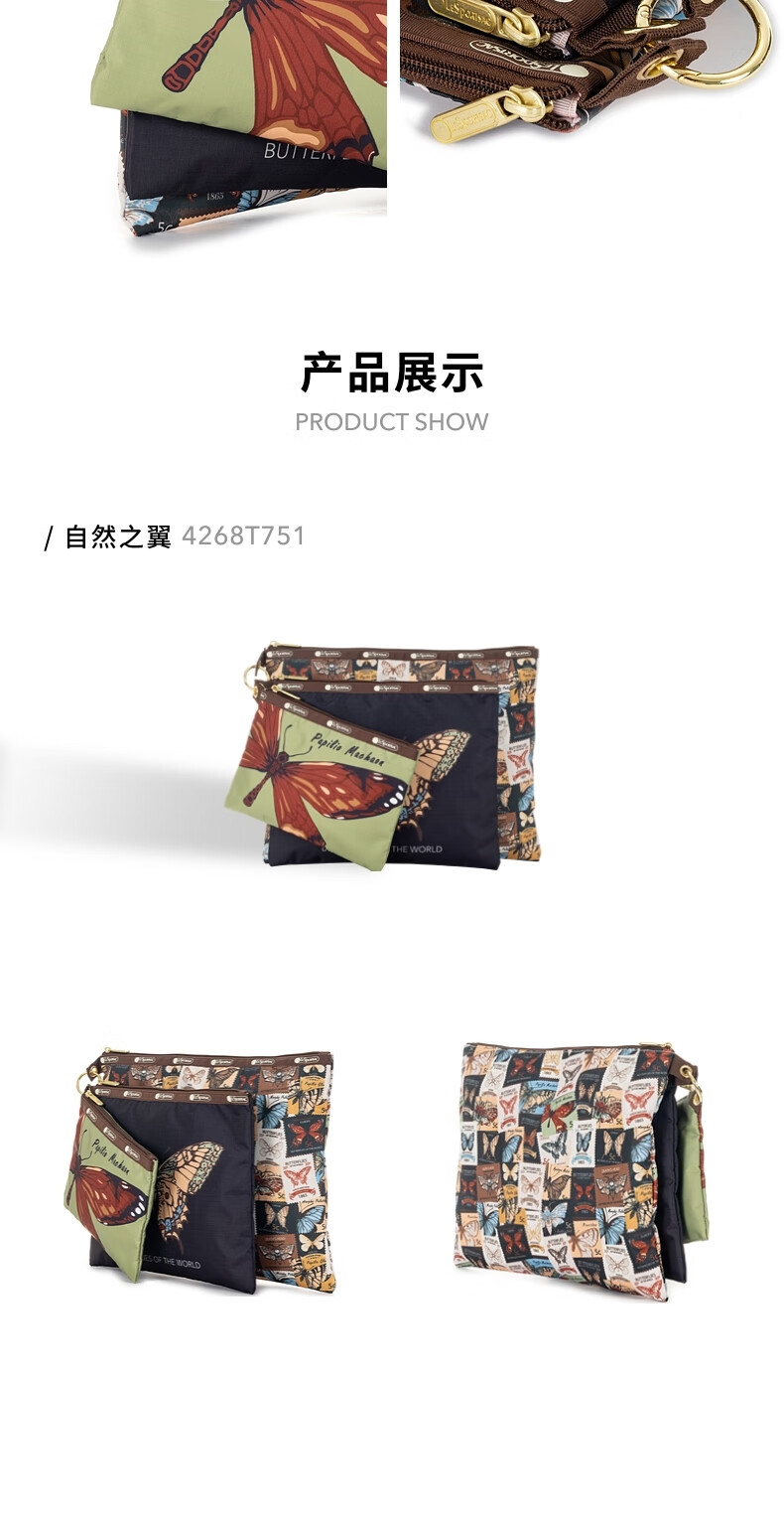 LeSportsac's new butterfly stamp series is fully printed with retro practical triple bag storage clutch, Wings of Nature
