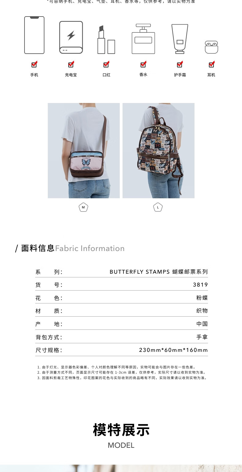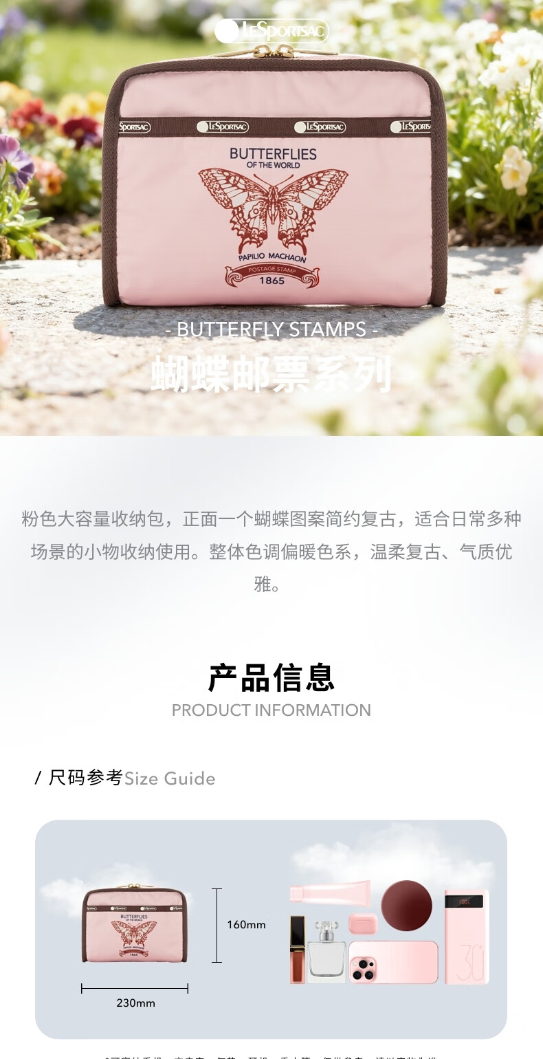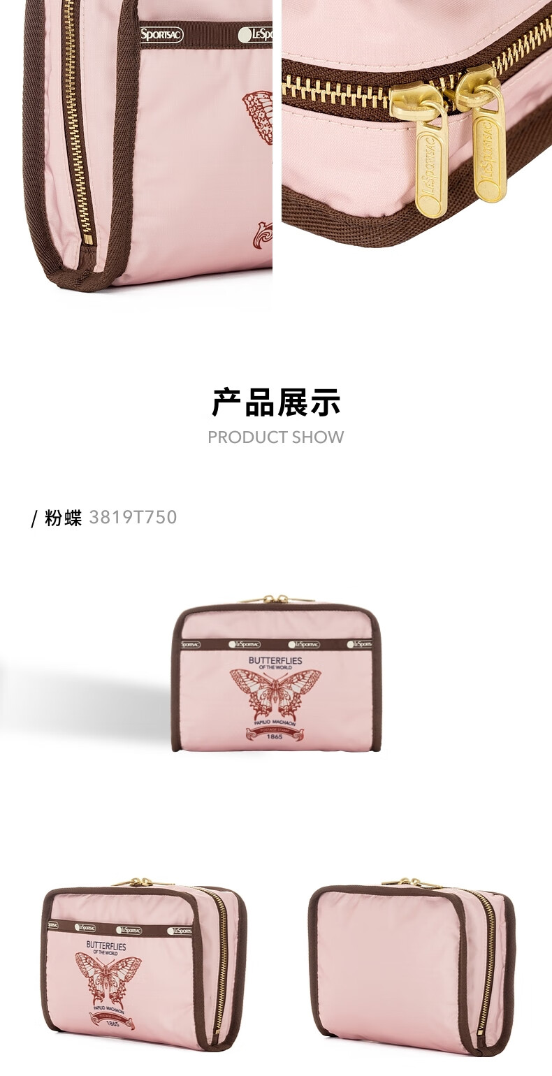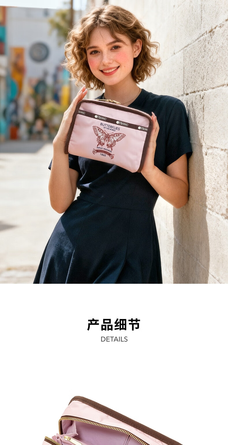 LeSportsac New Butterfly Stamp Series Gentle Pink Storage Bag Coin Purse Women's Clutch Pink Butterfly