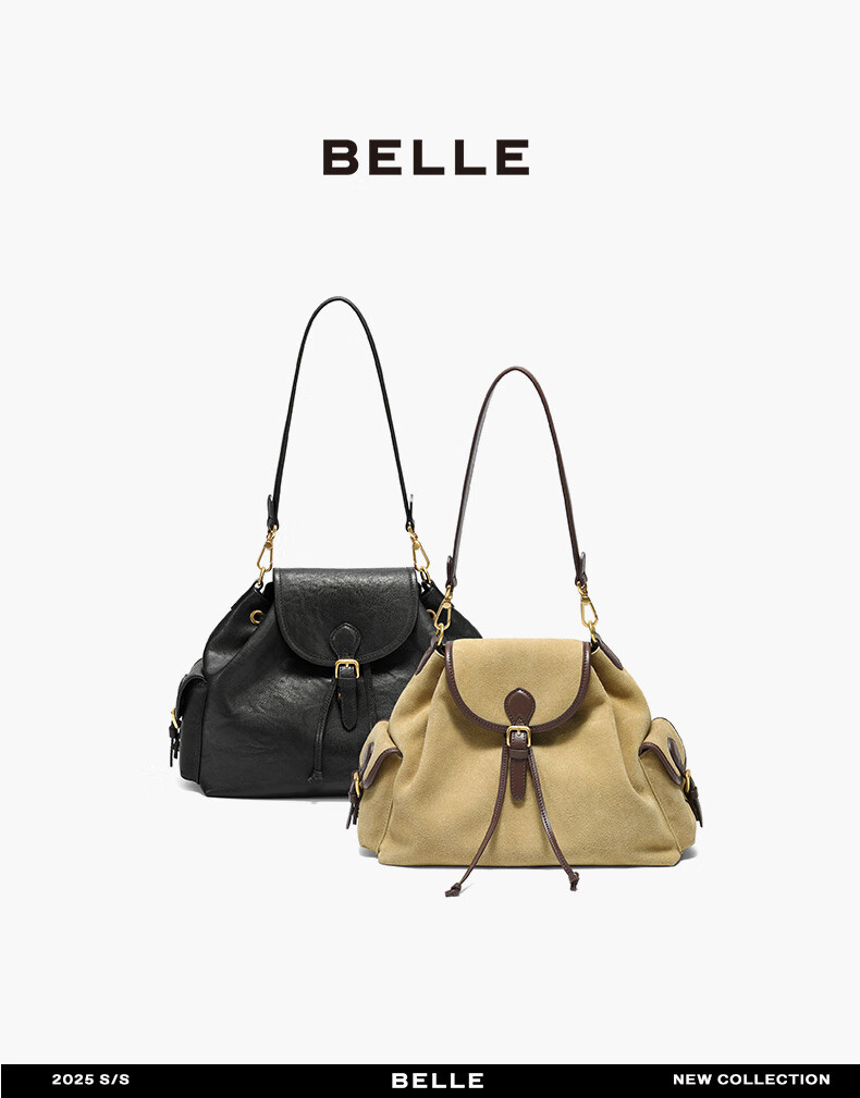 Belle Bag Women 2025 Winter New Fashion Casual Suede Hand Scratched Shoulder Bag Backpack JY178AX6 Pre-sale Black F