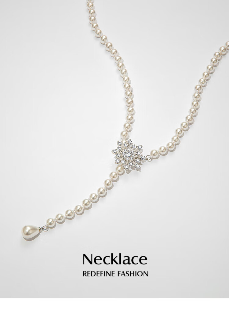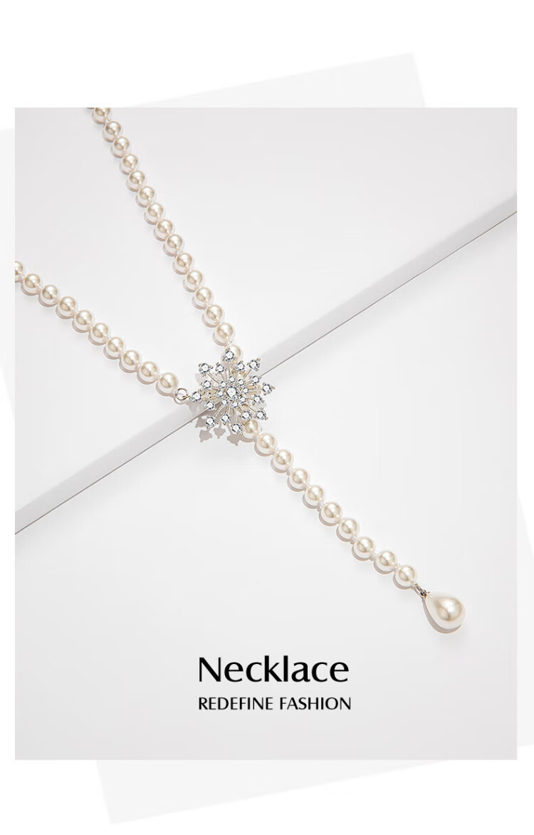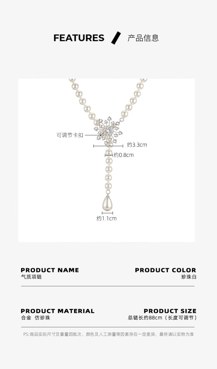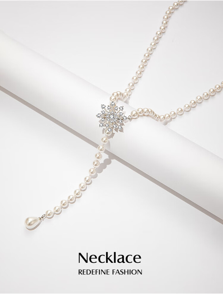 Qlady snowflake imitation pearl sweater chain women's long necklace autumn and winter temperament light luxury niche sweater pendant pendant accessories