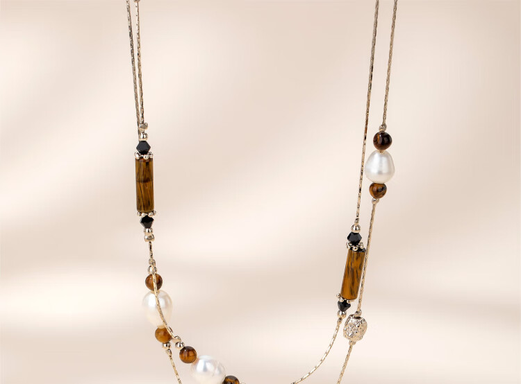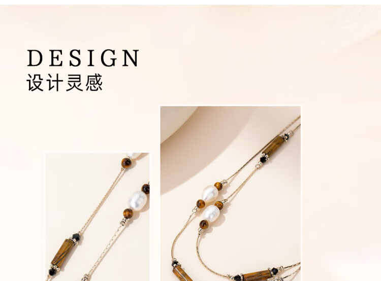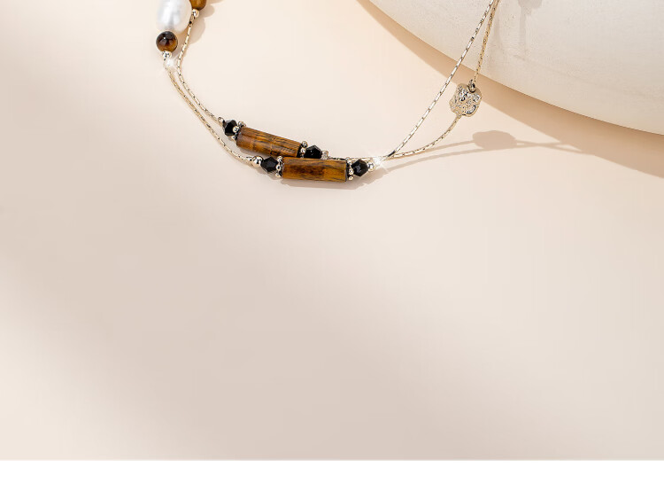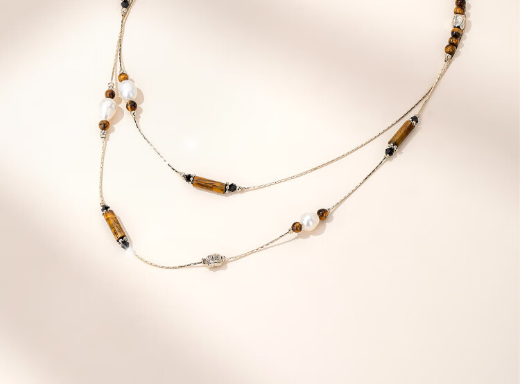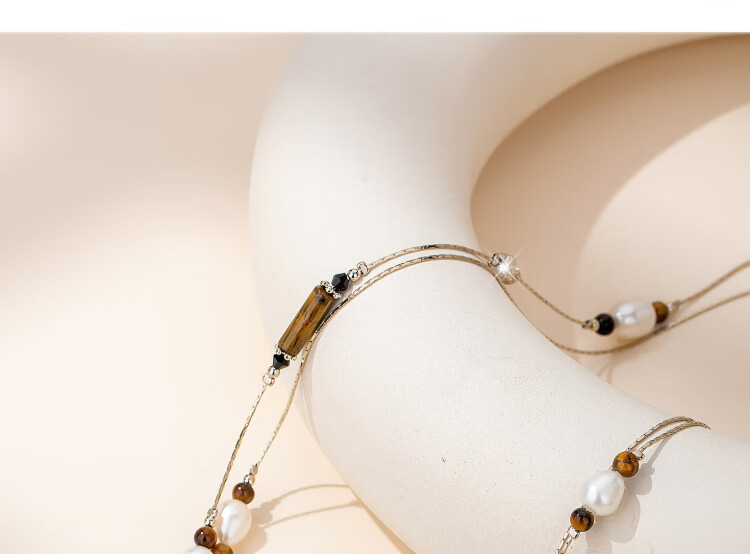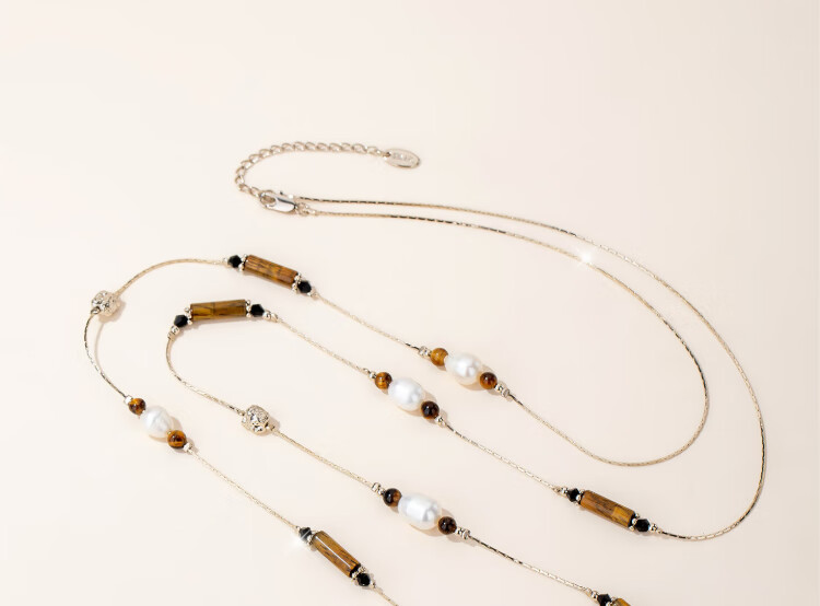 Qlady tiger eye stone double-layered pearl necklace women's long high-end light luxury niche 2025 new autumn and winter sweater chain accessories