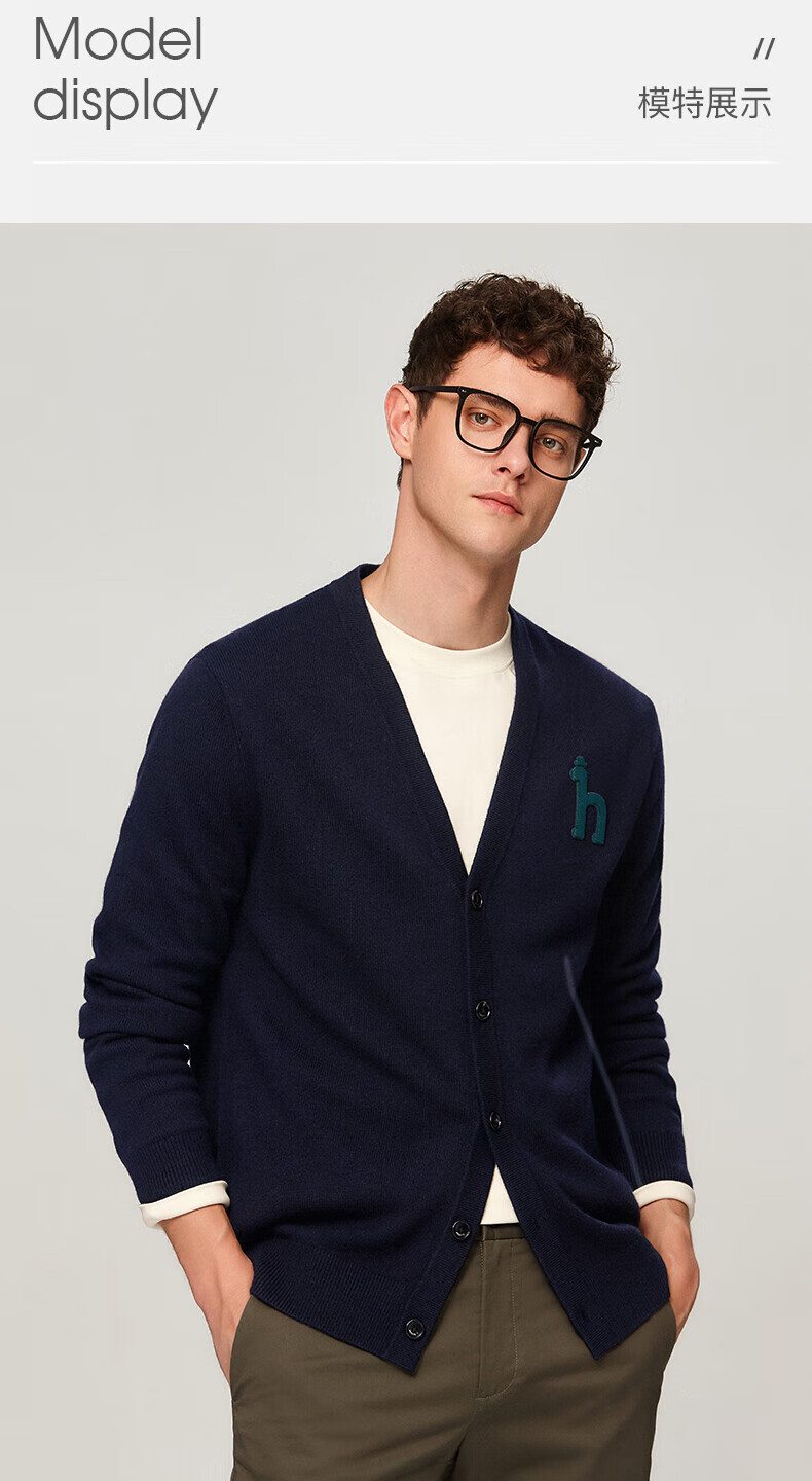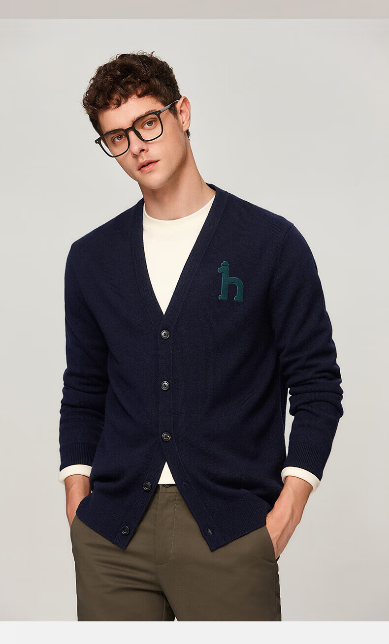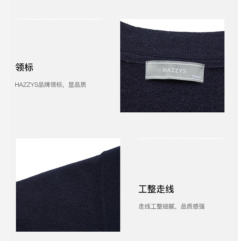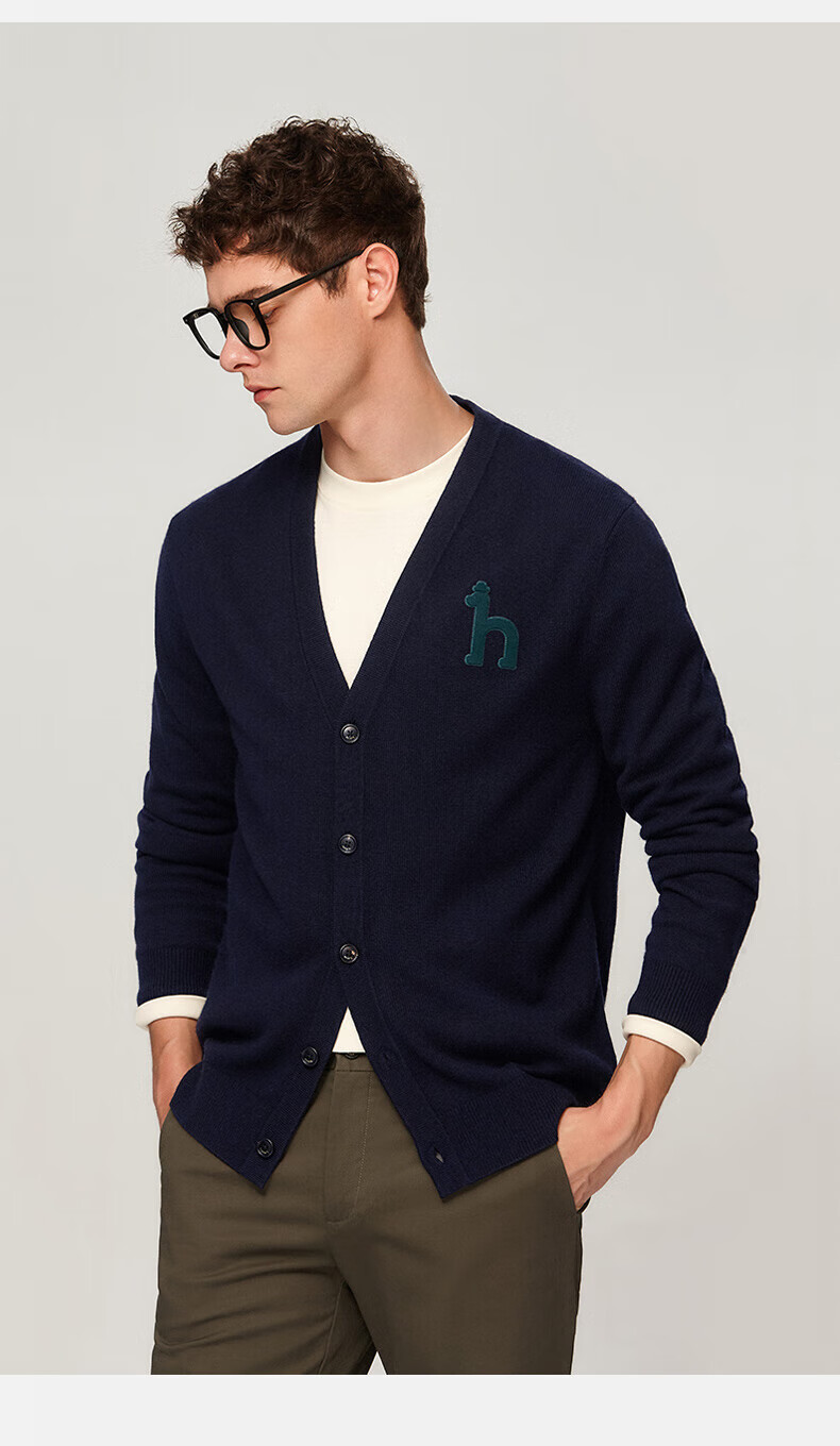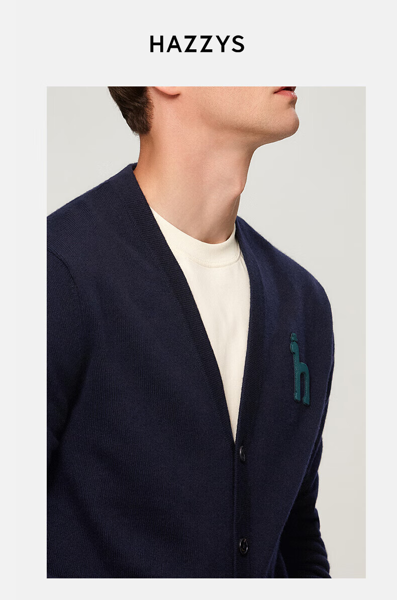HAZZYS men's solid color V-neck wool cardigan ABYZD0BDF51 dark navy DN 170/92A46