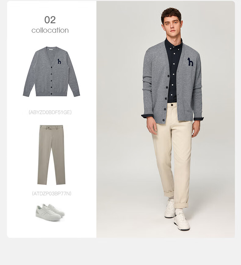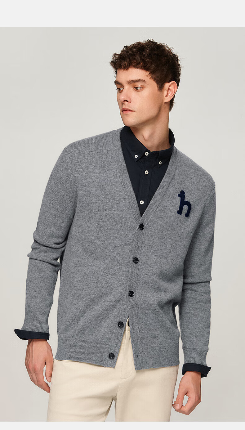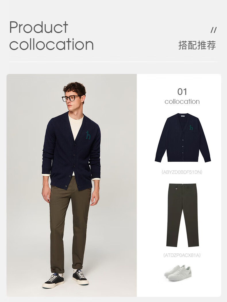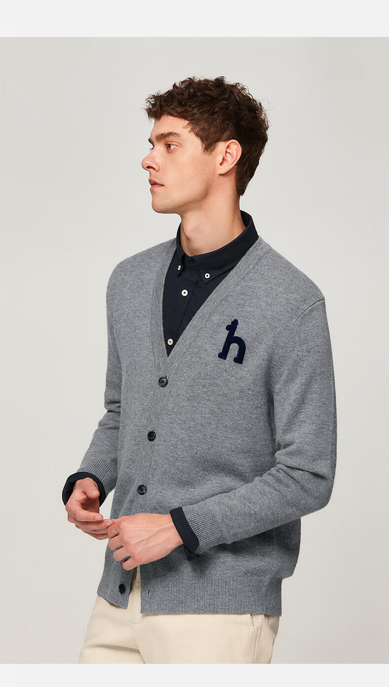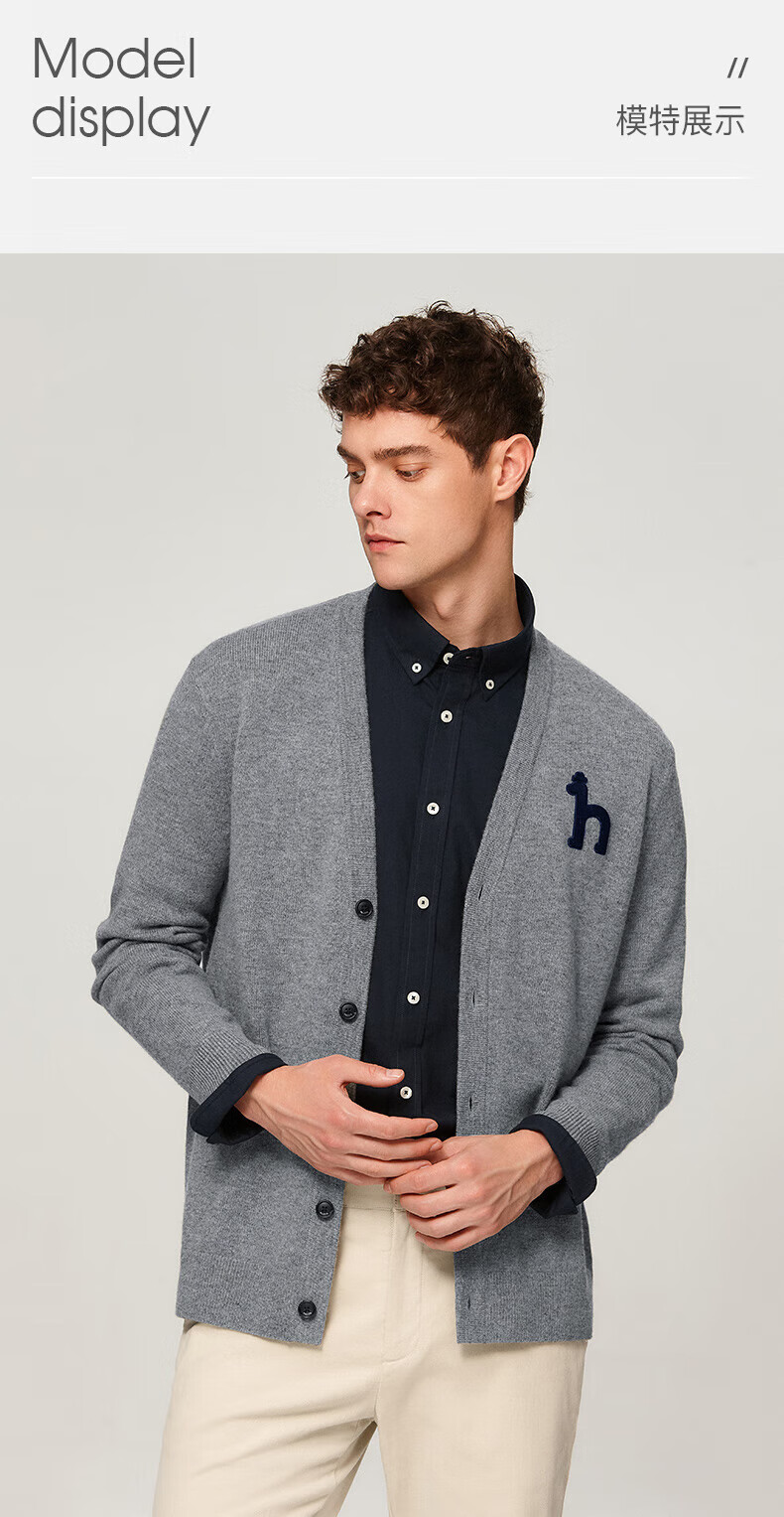 HAZZYS men's solid color V-neck wool cardigan ABYZD0BDF51 dark navy DN 170/92A46