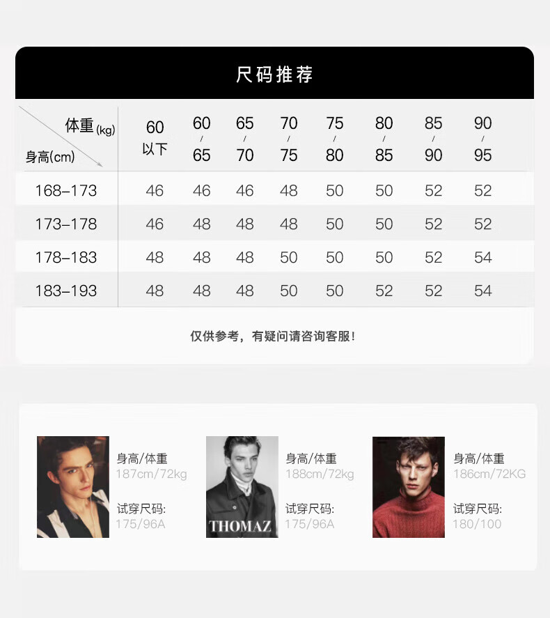 China (cm) 160-165/84-86 165-170 / 88-90 167-172 / 92-96 168-173 / 98-102 170-176 / 106-110