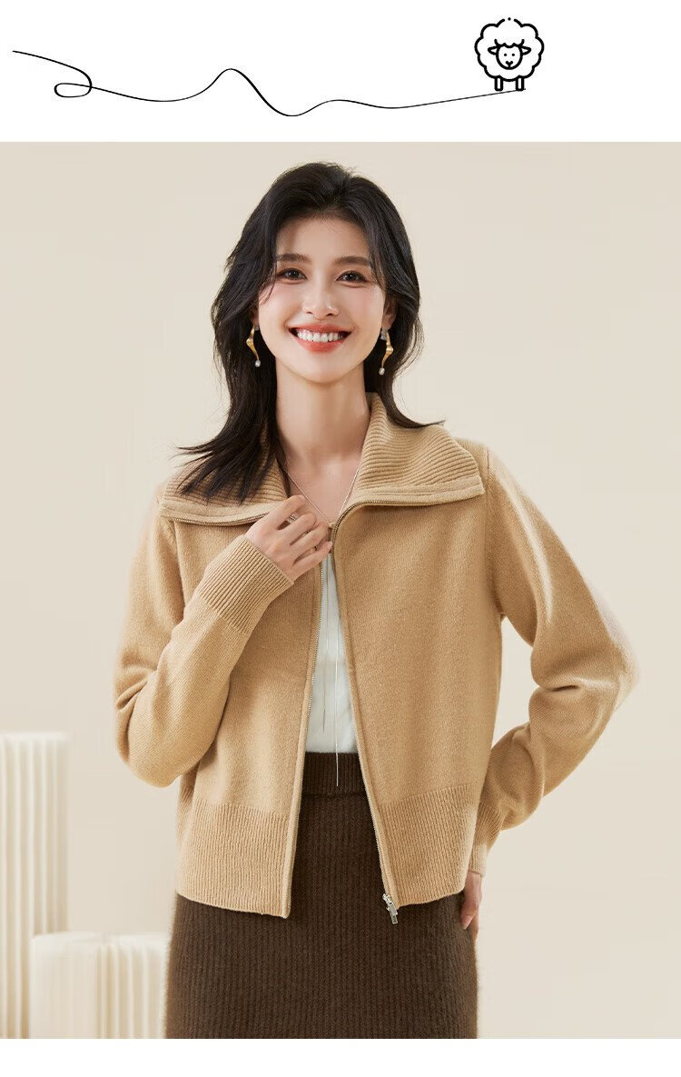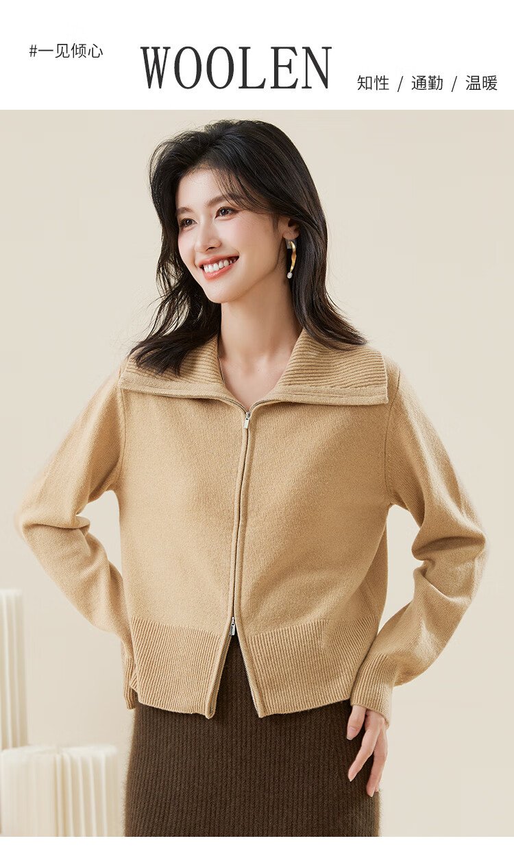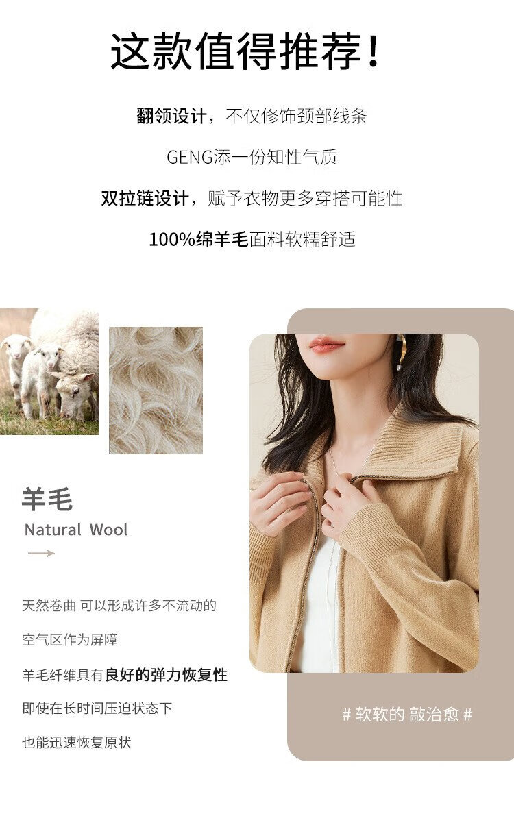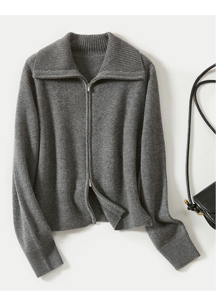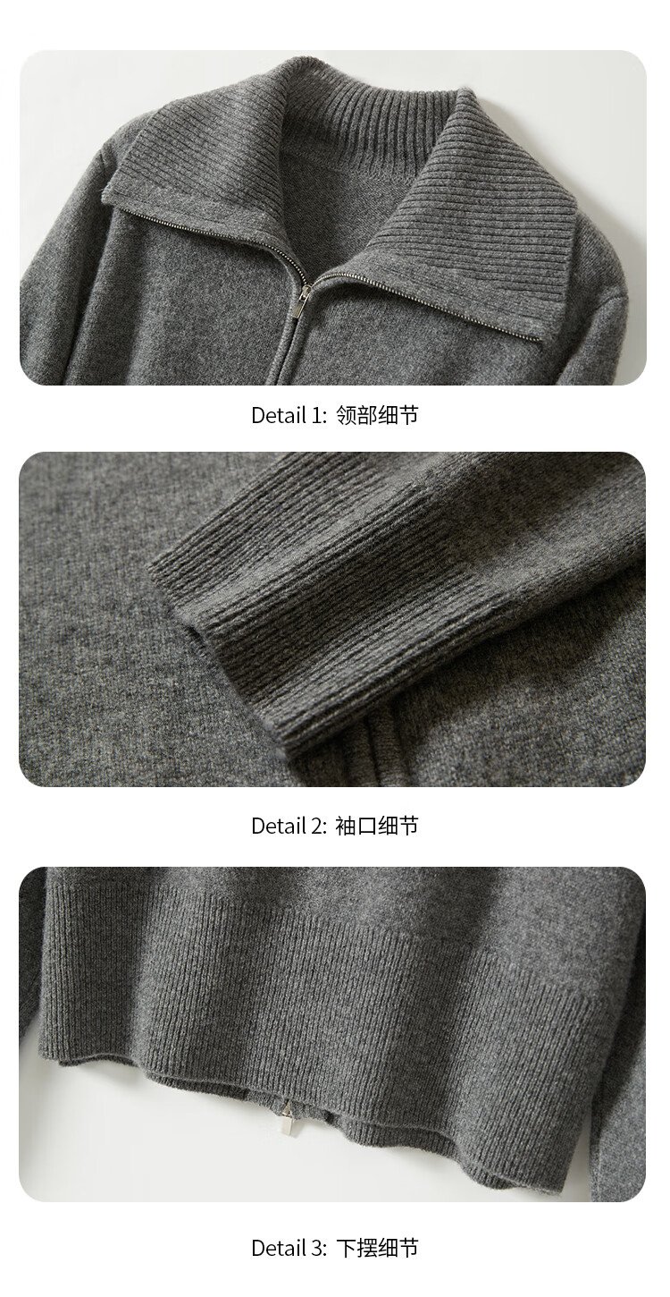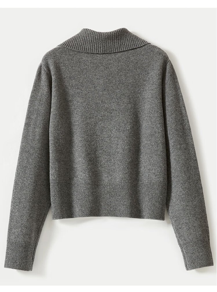 Jinju Thick 100% Sheep Wool Autumn and Winter New Lapel Cardigan Sweater Jacket Women's Cardigan Gray L
