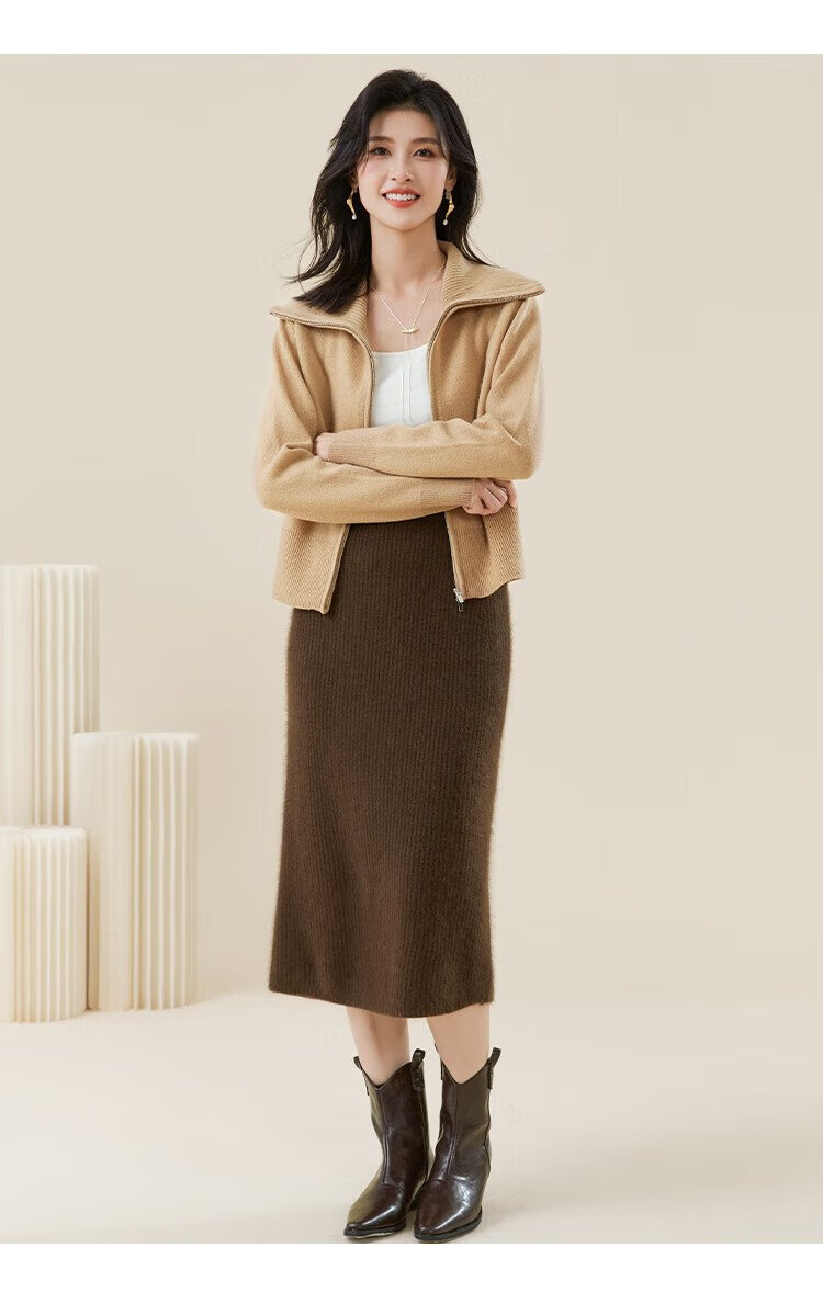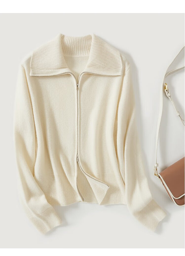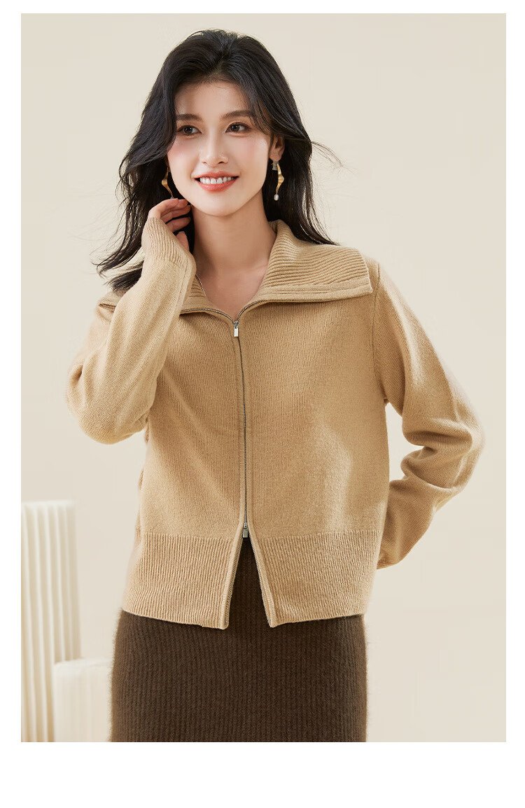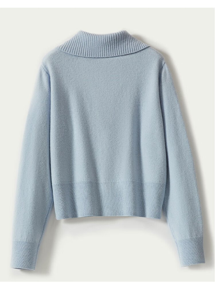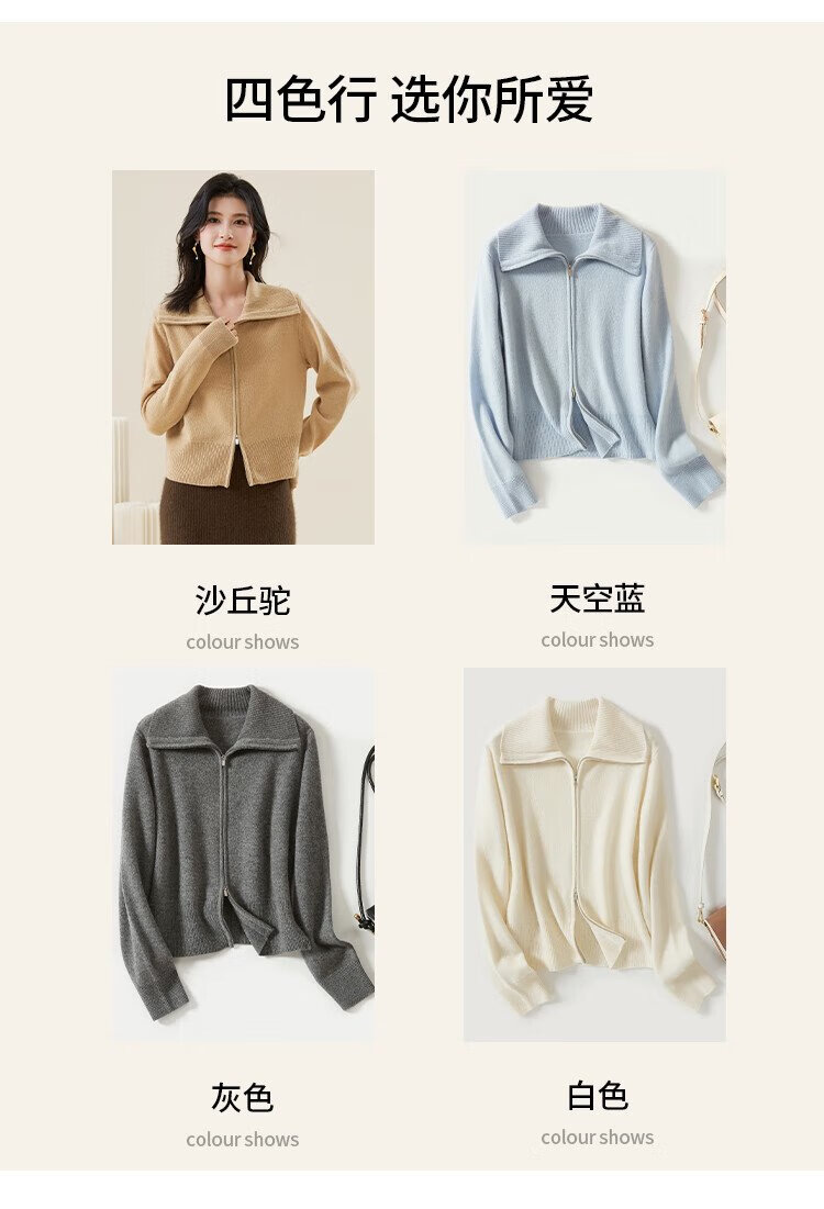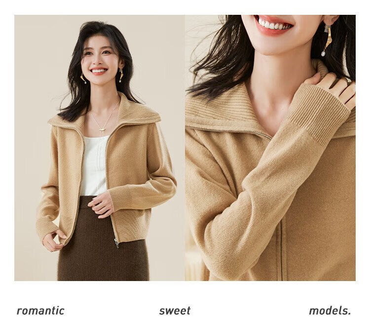 Jinju Thick 100% Sheep Wool Autumn and Winter New Lapel Cardigan Sweater Jacket Women's Cardigan Gray L