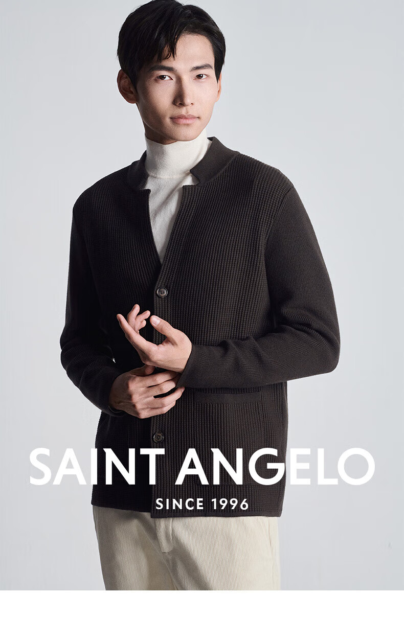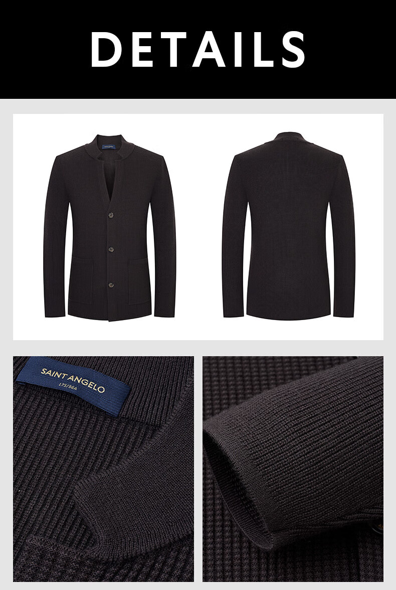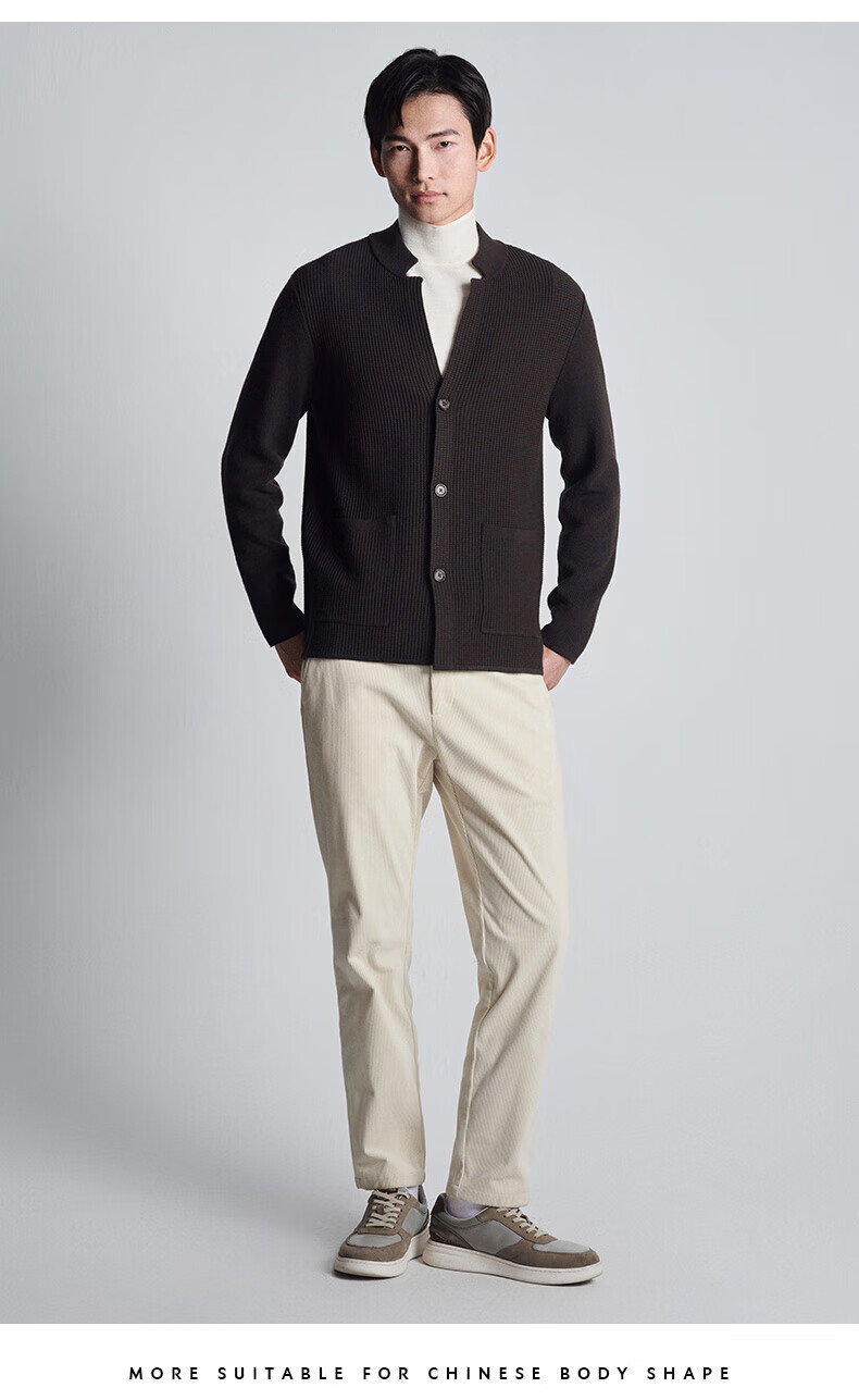 Angel Bird Cardigan Men's Stand Collar Cardigan Casual Long Sleeve Jacket Sweater EBY233041U Oak XL (50)