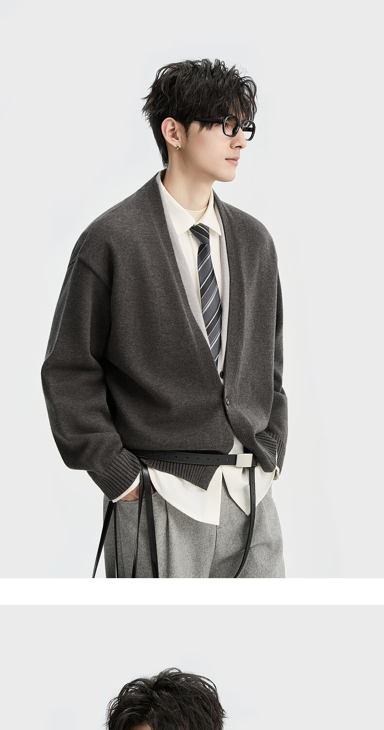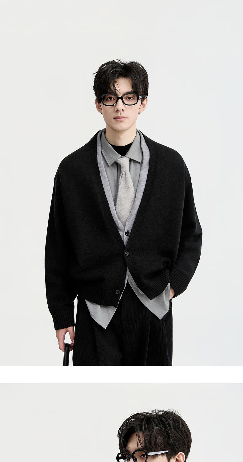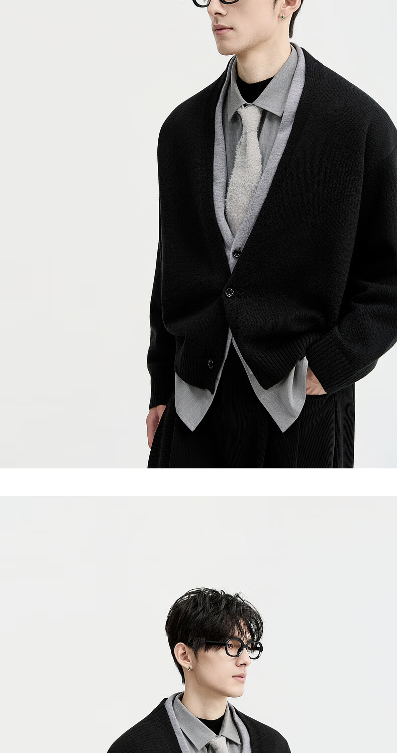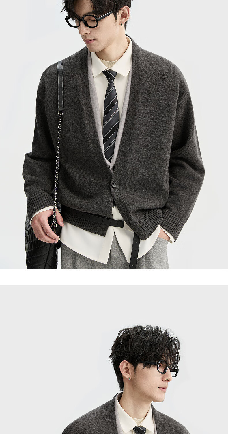 Piaget Zall Lyocell Tencel Wool 25 Autumn and Winter Deep V-neck Fake Two-piece Knitted Cardigan Men's Casual Sweater
