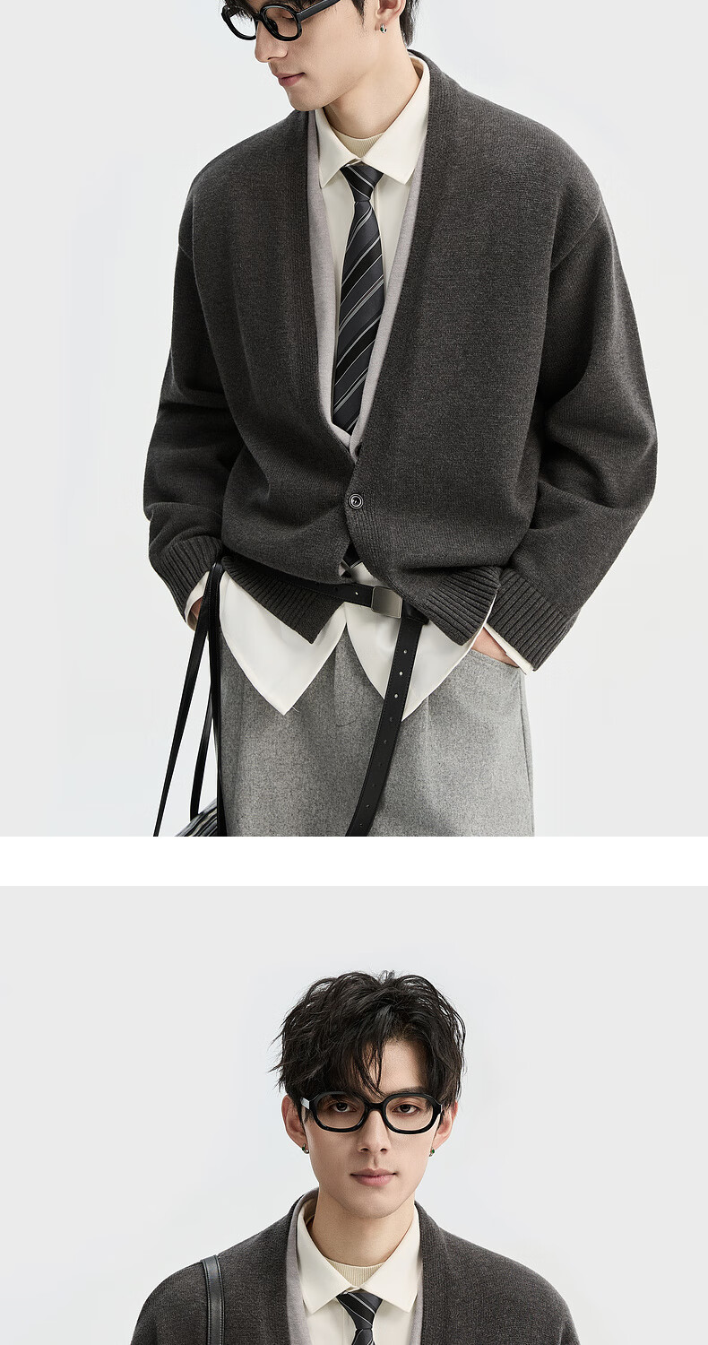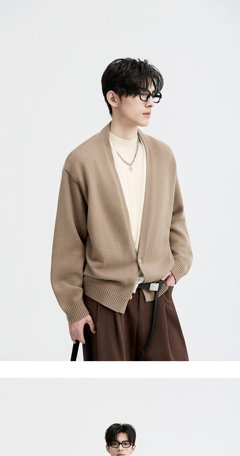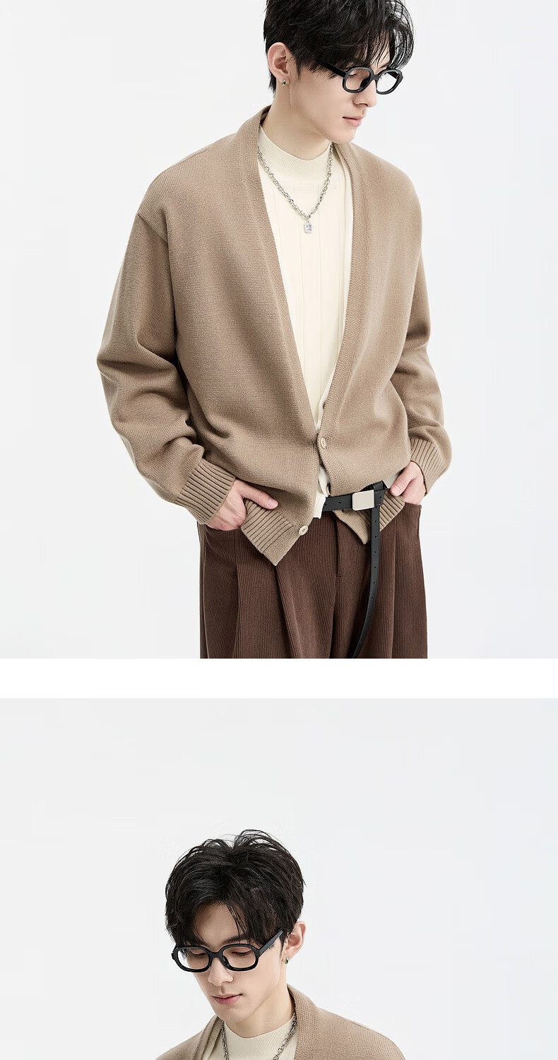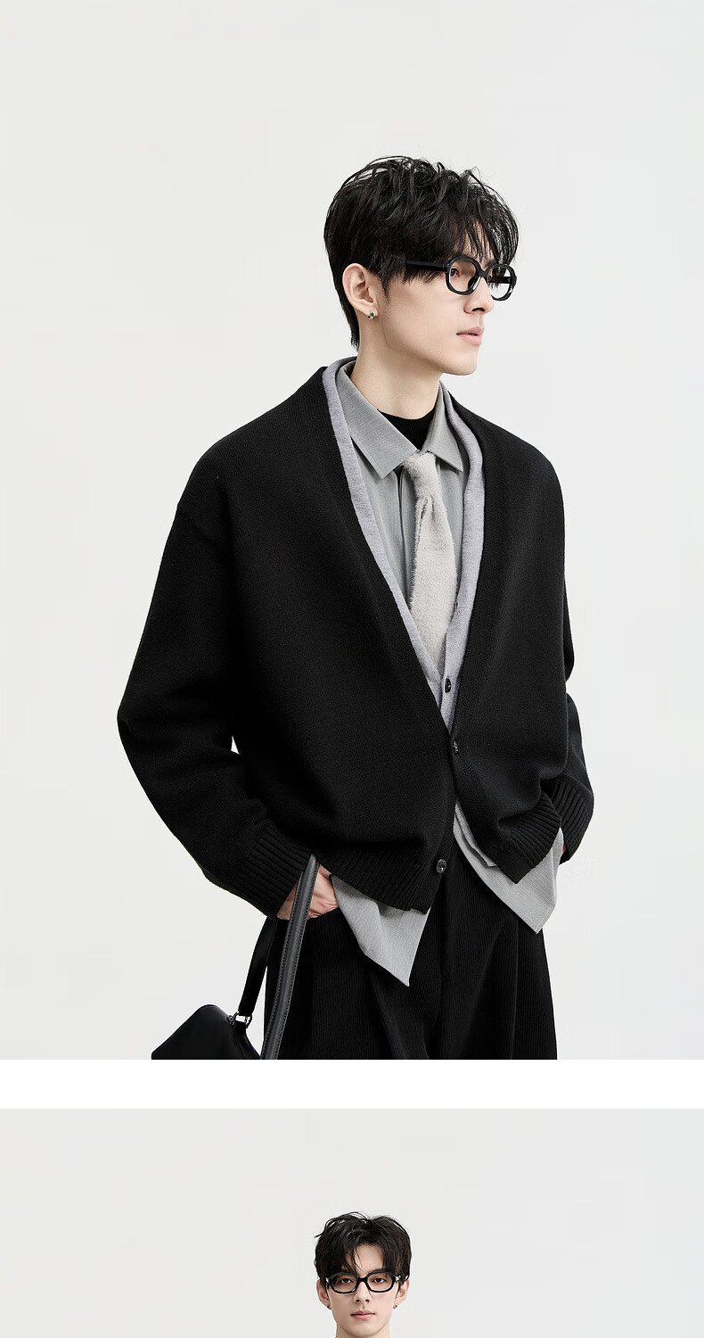 Piaget Zall Lyocell Tencel Wool 25 Autumn and Winter Deep V-neck Fake Two-piece Knitted Cardigan Men's Casual Sweater