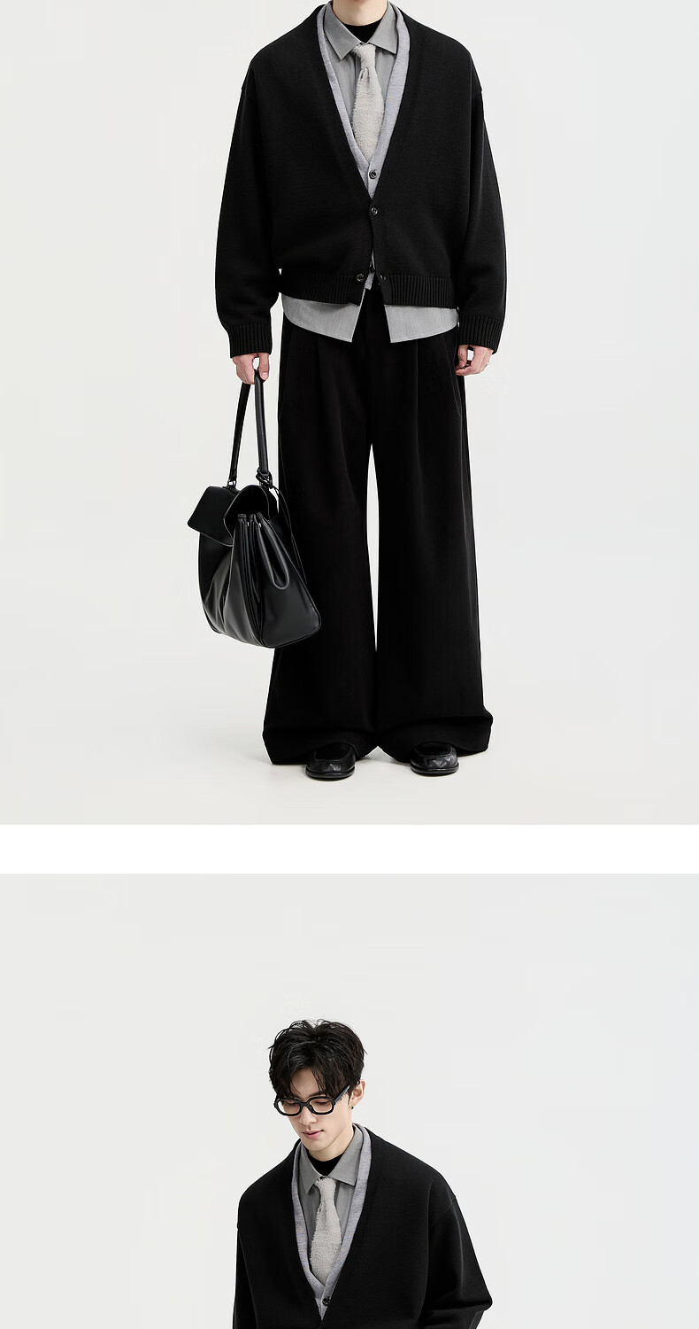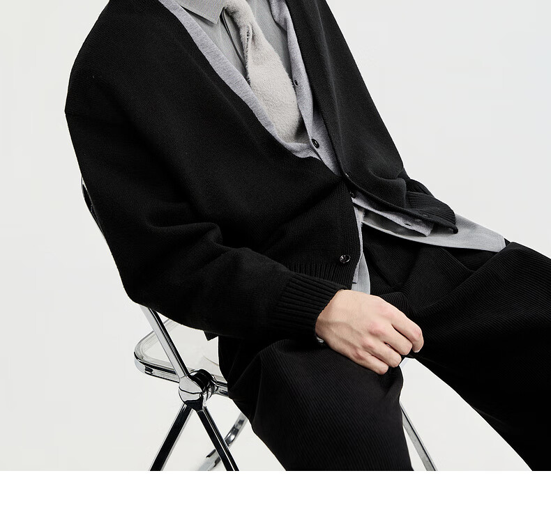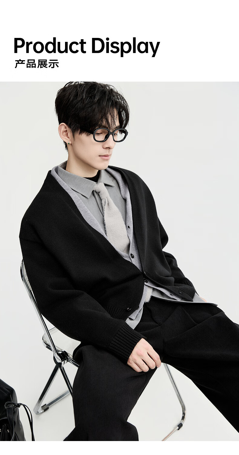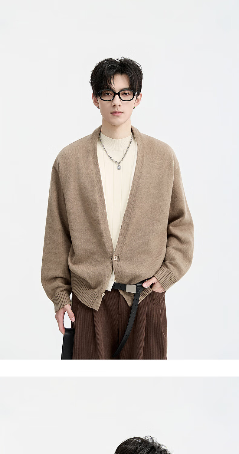 Piaget Zall Lyocell Tencel Wool 25 Autumn and Winter Deep V-neck Fake Two-piece Knitted Cardigan Men's Casual Sweater