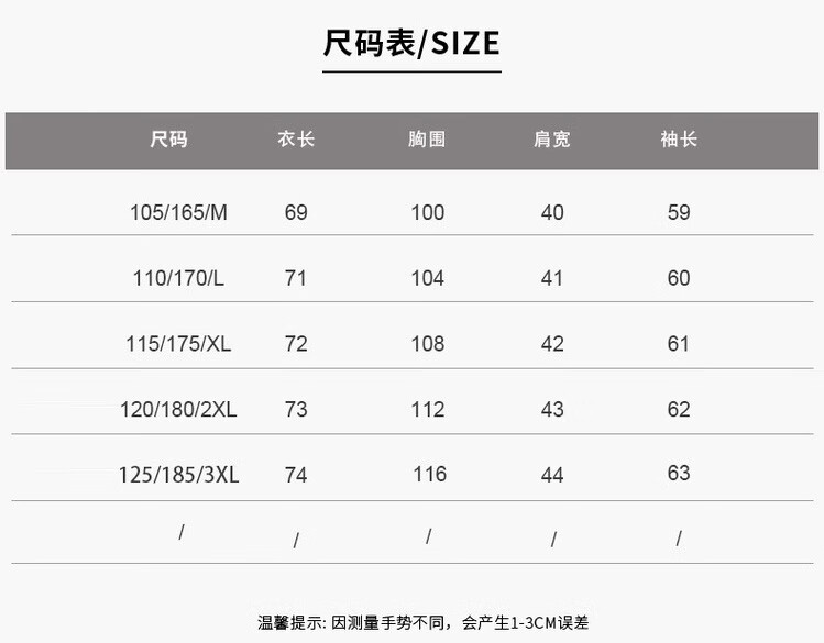 China (cm) 165 / 88-90 170 / 96-98 175 / 108-110 180 / 118-122 185 / 126-130