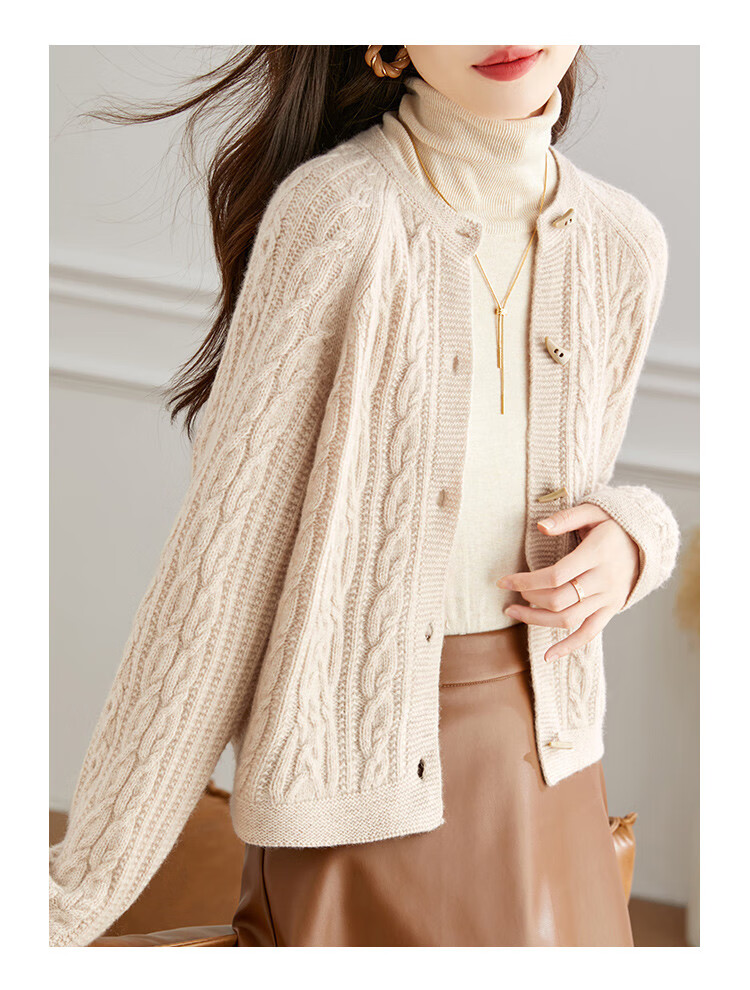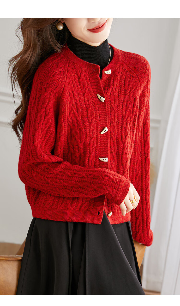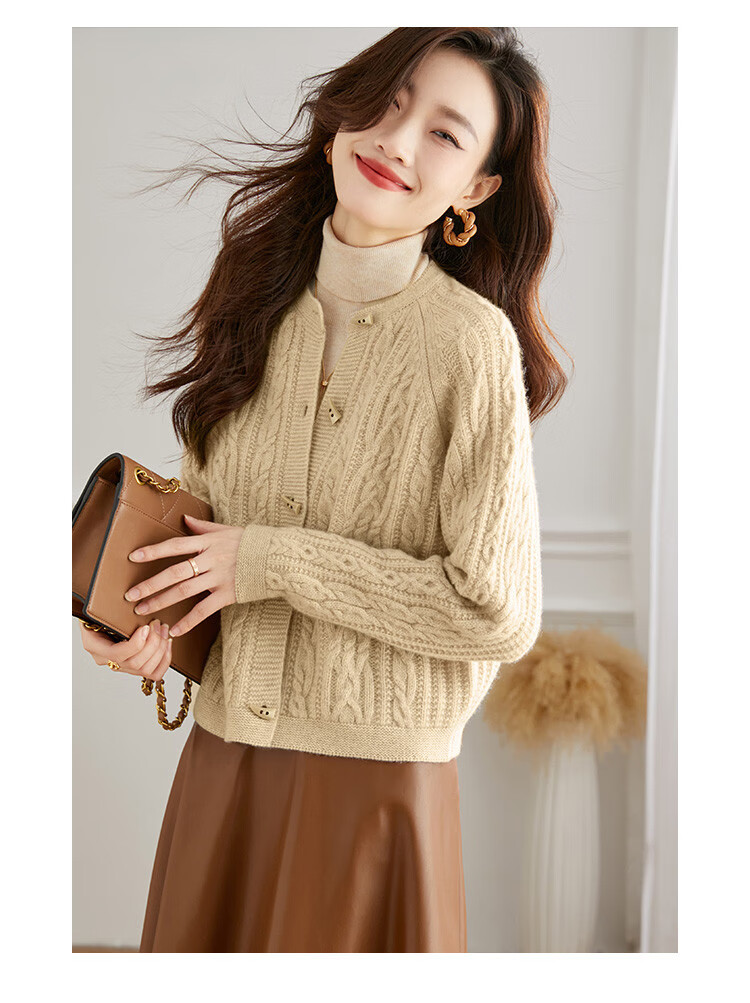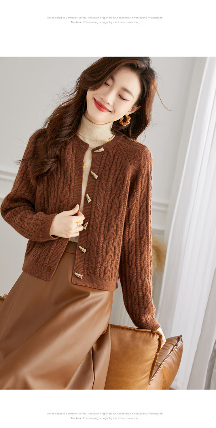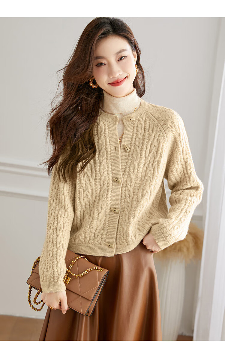 Shexi (Srcr) pure wool coat for women 100% wool knitted outer thick autumn and winter short soft waxy cable sweater cardigan