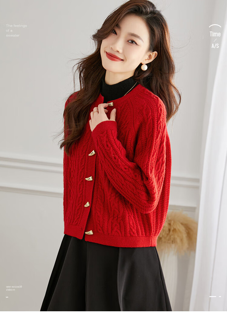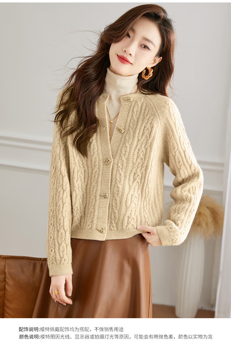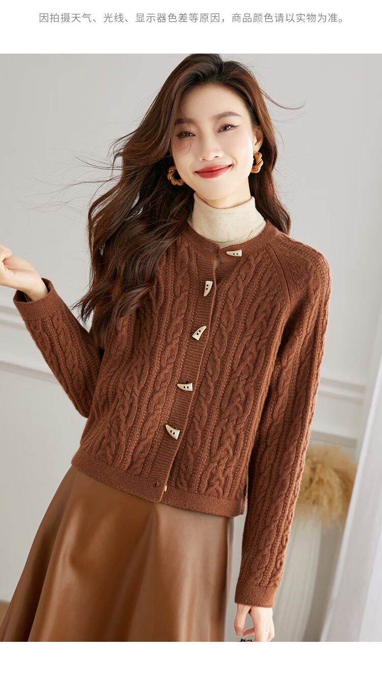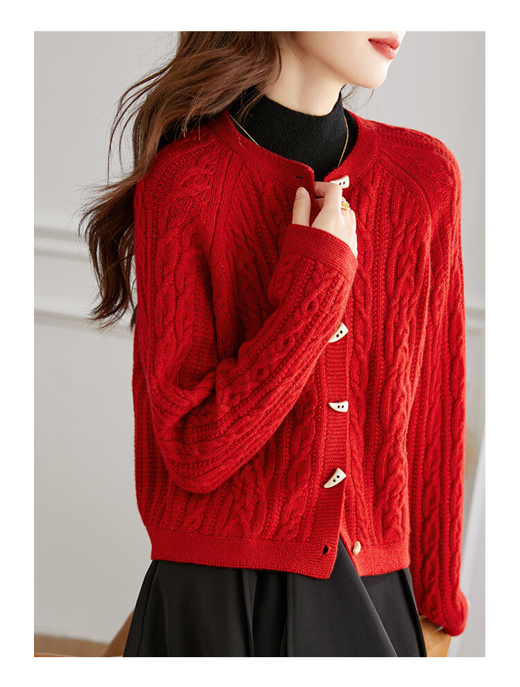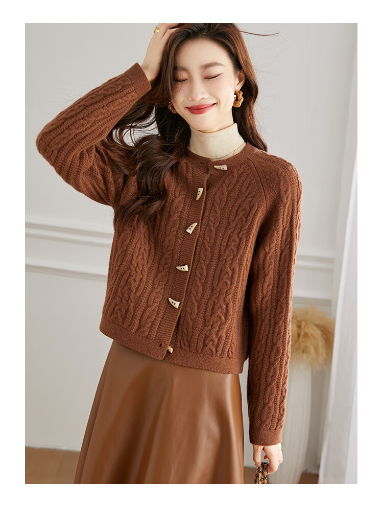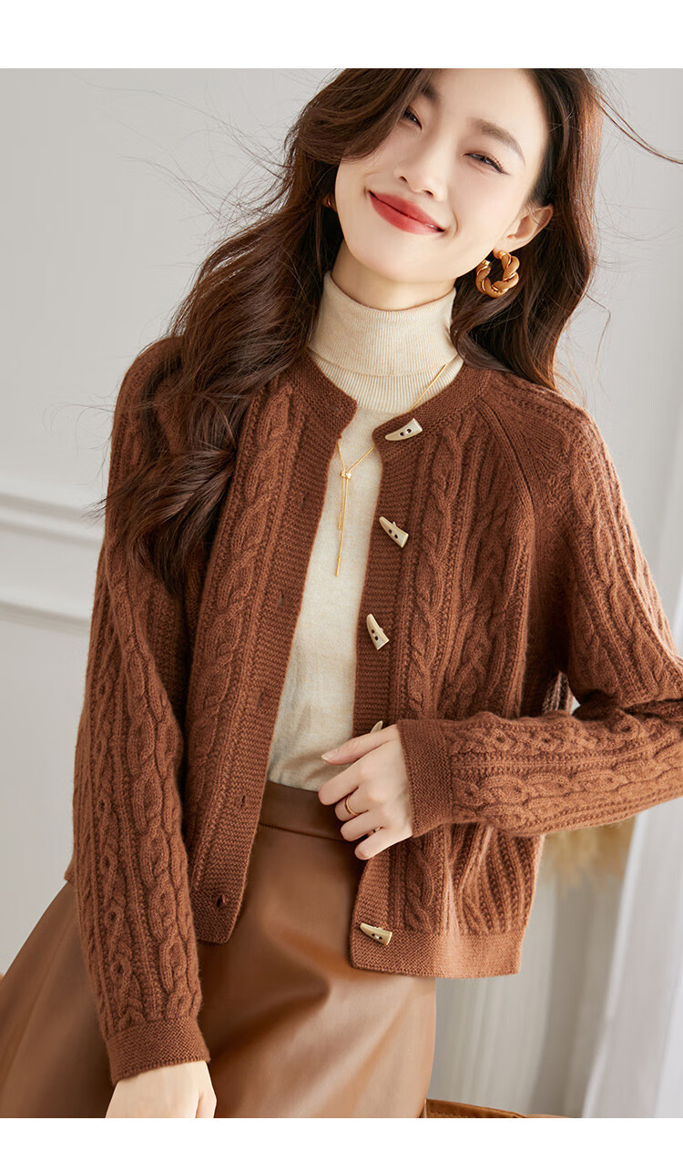 Shexi (Srcr) pure wool coat for women 100% wool knitted outer thick autumn and winter short soft waxy cable sweater cardigan