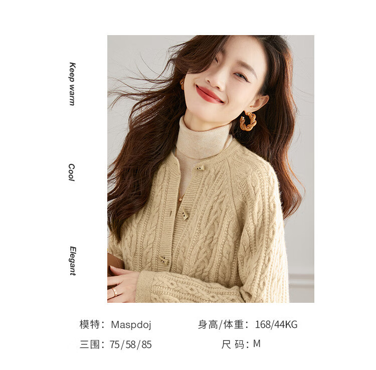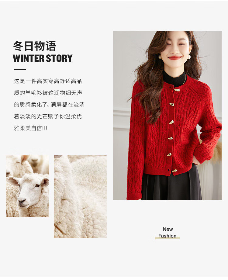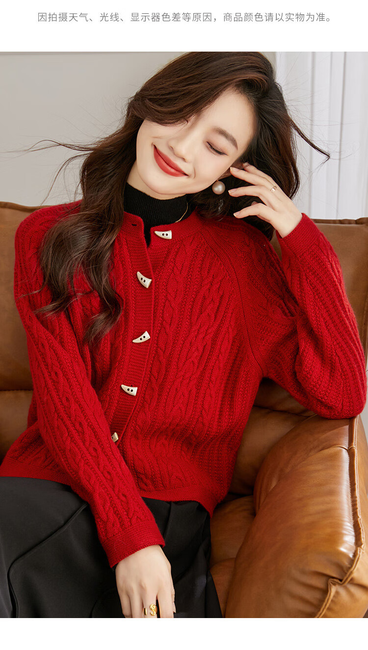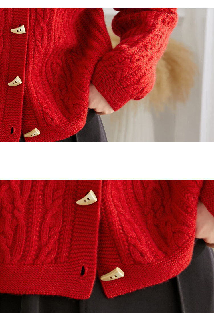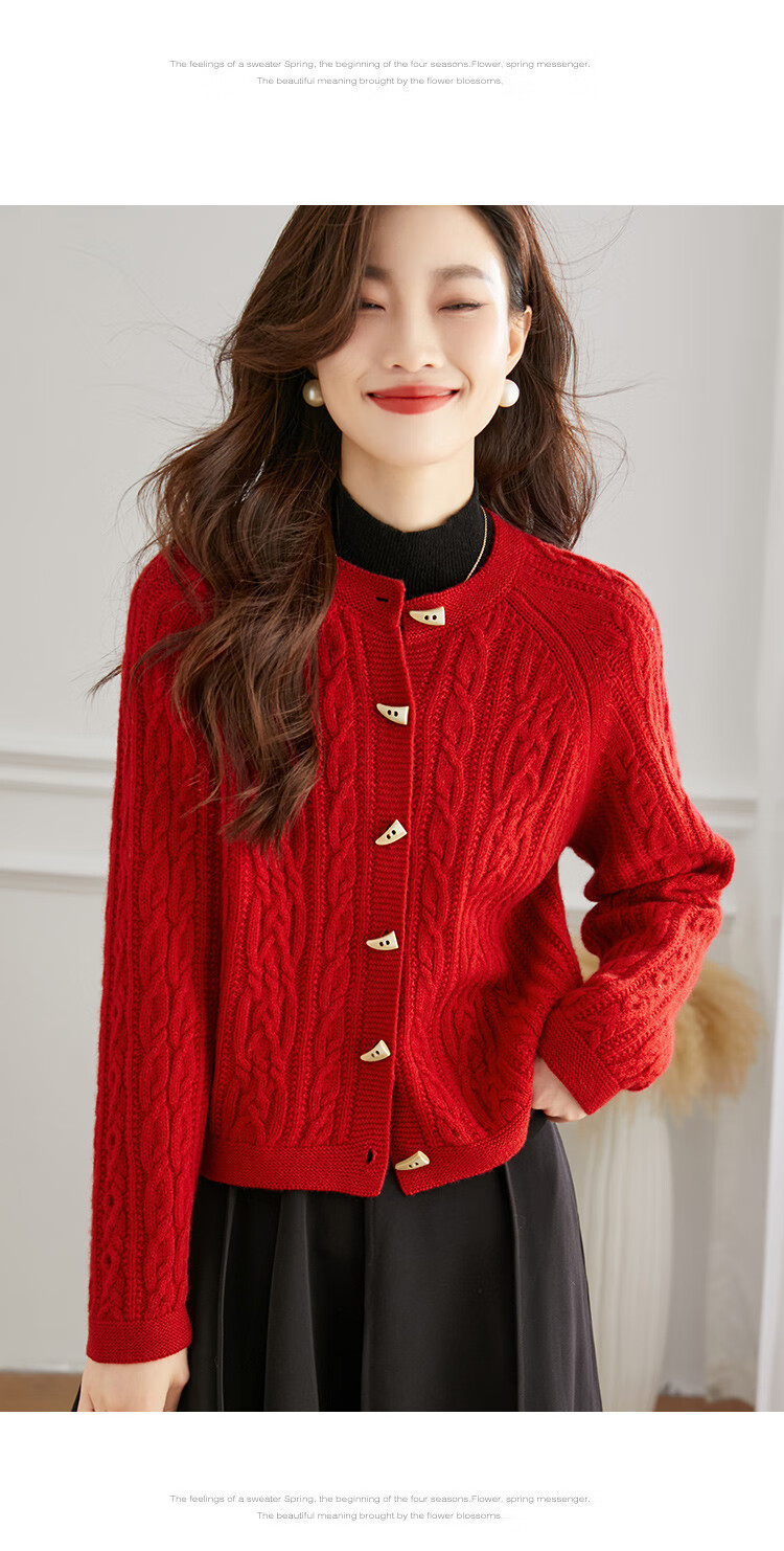 Shexi (Srcr) pure wool coat for women 100% wool knitted outer thick autumn and winter short soft waxy cable sweater cardigan