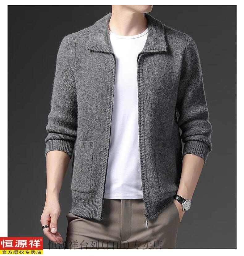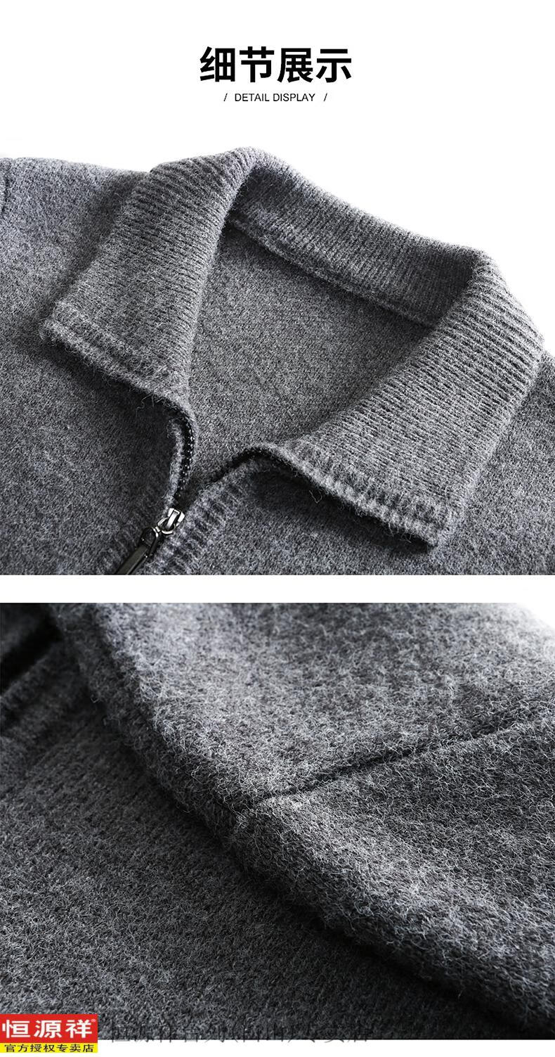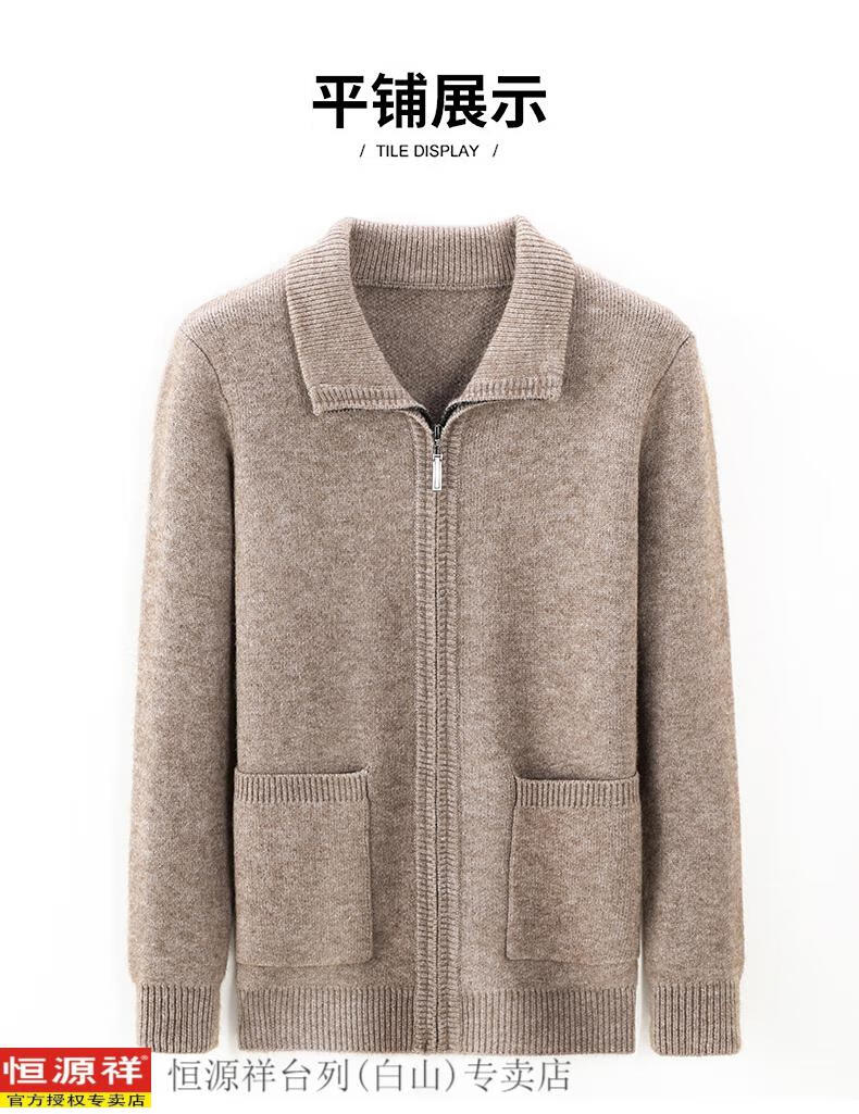 Hengyuanxiang 100 pure wool cardigan for young and middle-aged men's wool sweater lapel thickened zipper coat autumn and winter loose sweater camel 165