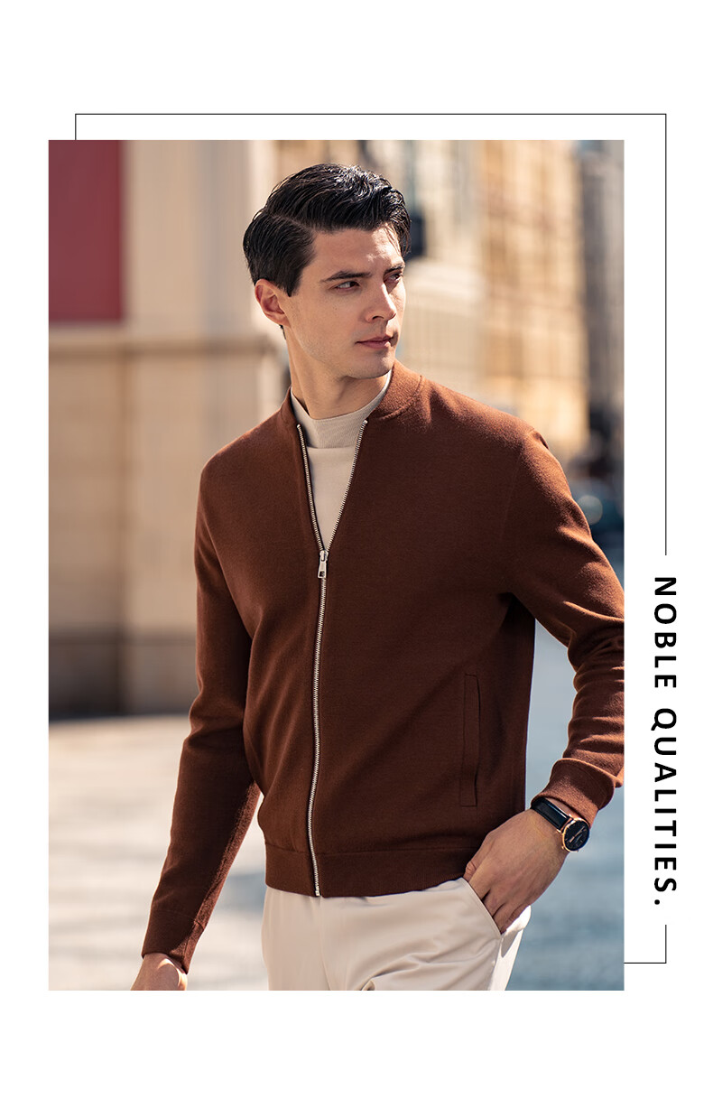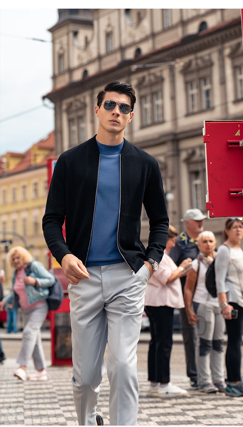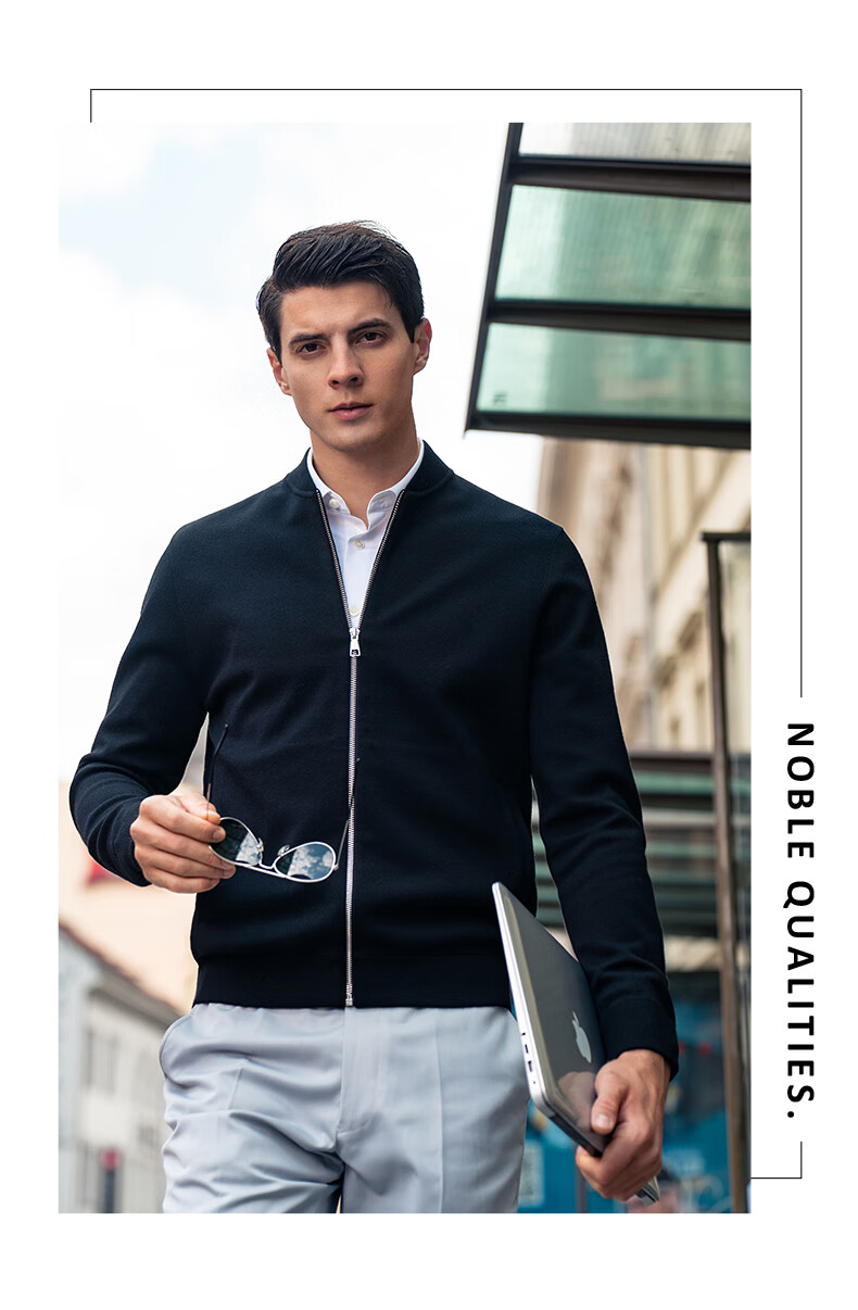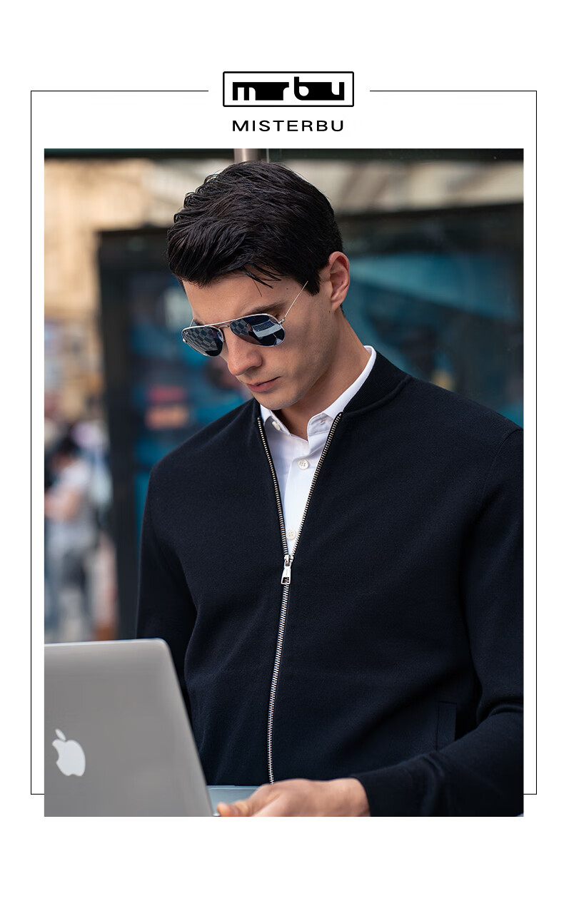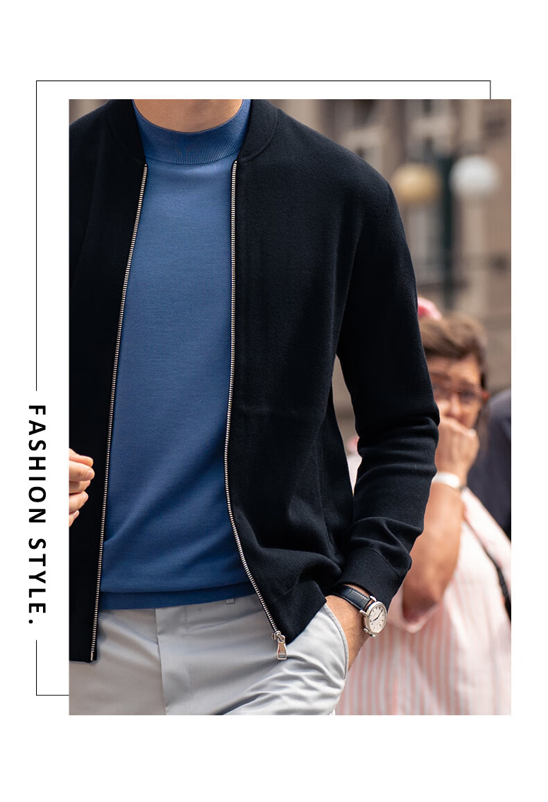 Mr. Bu spring and autumn new style wool cardigan jacket long-sleeved solid color clothes middle-aged men's clothing BT12016 deep sea blue L (175)