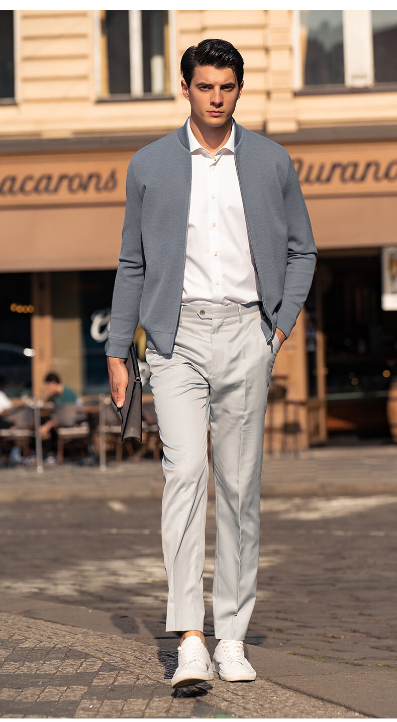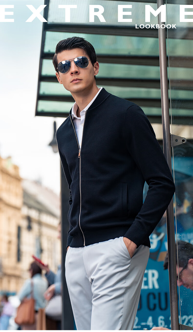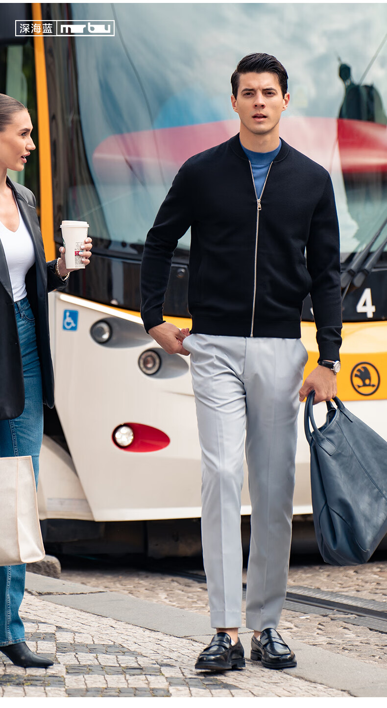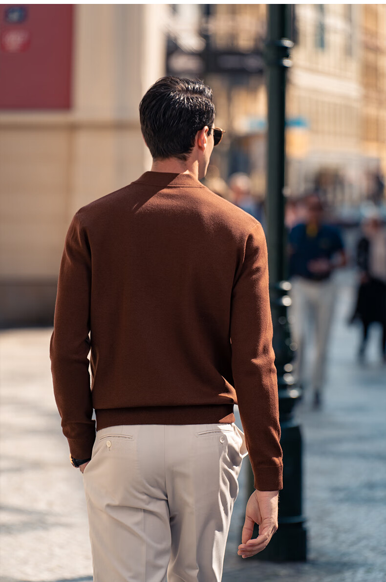 Mr. Bu spring and autumn new style wool cardigan jacket long-sleeved solid color clothes middle-aged men's clothing BT12016 deep sea blue L (175)