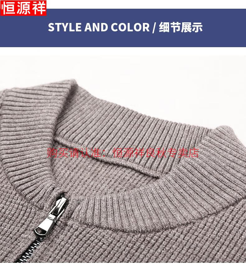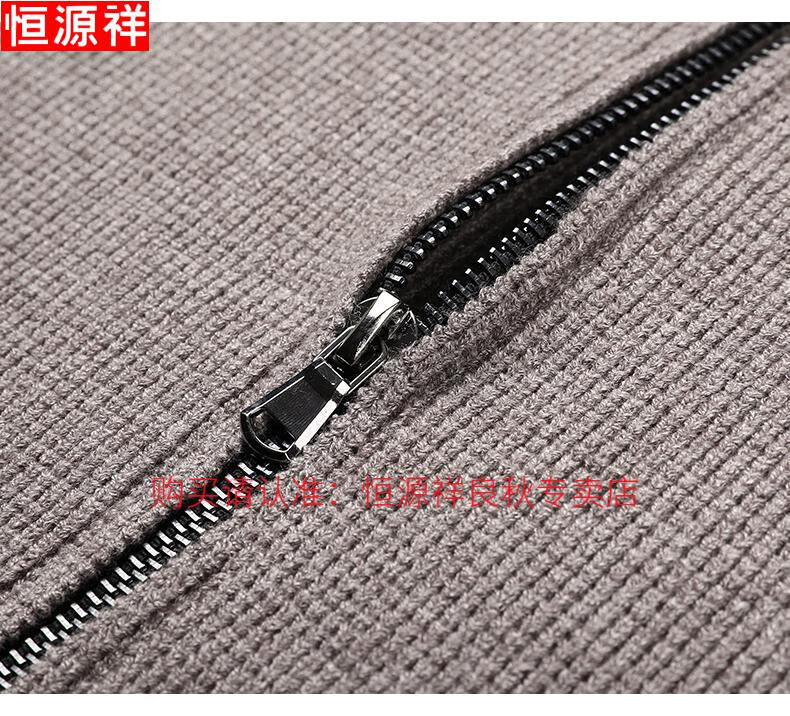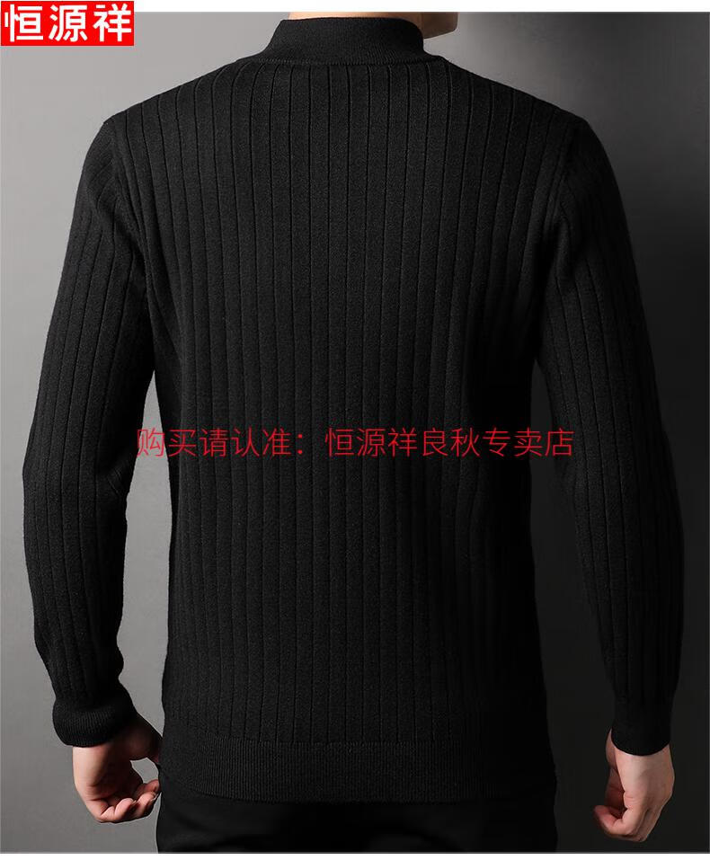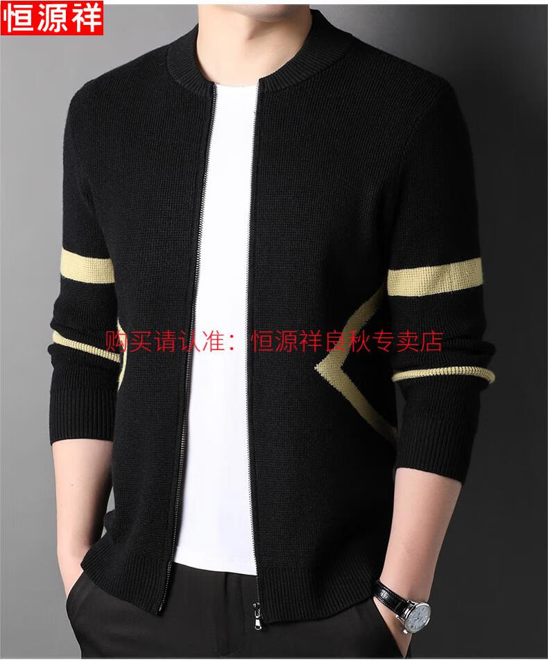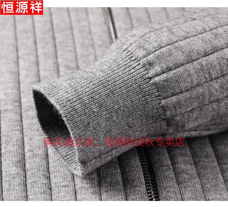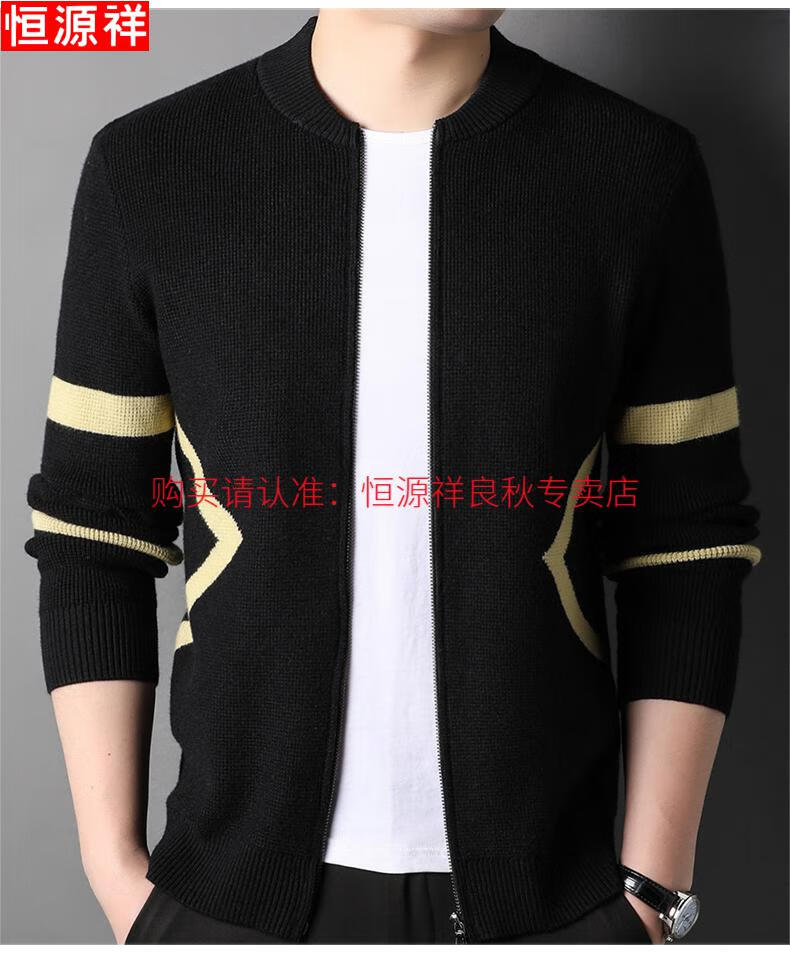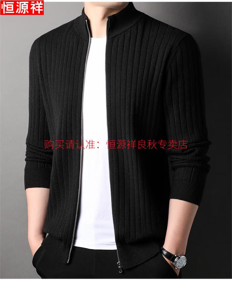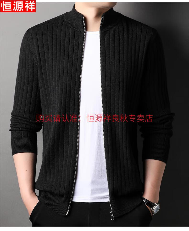Hengyuanxiang cardigan sweater men's jacket spring and autumn middle-aged men's thickened stand-up collar zipper knitted woolen sweater top K2007 black 175/XL recommended 140-160Jin Jin equals 0.5 kg